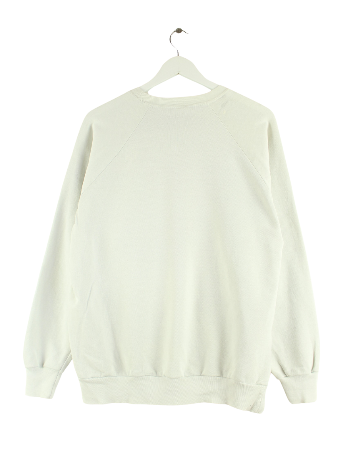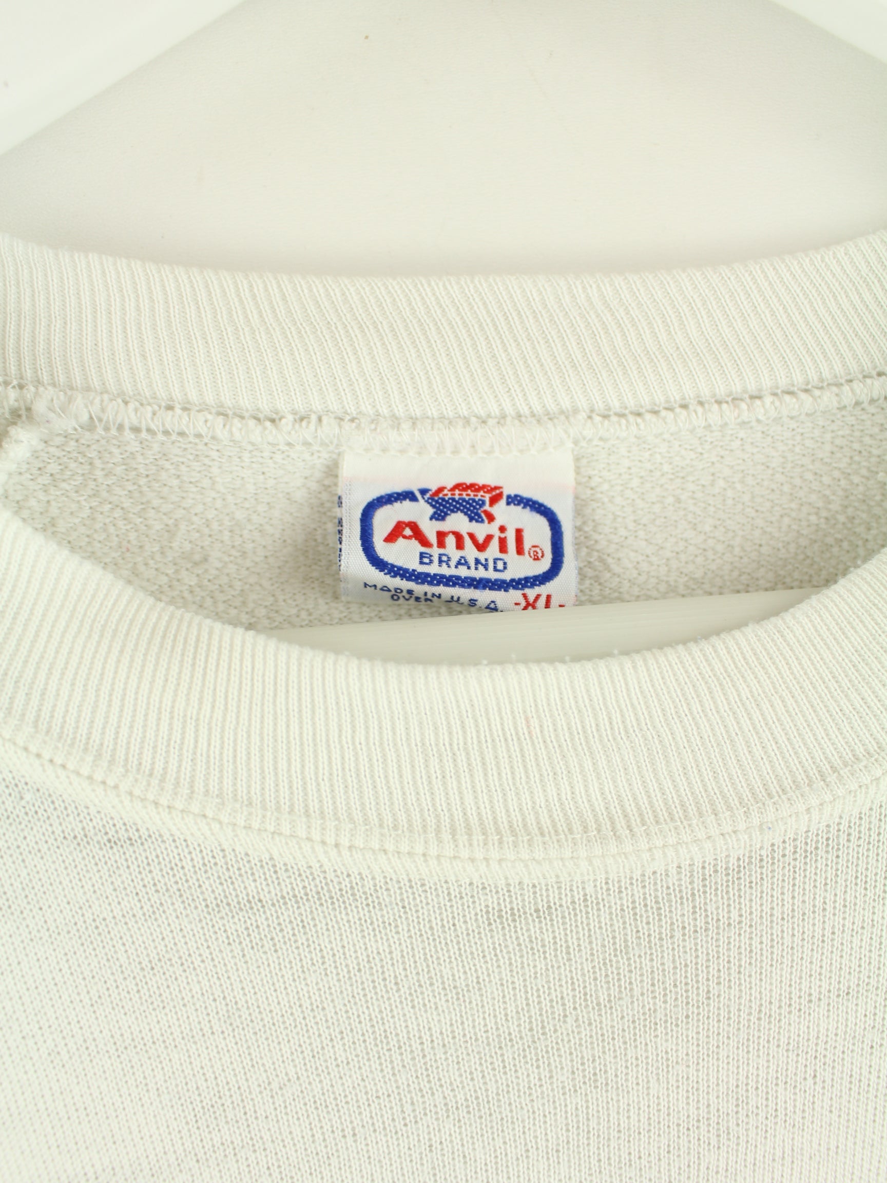 Weißer Sweater der Marke Anvil aus den 80'ern in Größe XL. Er ist aus einer Baumwollmischung angefertigt und in gutem Zustand bei uns zu bekommen. Mit schickem State Print.