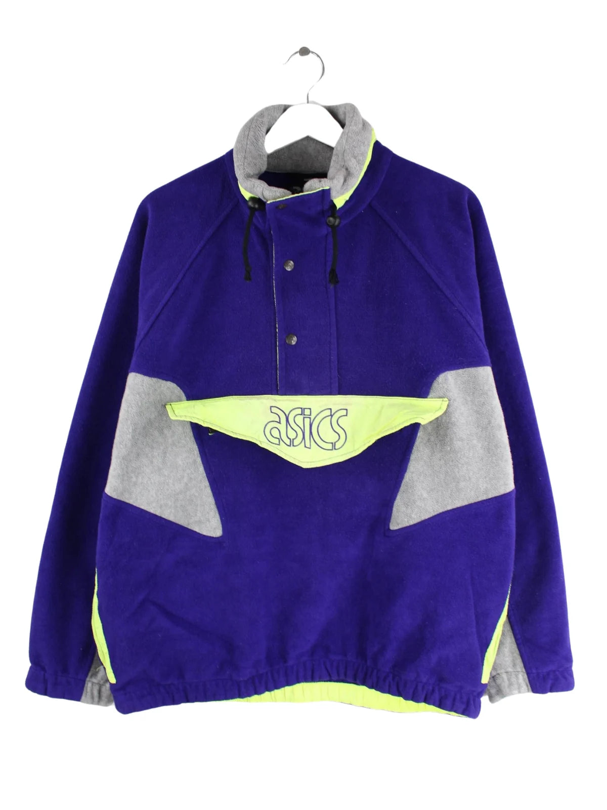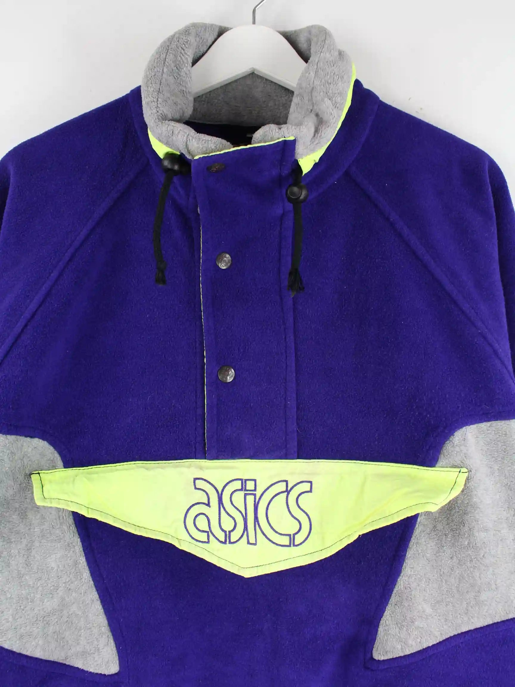 Lilafarbene Leichte Jacke mit Stick und halbem Reißverschluß der Marke Asics aus den 80'ern in Größe L. Sie ist aus kuscheligem Fleece gefertigt und in sehr gutem Zustand bei uns vorrätig.