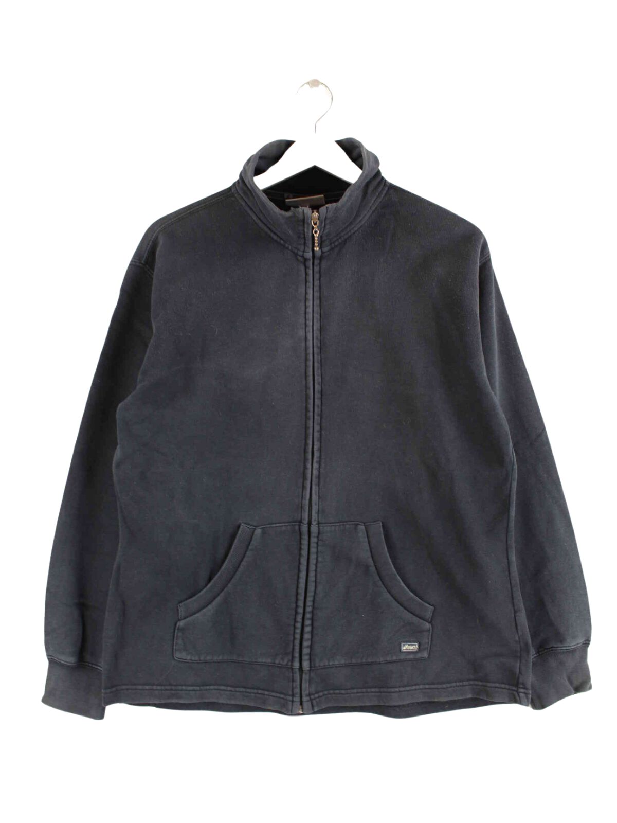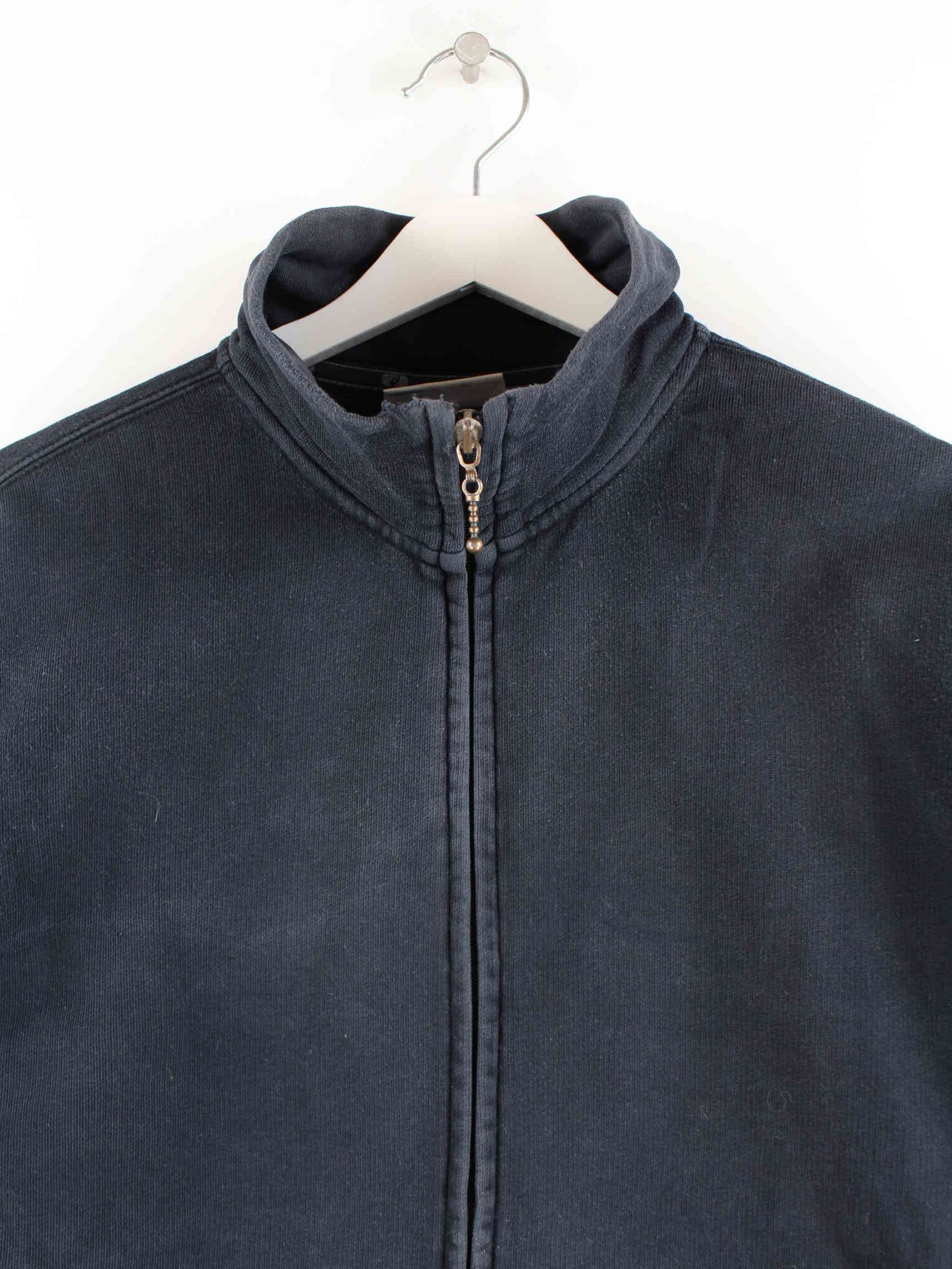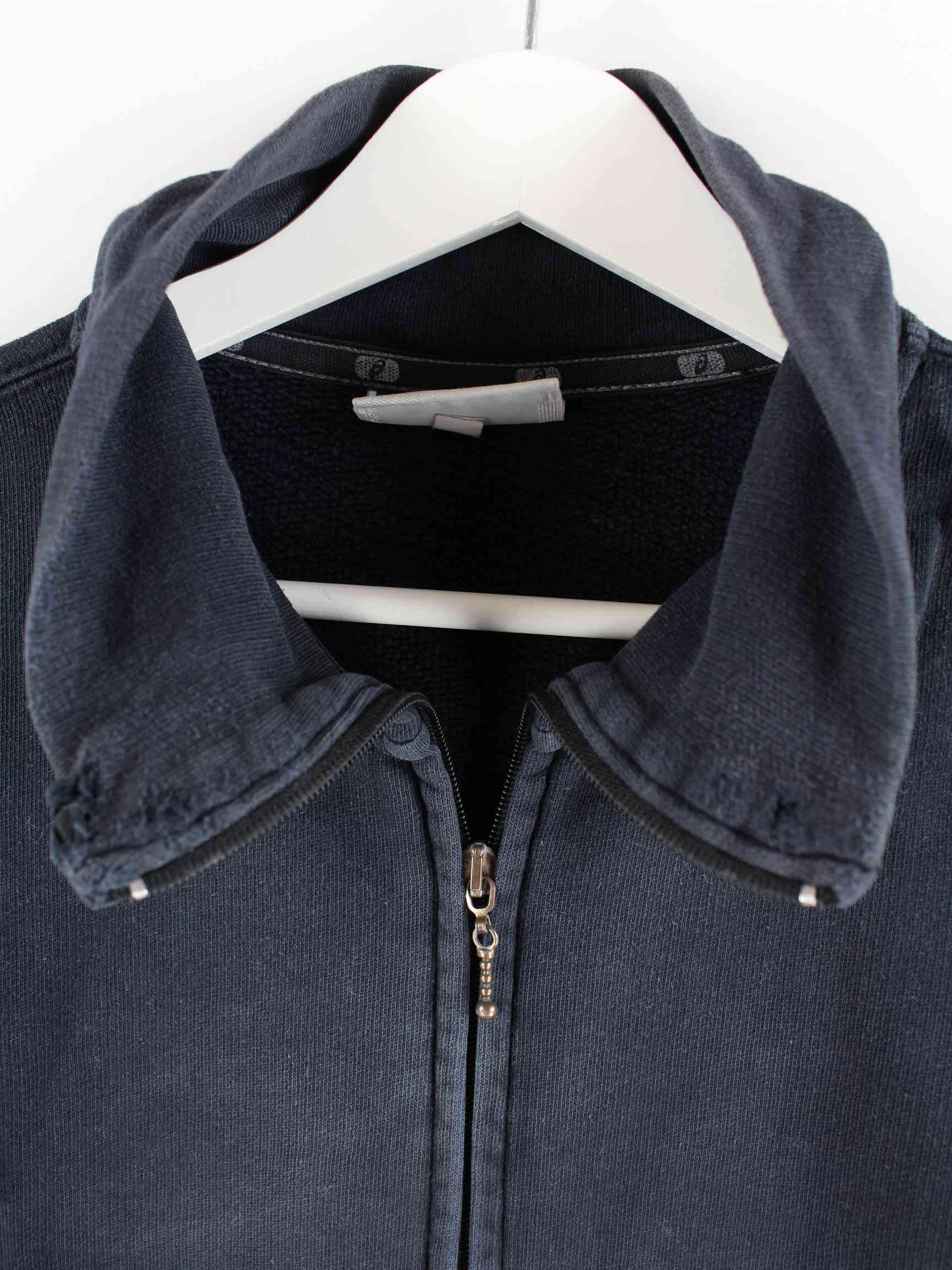 Blaue Sweatjacke des Labels Asics aus den 90'ern in Größe M. Sie ist aus einer Baumwollmischung produziert und in gutem Zustand zu haben.