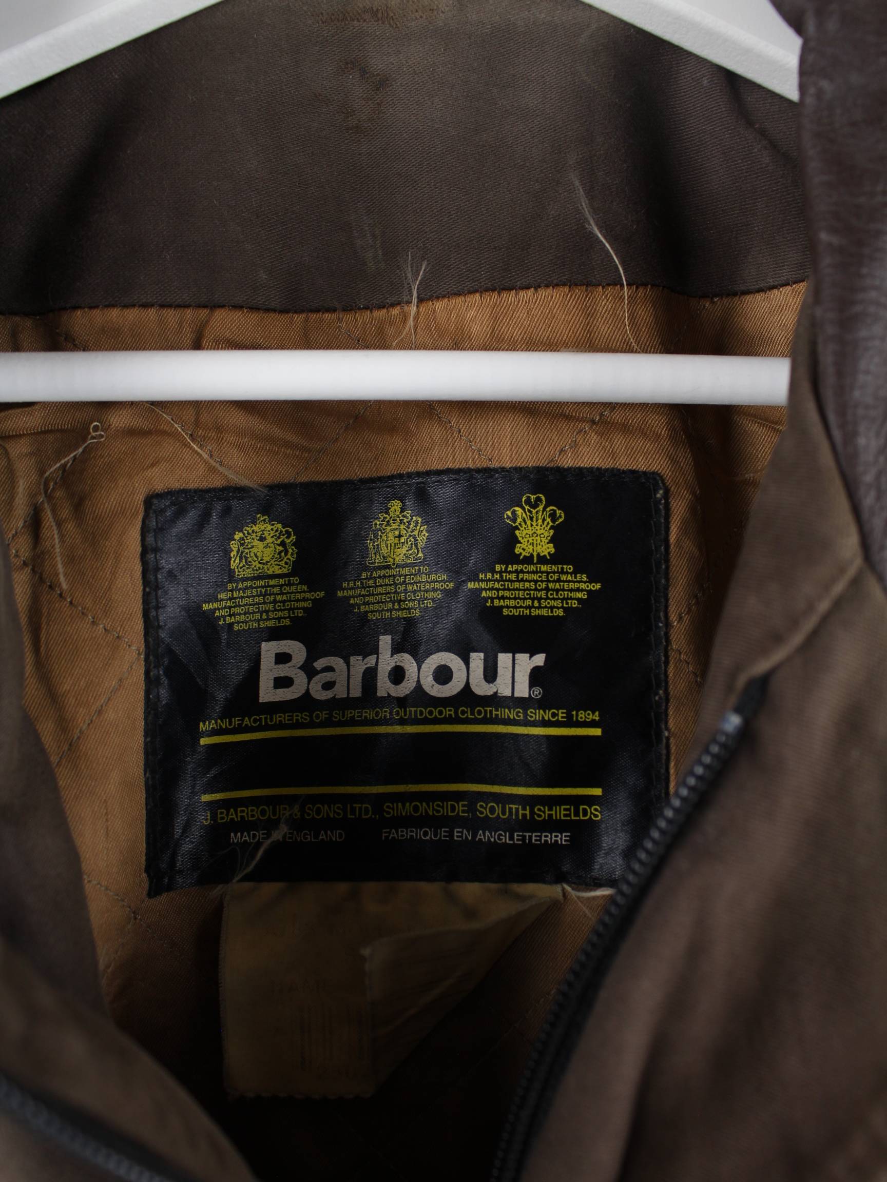 Braune Leichte Jacke von Barbour aus den 90'ern in Größe L. Sie ist aus einer Baumwollmischung und in gutem Zustand im Bestand.
