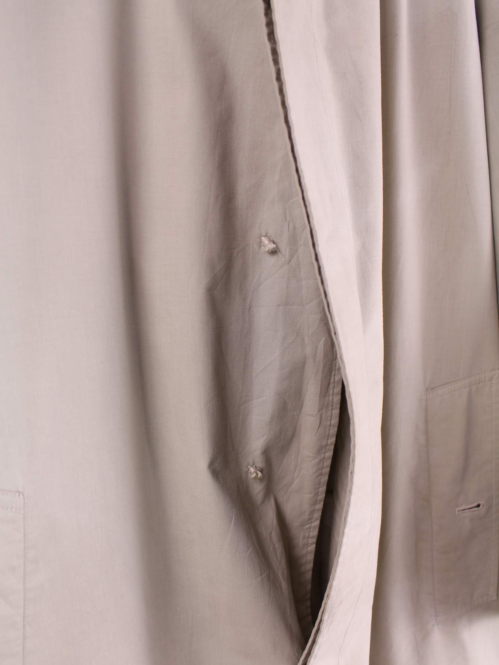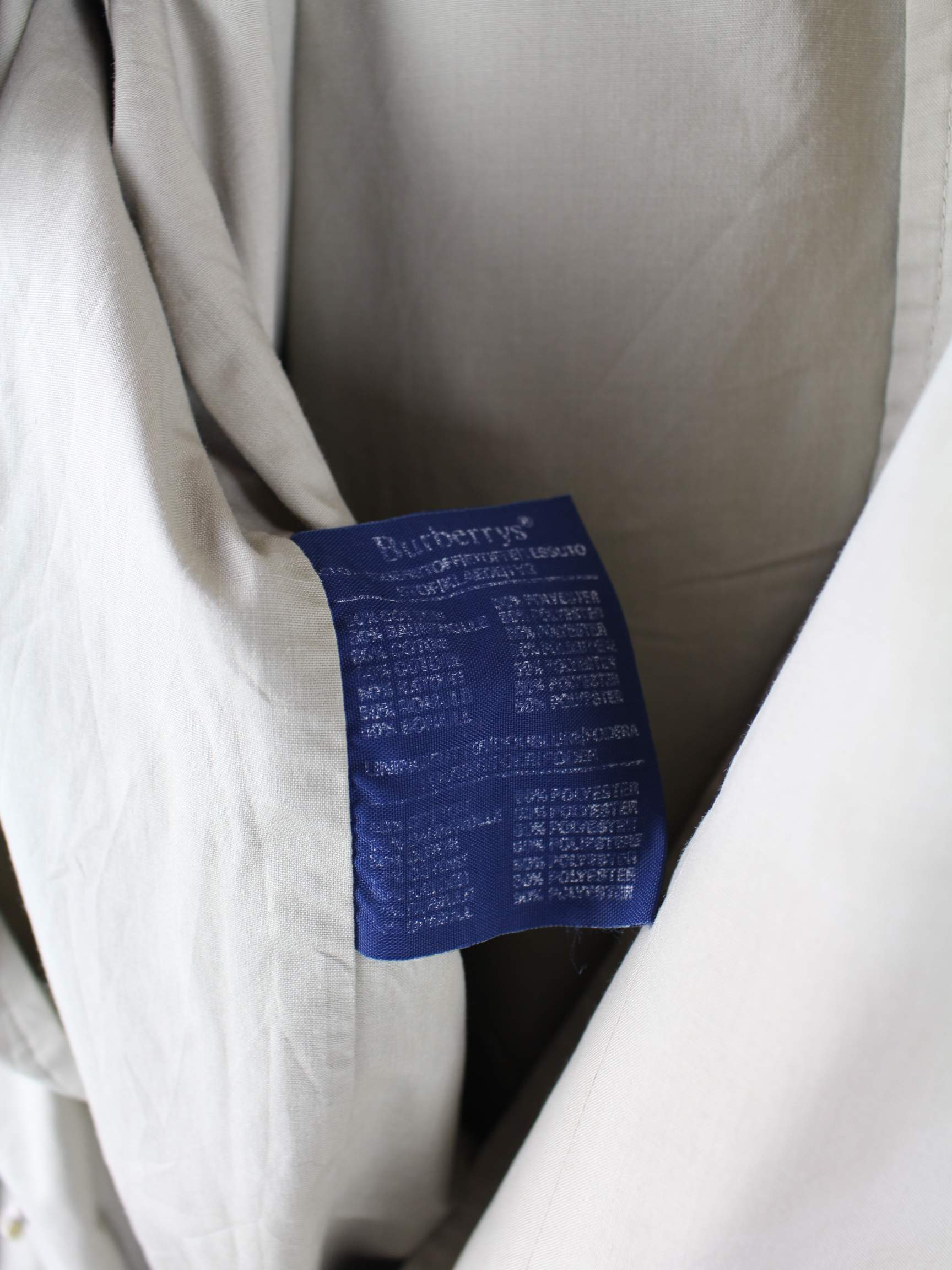 Beigefarbener Mantel vom Label Burberry aus den 80'ern in Größe XL. Er ist aus Baumwolle gemacht. Den Zustand würden wir als 'In Ordnung' bezeichnen (vergl. Bilder).