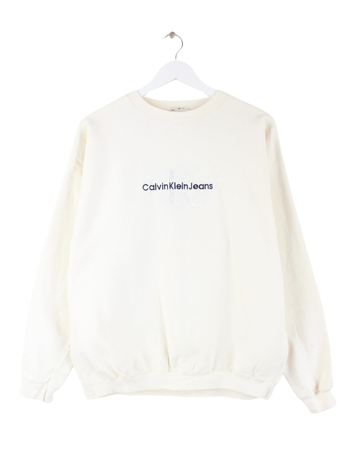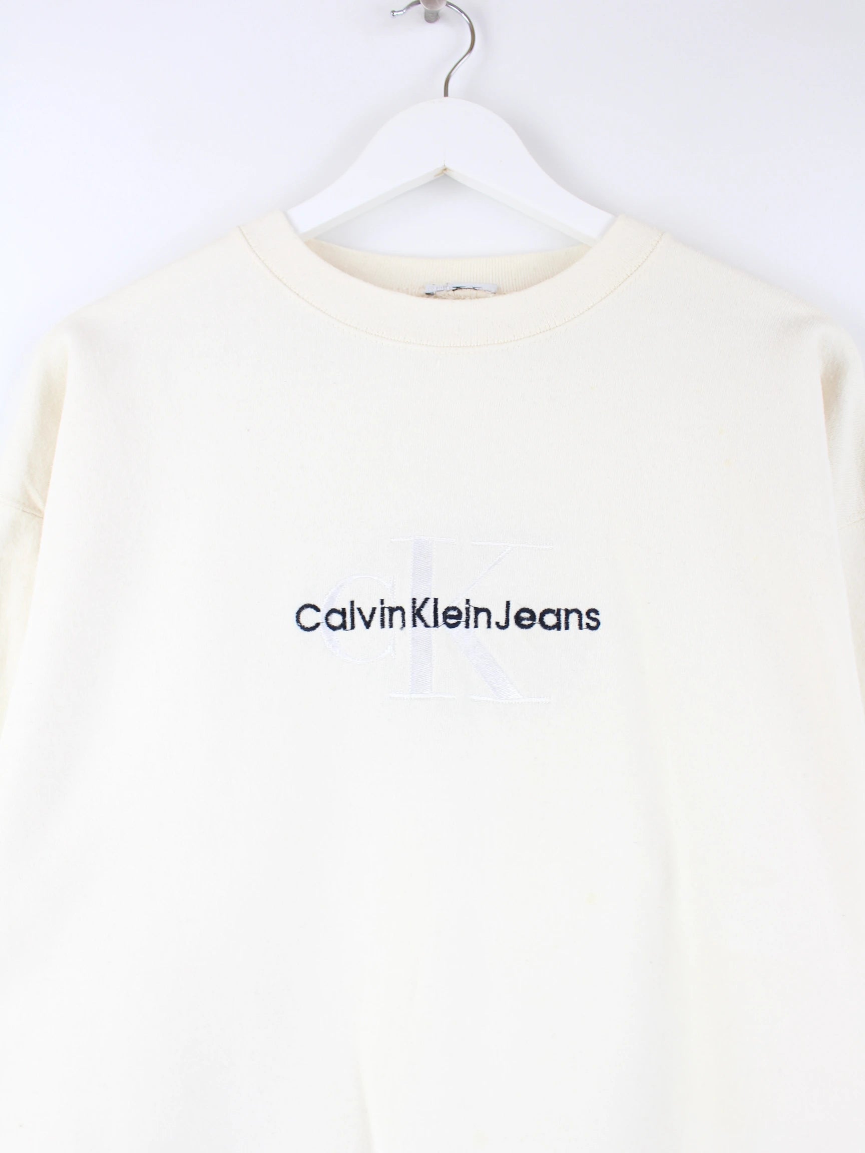 Calvin Klein 90s Vintage Big Logo Sweater Beige M