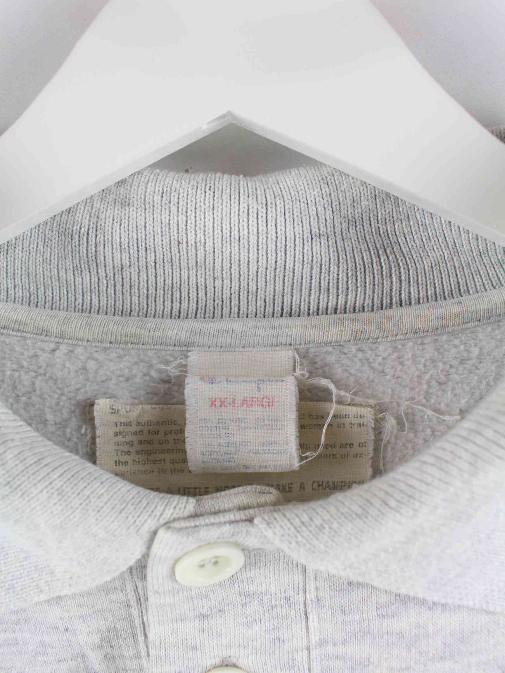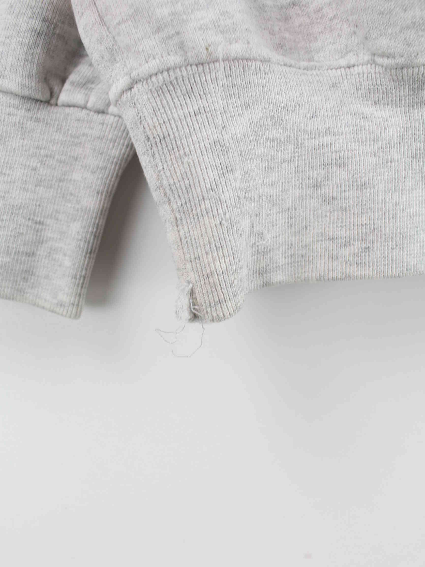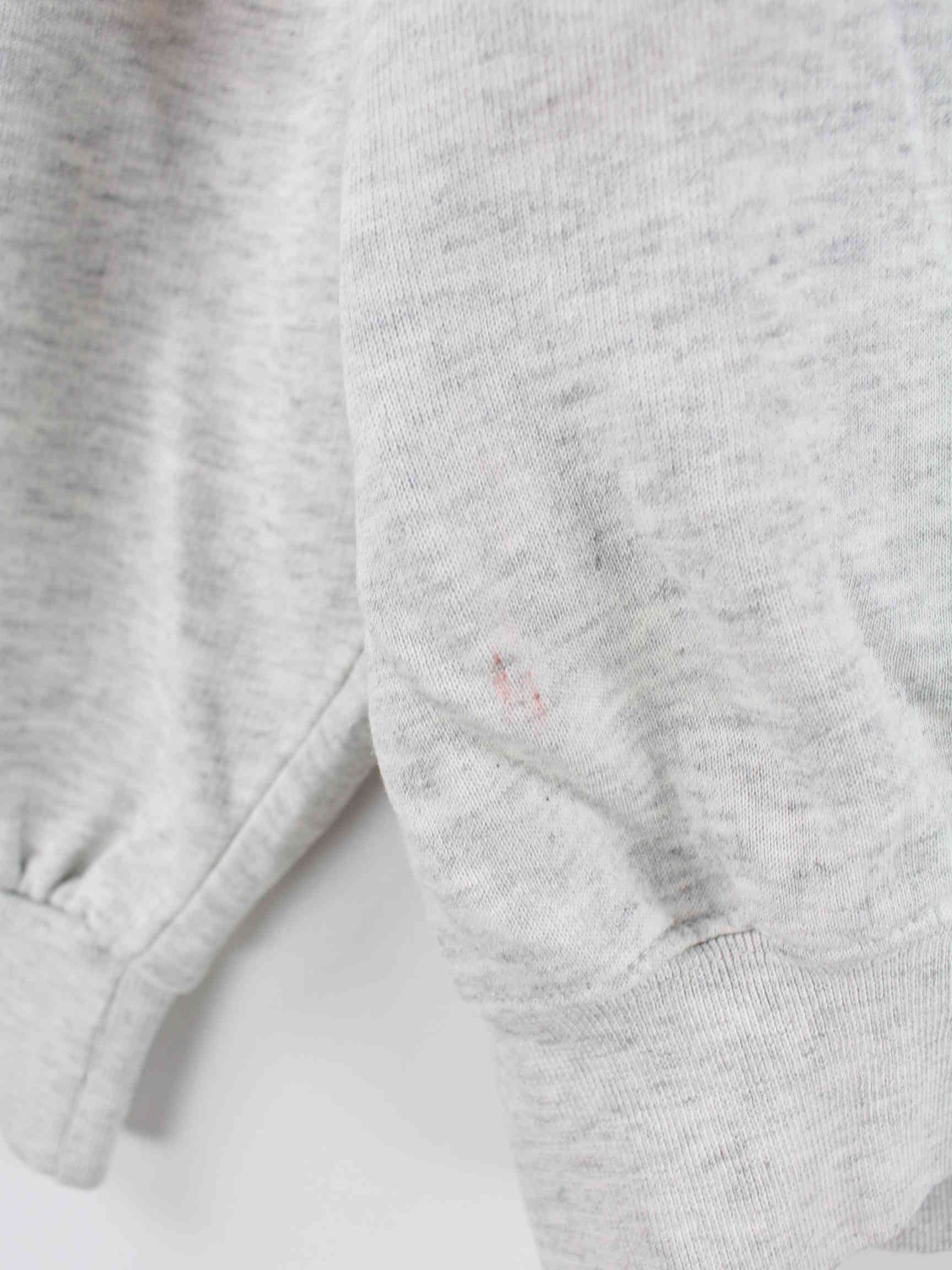 Grauer Sweater der Marke Champion aus den 80'ern in Größe XL. Er ist aus einer Baumwollmischung gefertigt und in gutem Zustand auf Lager. Mit chiquem Vintage Print.