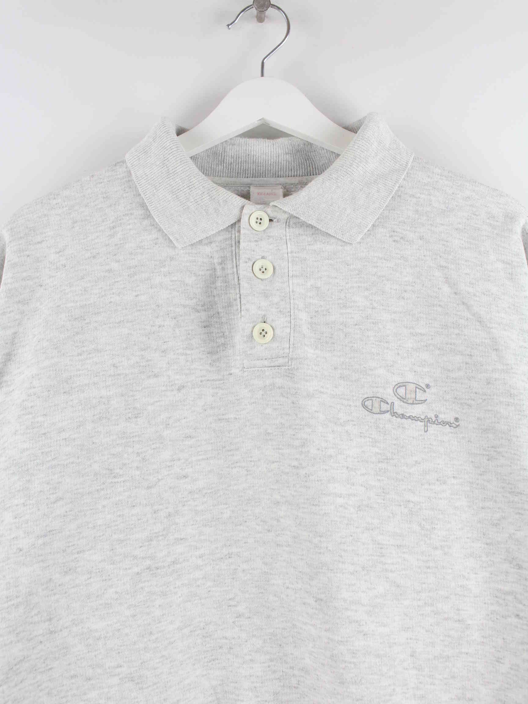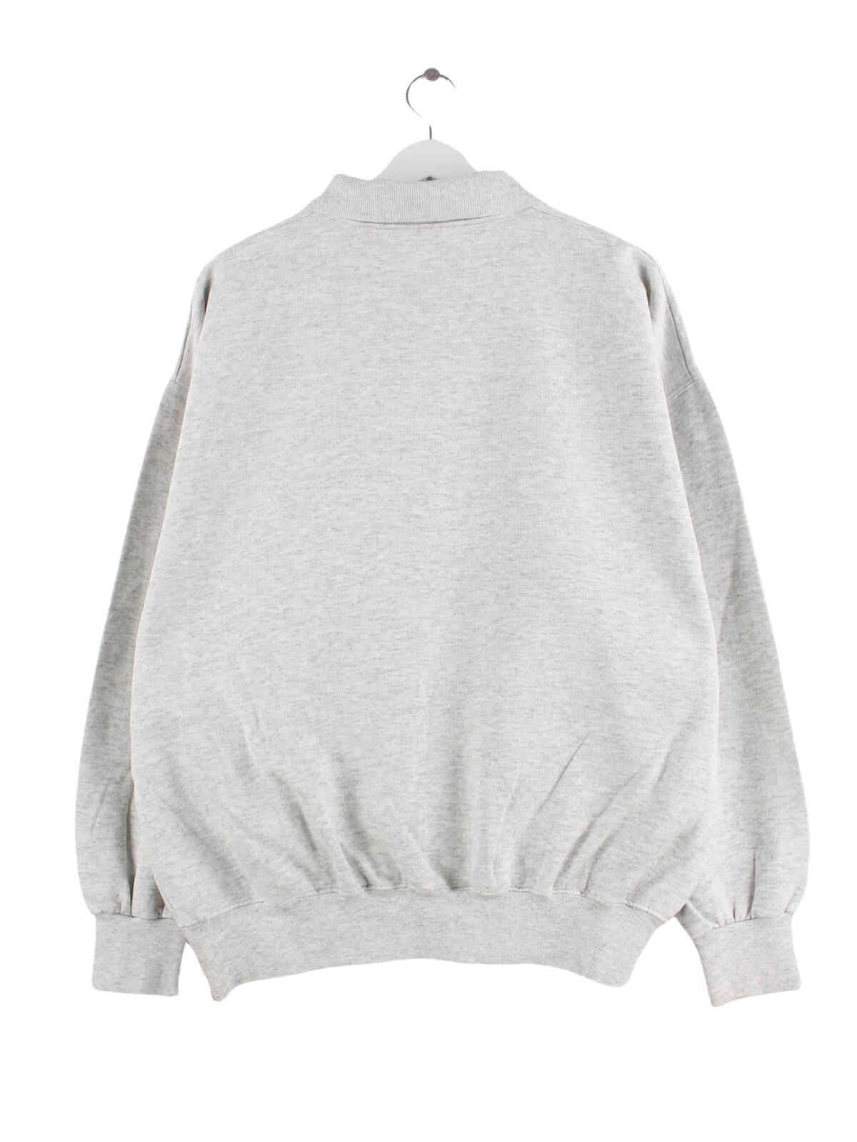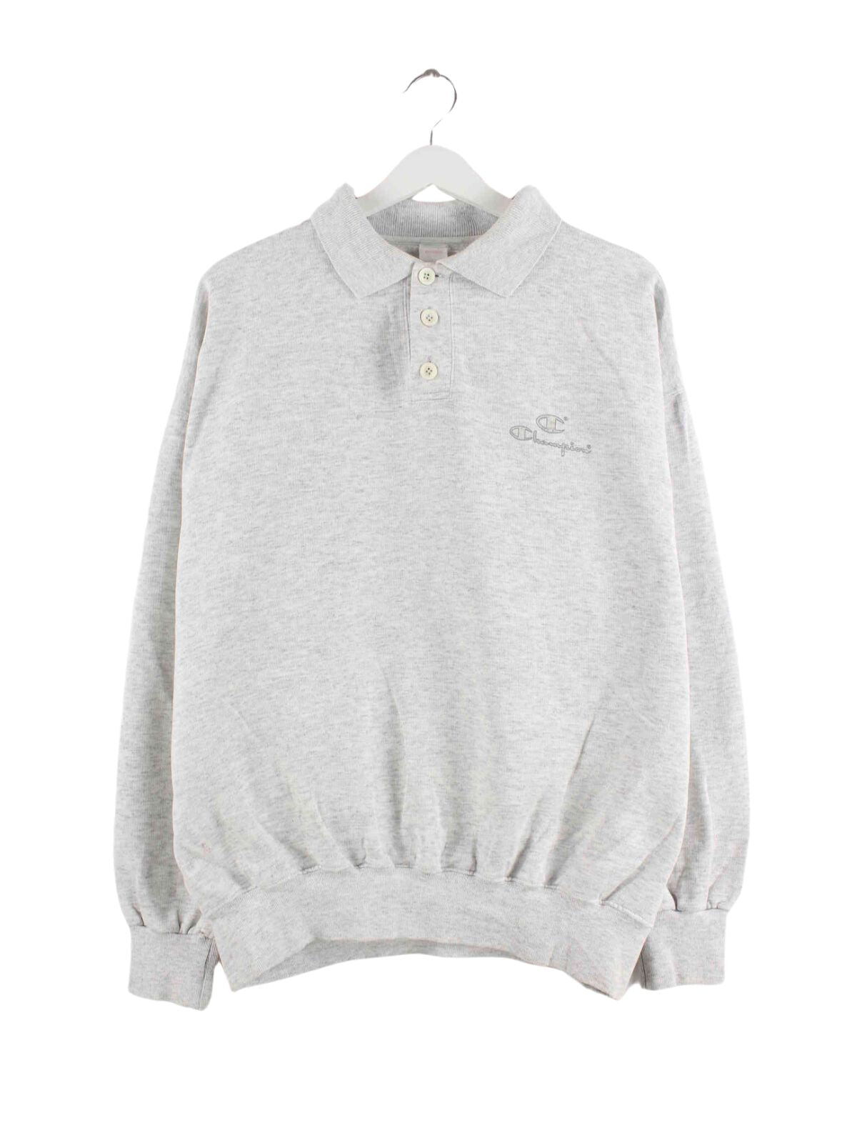 Grauer Sweater der Marke Champion aus den 80'ern in Größe XL. Er ist aus einer Baumwollmischung gefertigt und in gutem Zustand auf Lager. Mit chiquem Vintage Print.