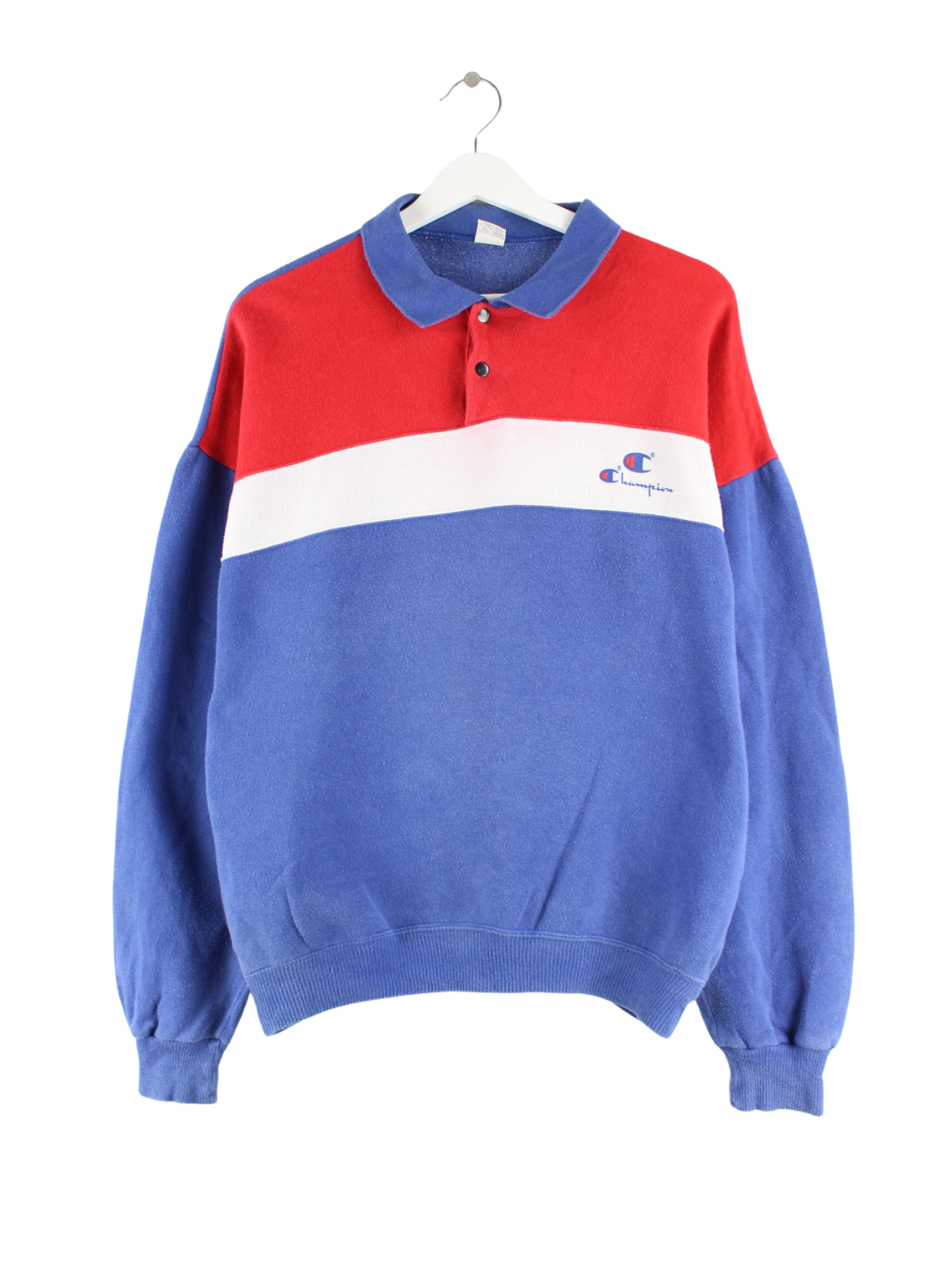 Blauer Sweater vom Brand Champion aus den 90'ern in Größe L. Er ist aus einer Baumwollmischung gemacht und in gutem Zustand vorrätig.