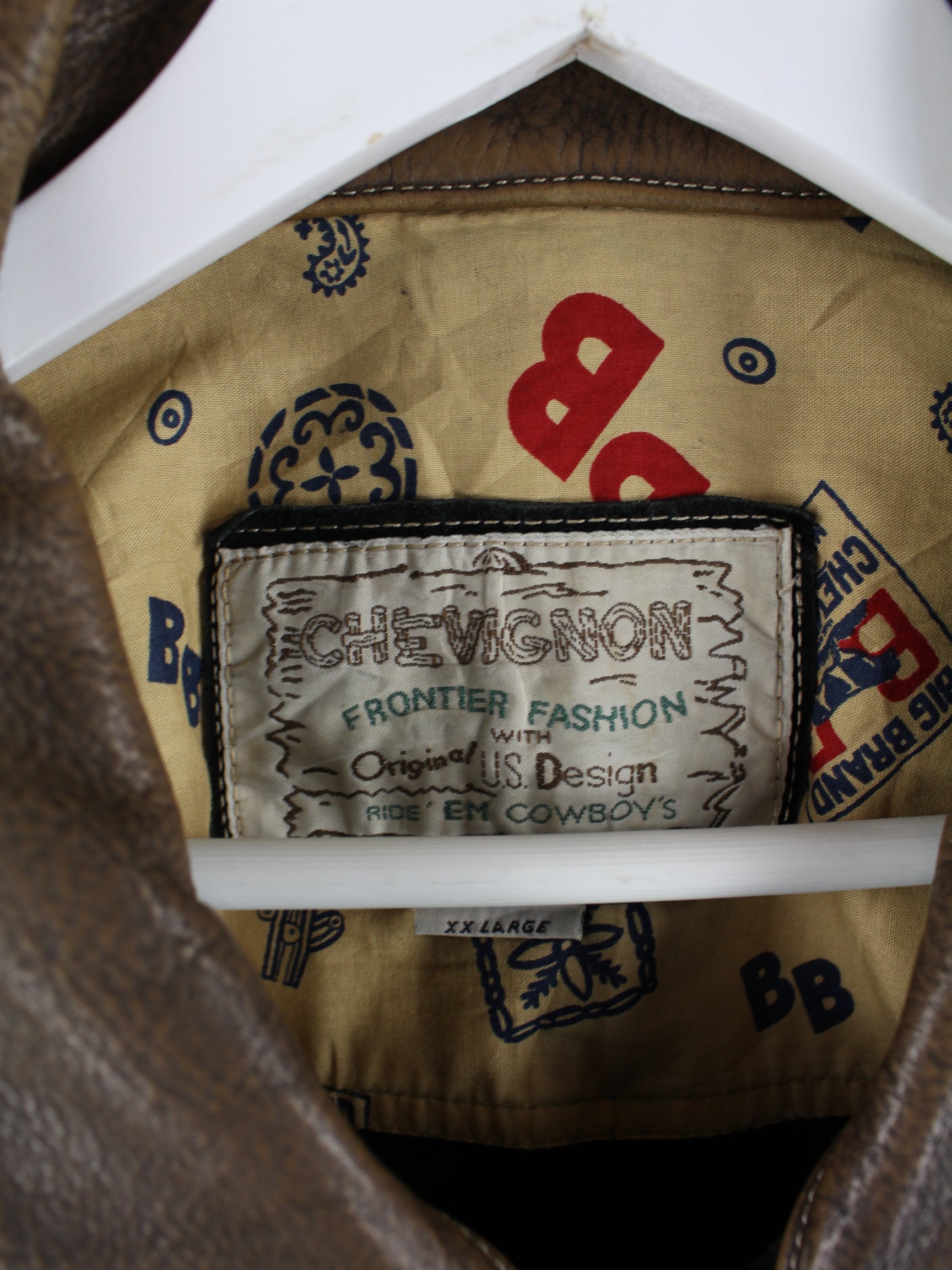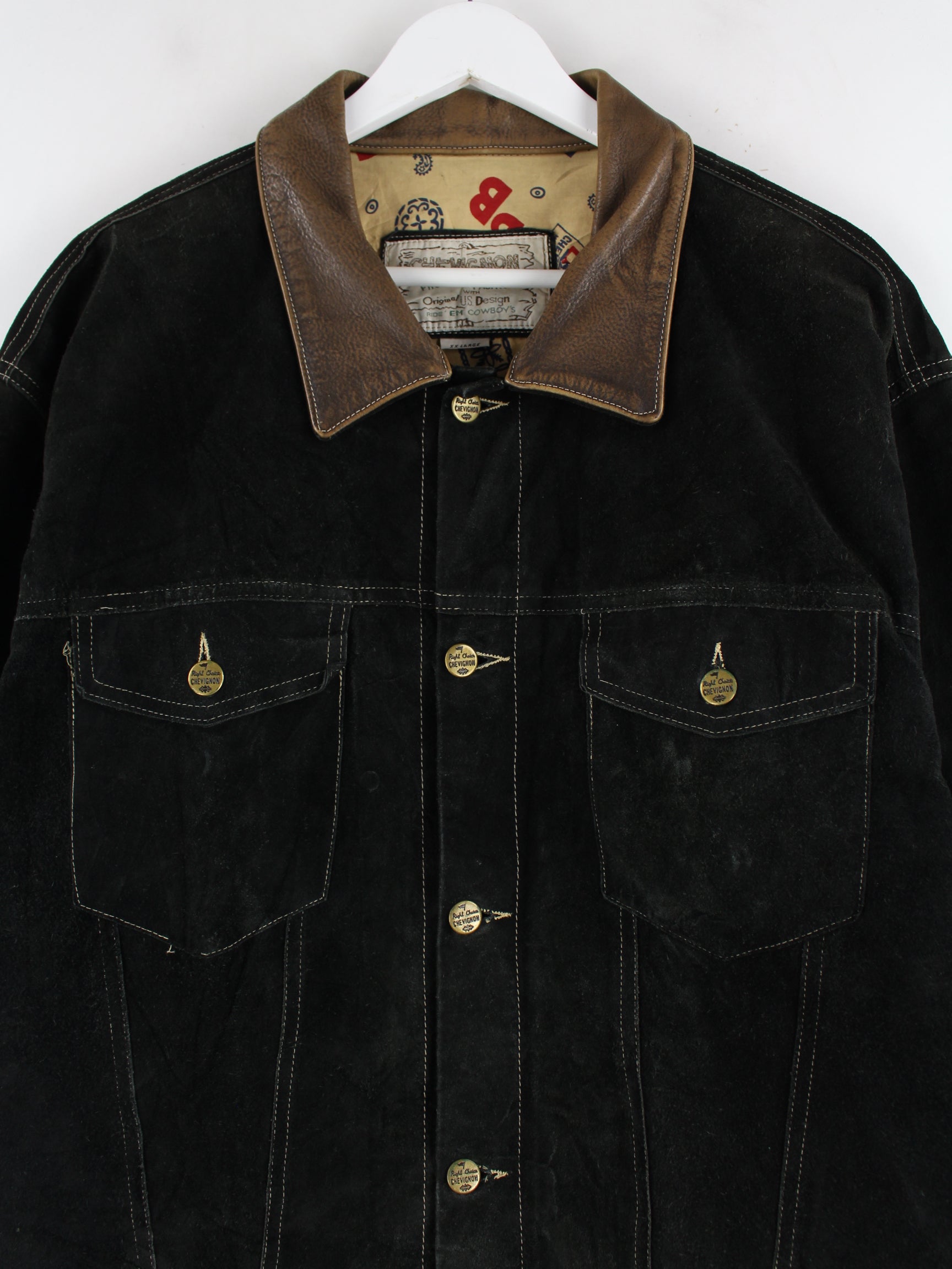 Jacke vom Brand Chevignon in Größe XXL aus den 80'ern. Sie ist aus Leder produziert und in Schwarz bei uns zu bekommen.