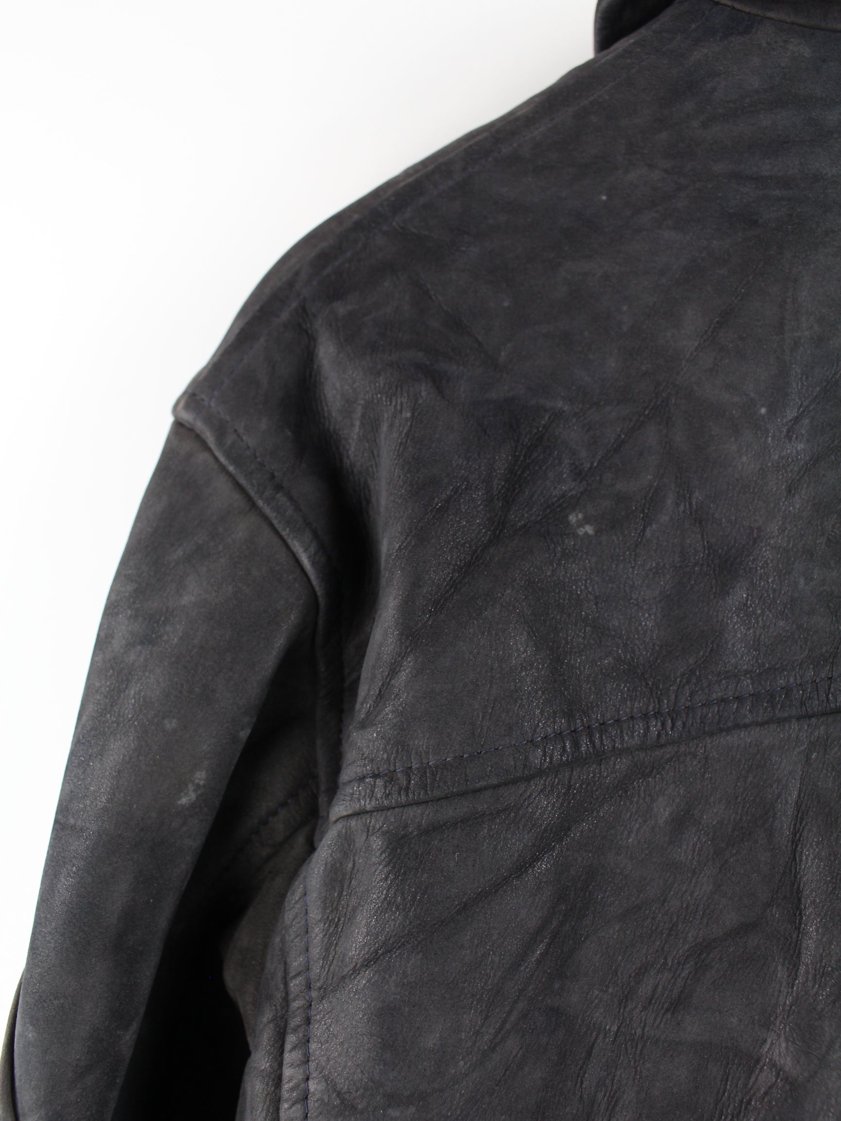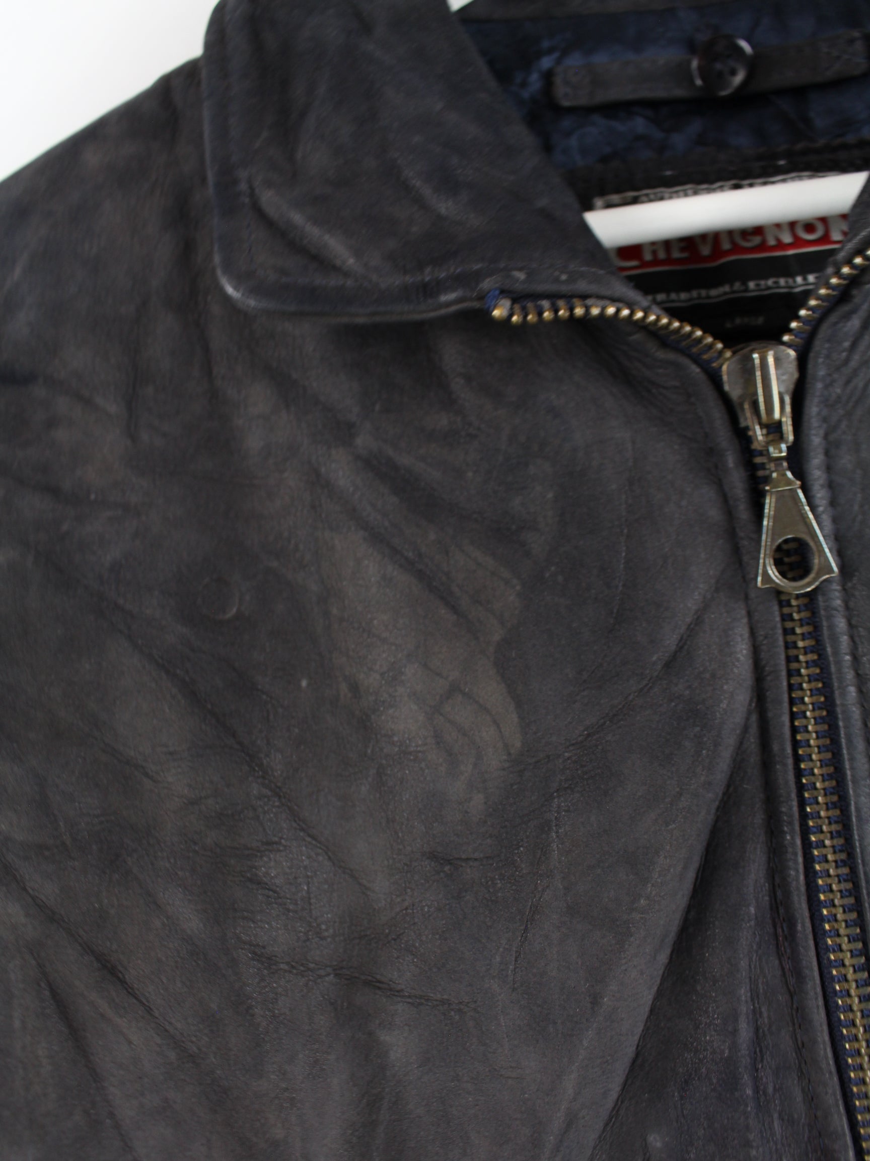 Schwarze Jacke vom Brand Chevignon aus den 90'ern in Größe M. Sie ist aus Leder produziert. Den Zustand würden wir als 'In Ordnung' bezeichnen (vergl. Bilder).