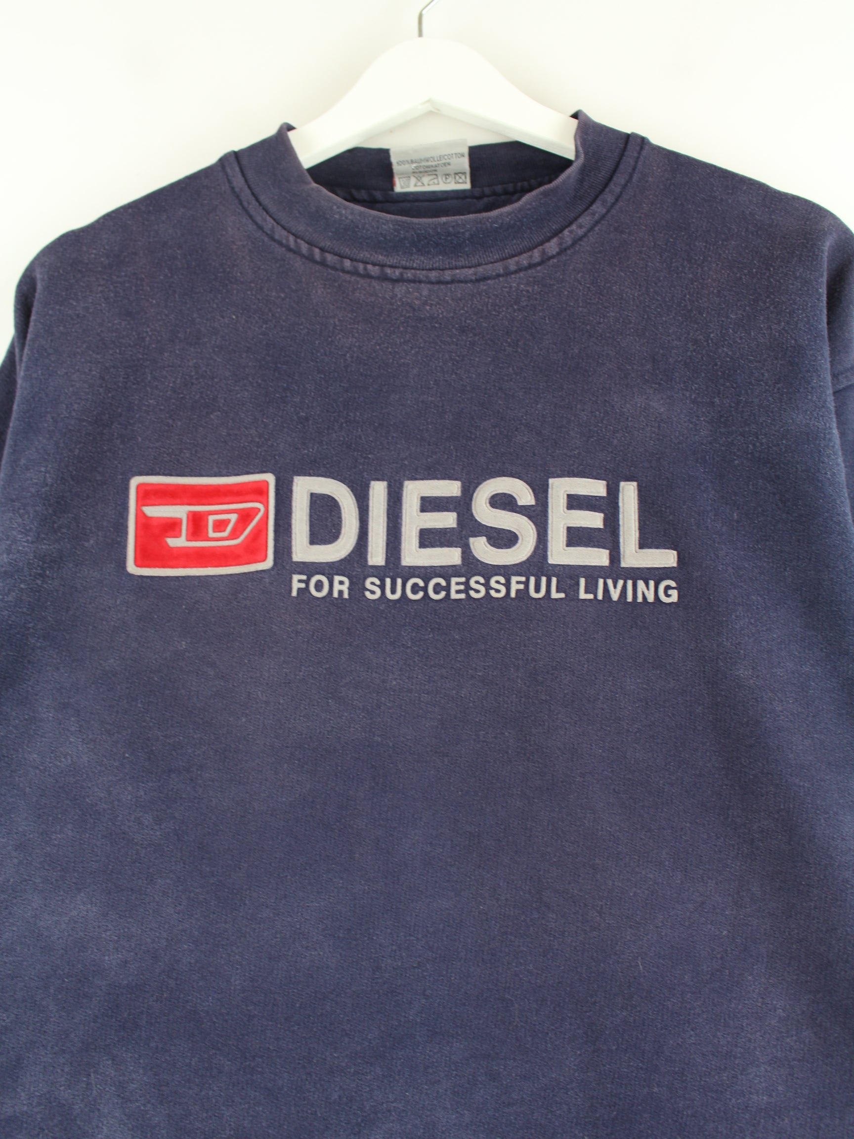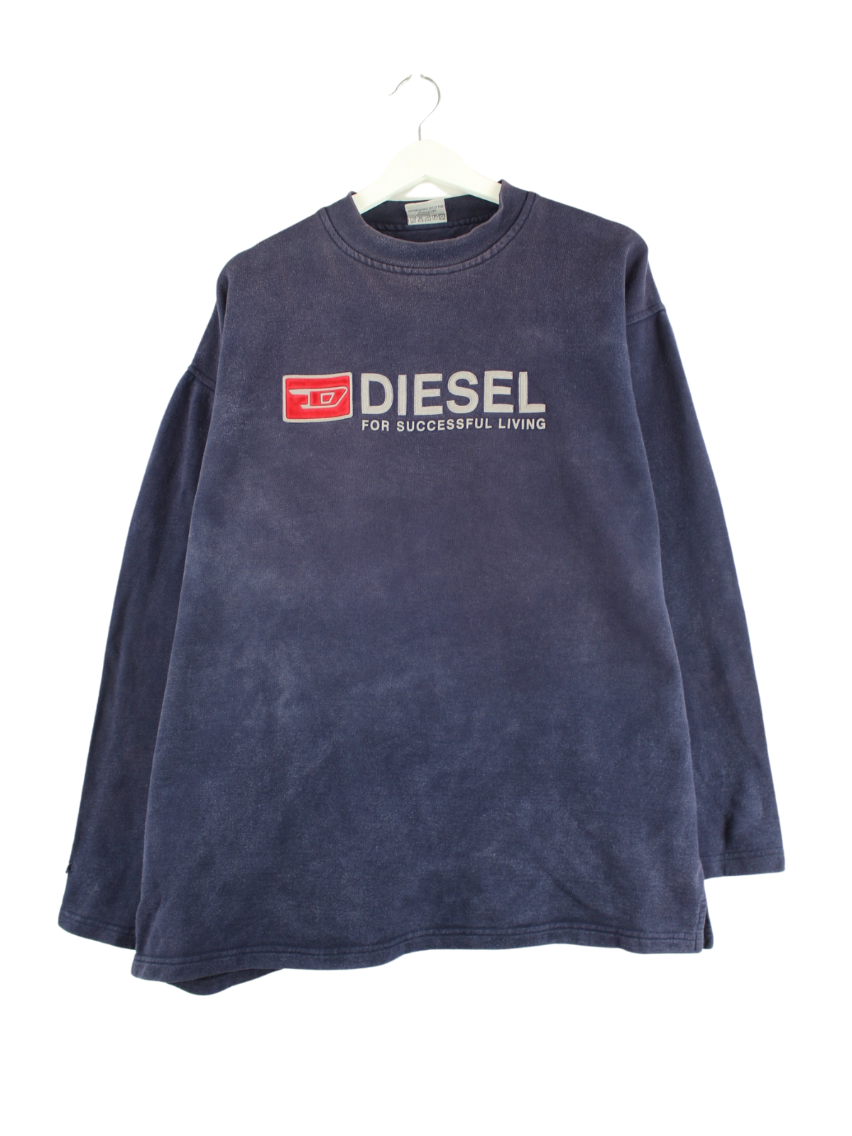 Sweater der Brand Diesel in Größe XXL aus den 90'ern. Er ist aus einer Baumwollmischung hergestellt und in Blau bei uns zu bekommen. Mit schickem Vintage Print.