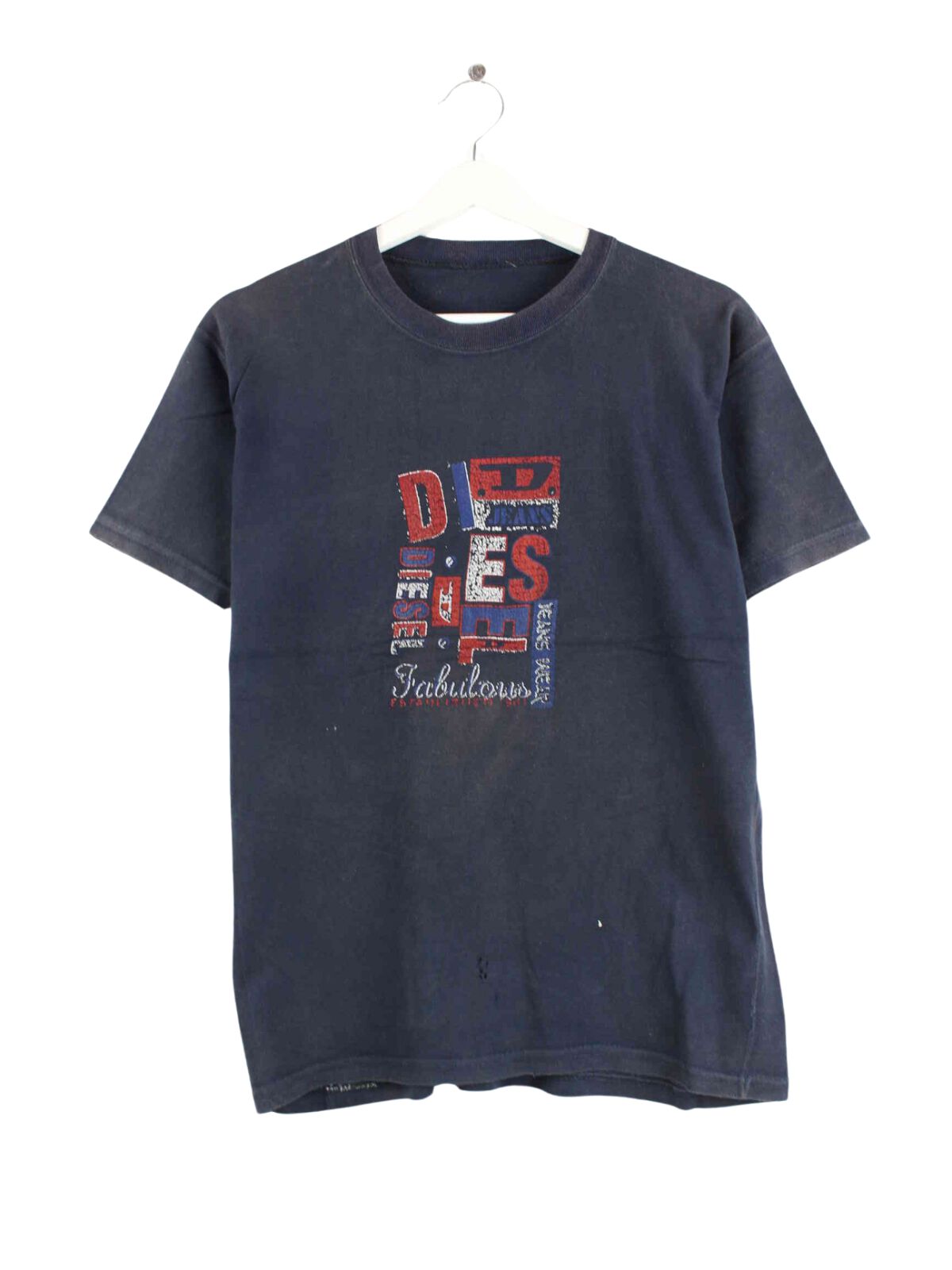 T-Shirt von Diesel in Größe S aus den 90'ern. Es ist aus Baumwolle produziert und in Schwarz lieferbar. Mit tollem Vintage Print.