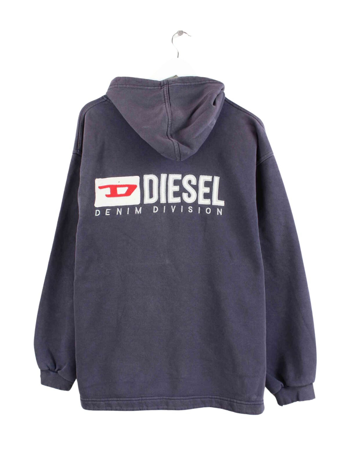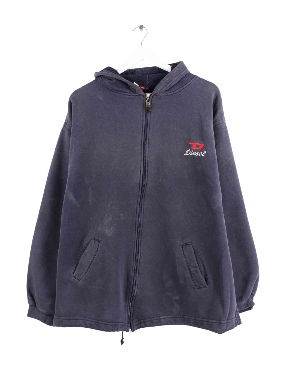 Hoodie vom Brand Diesel mit durchgehendem Reißverschluß in Größe XL aus den 90'ern. Er ist aus einer Baumwollmischung produziert und in Blau lieferbar.