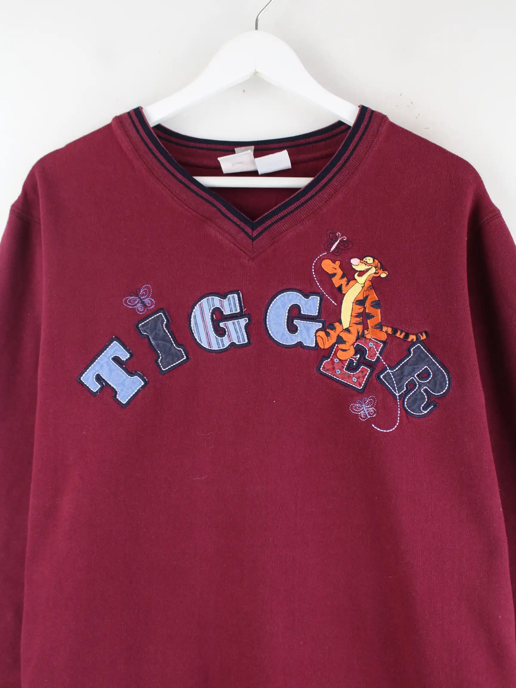 Disney Damen 00s Tigger Embroidered V-Neck Sweater Rot XL