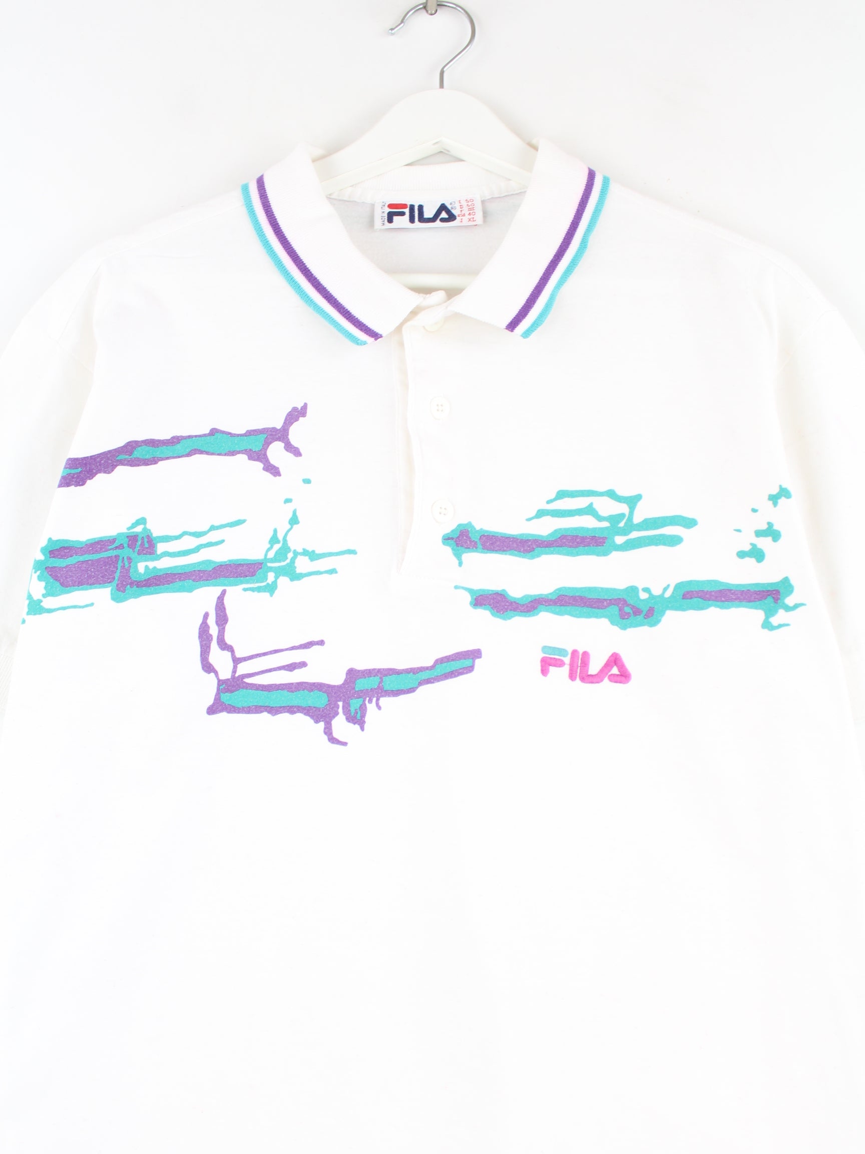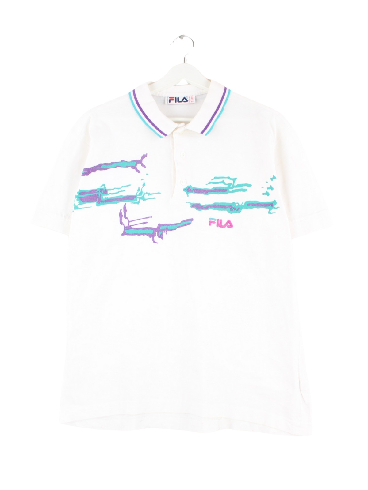 Fila 90s Vintage Crazy Pattern Polo Weiß L