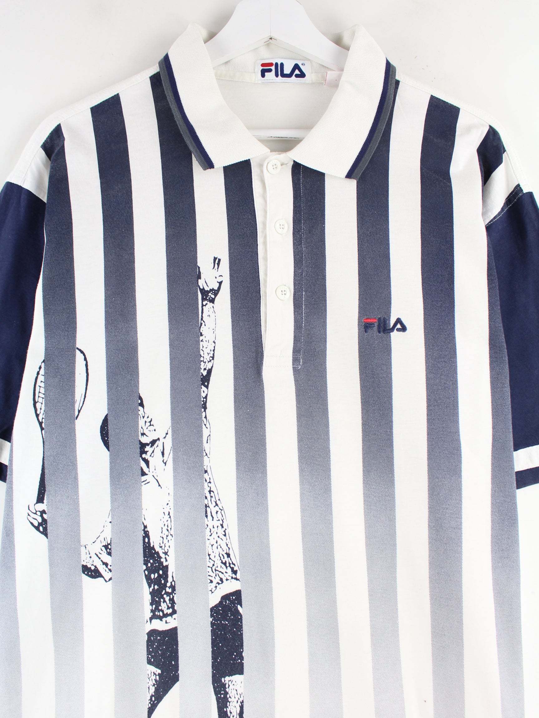 Fila 90s Vintage Tennis Print Polo Weiß XL