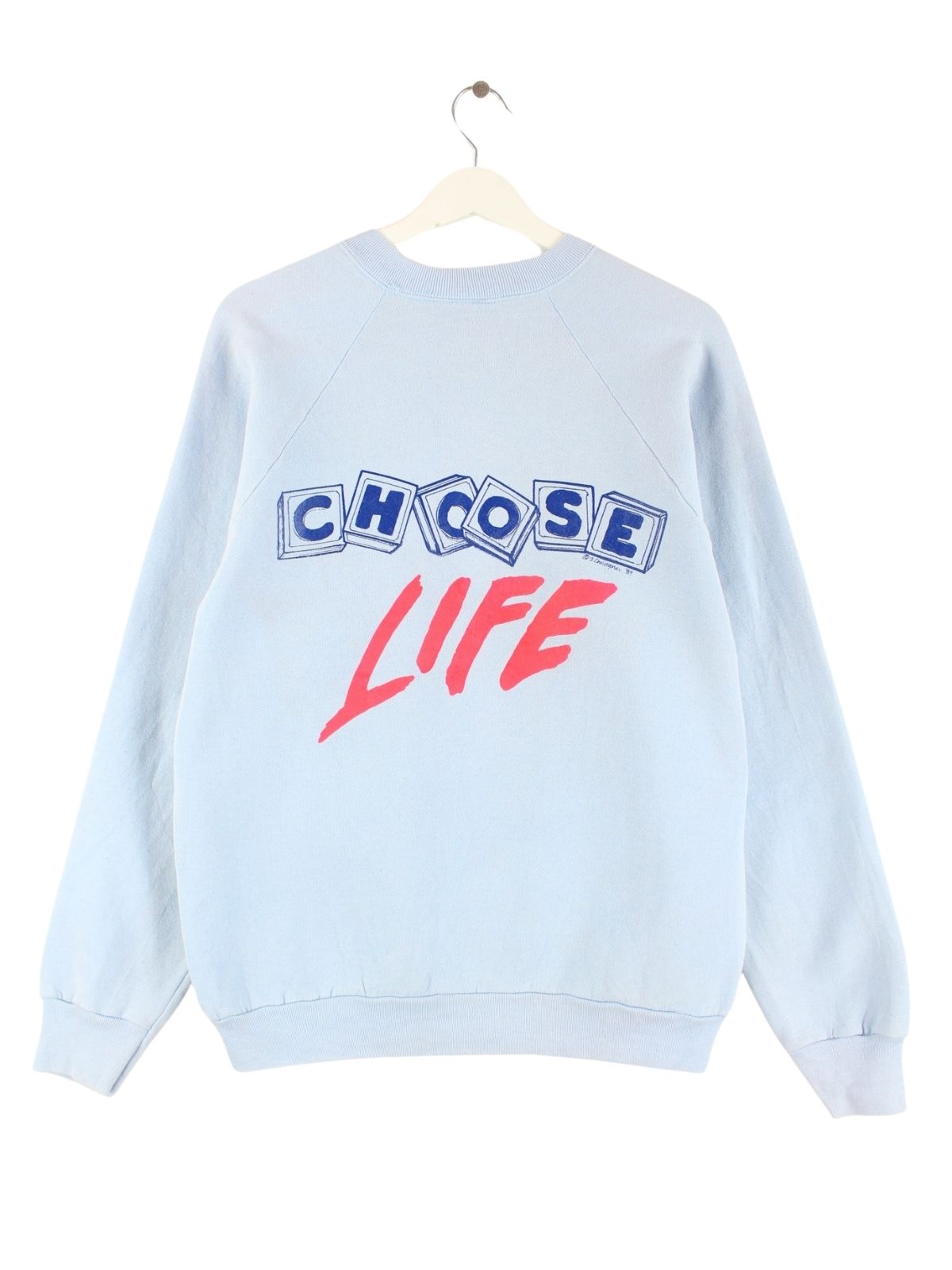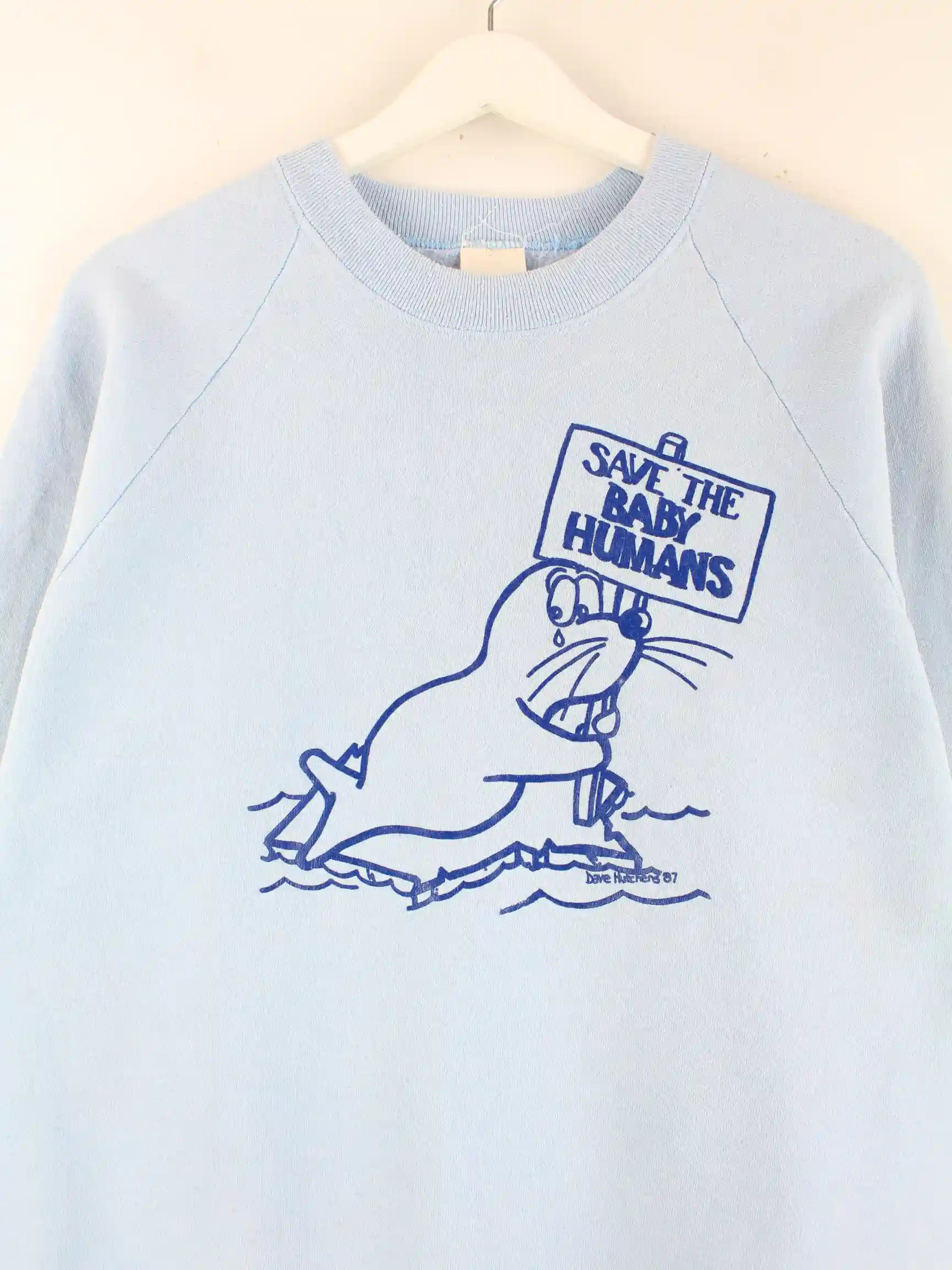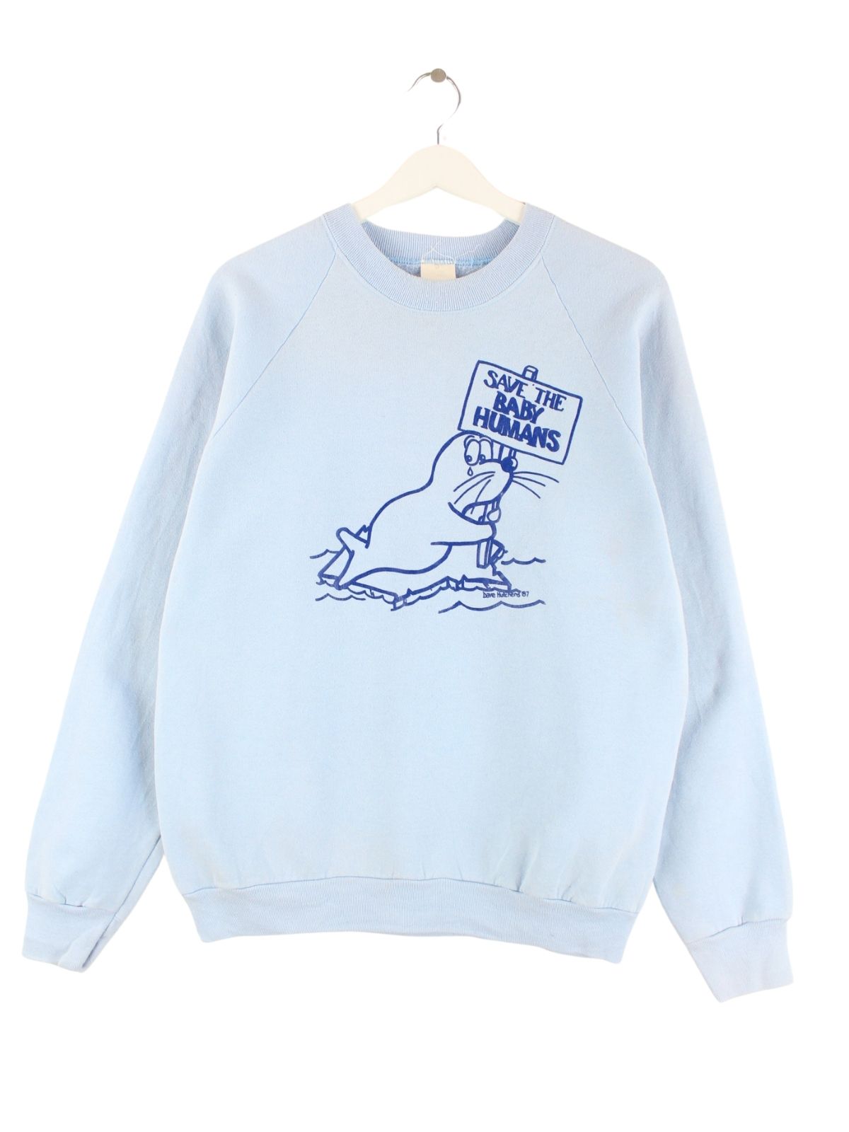 Fruit of the Loom 1989 Vintage Save The Humans Print Sweater Blau L