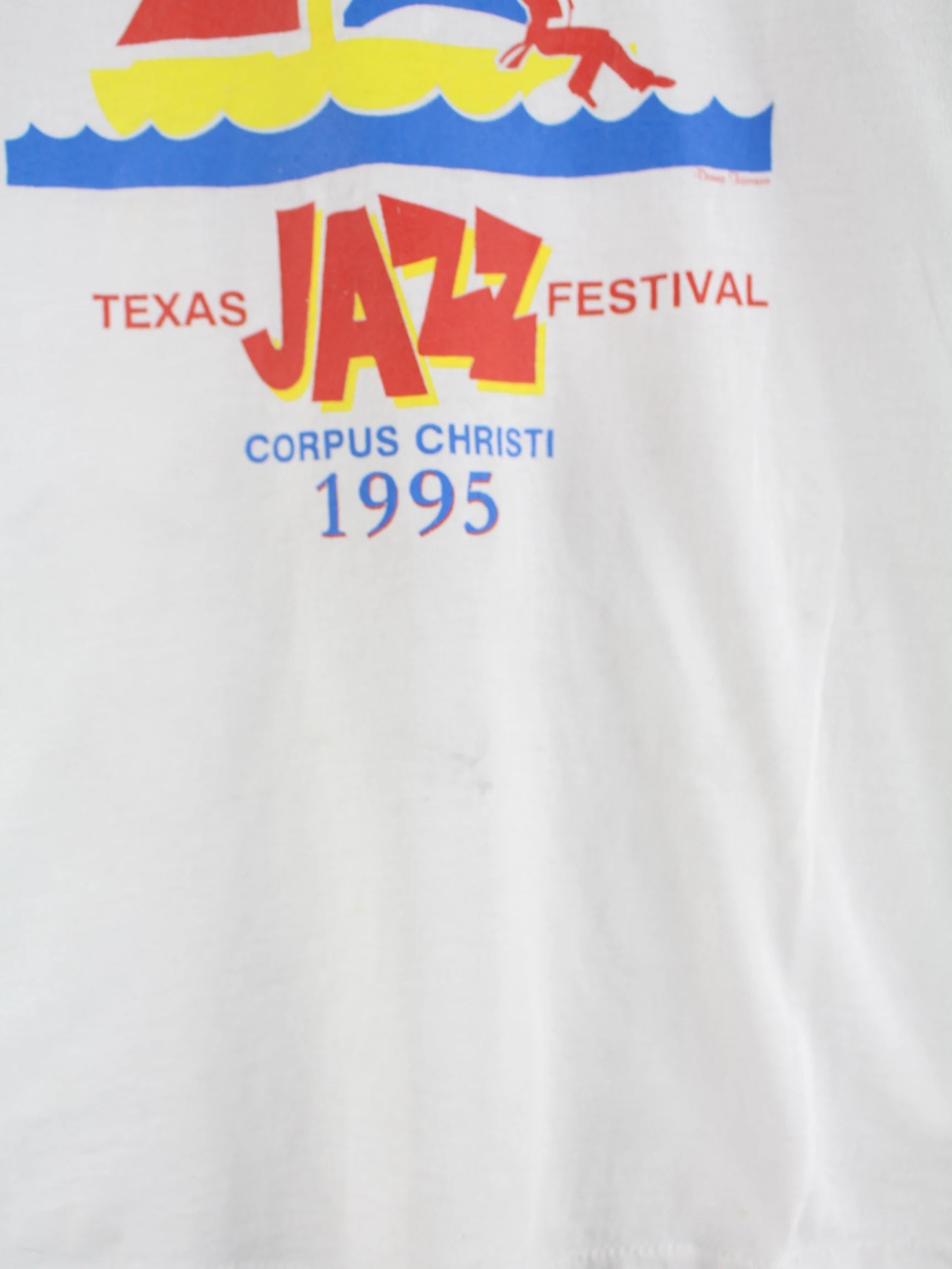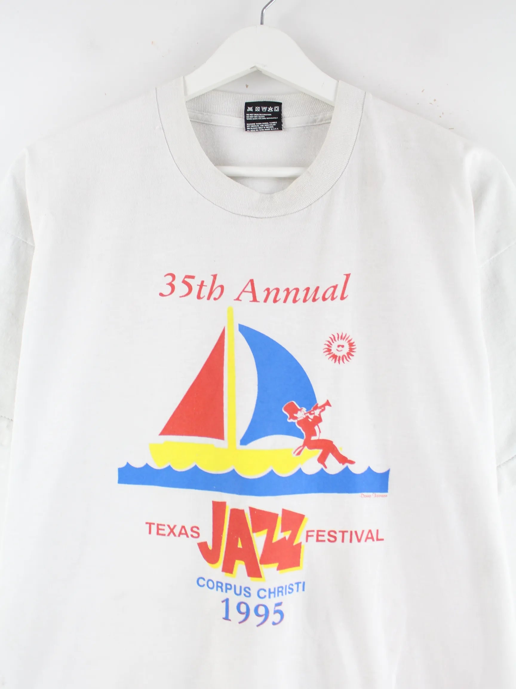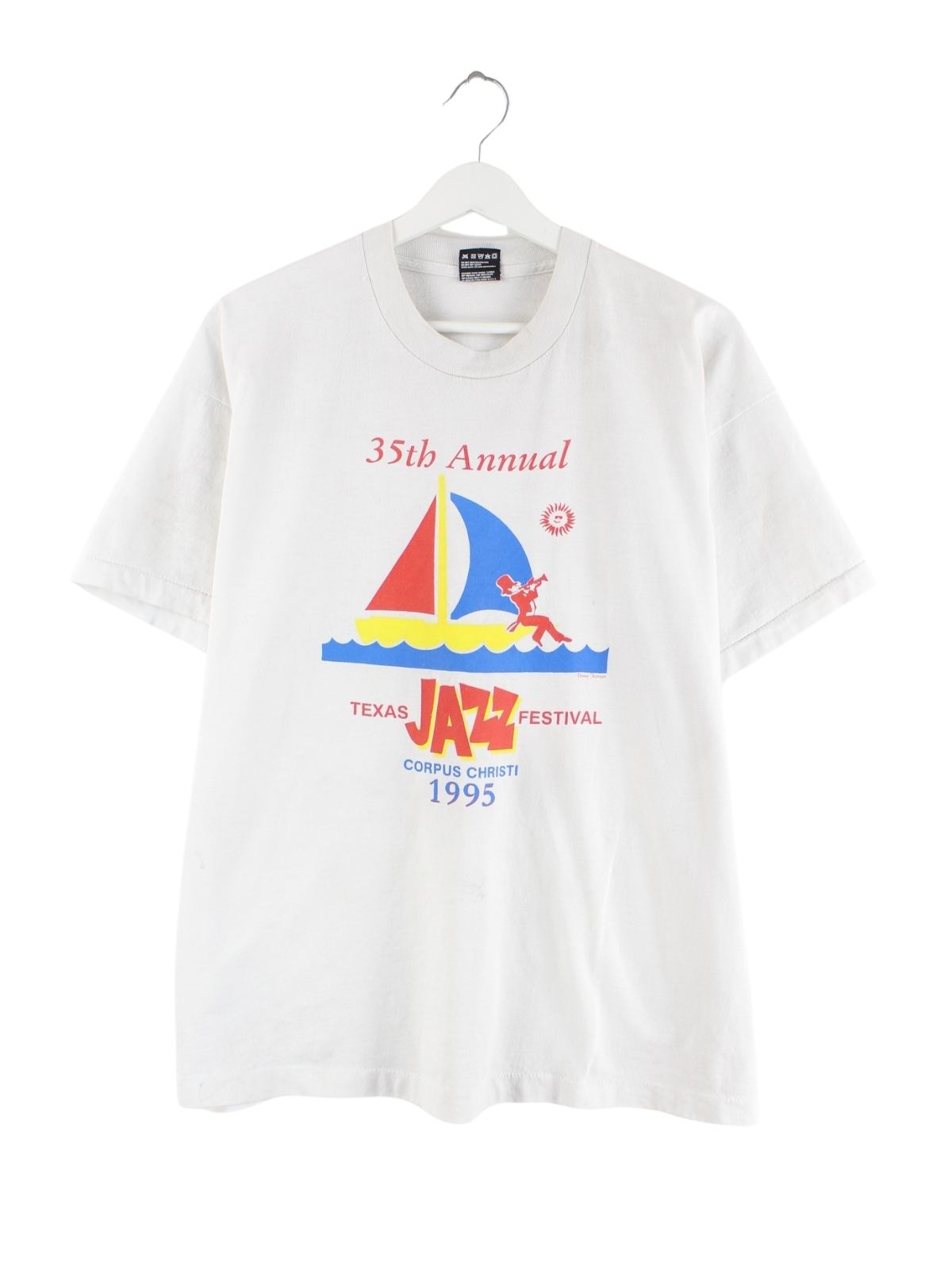 Fruit of the Loom 1995 Vintage Texas Jazz Print Single Stitch T-Shirt Weiß M