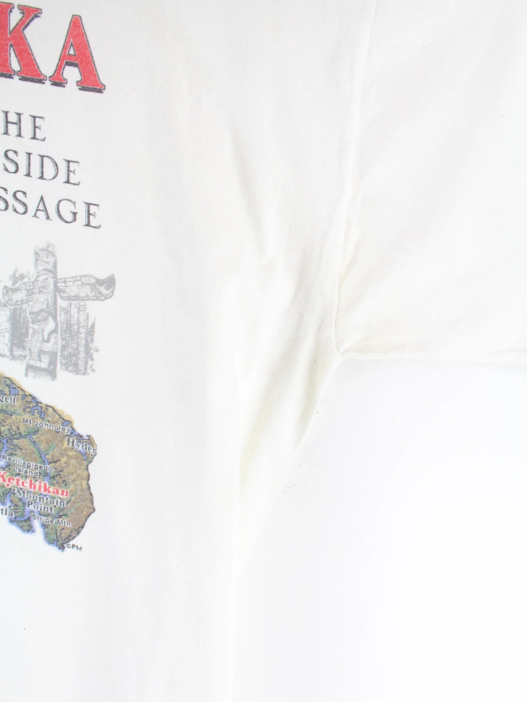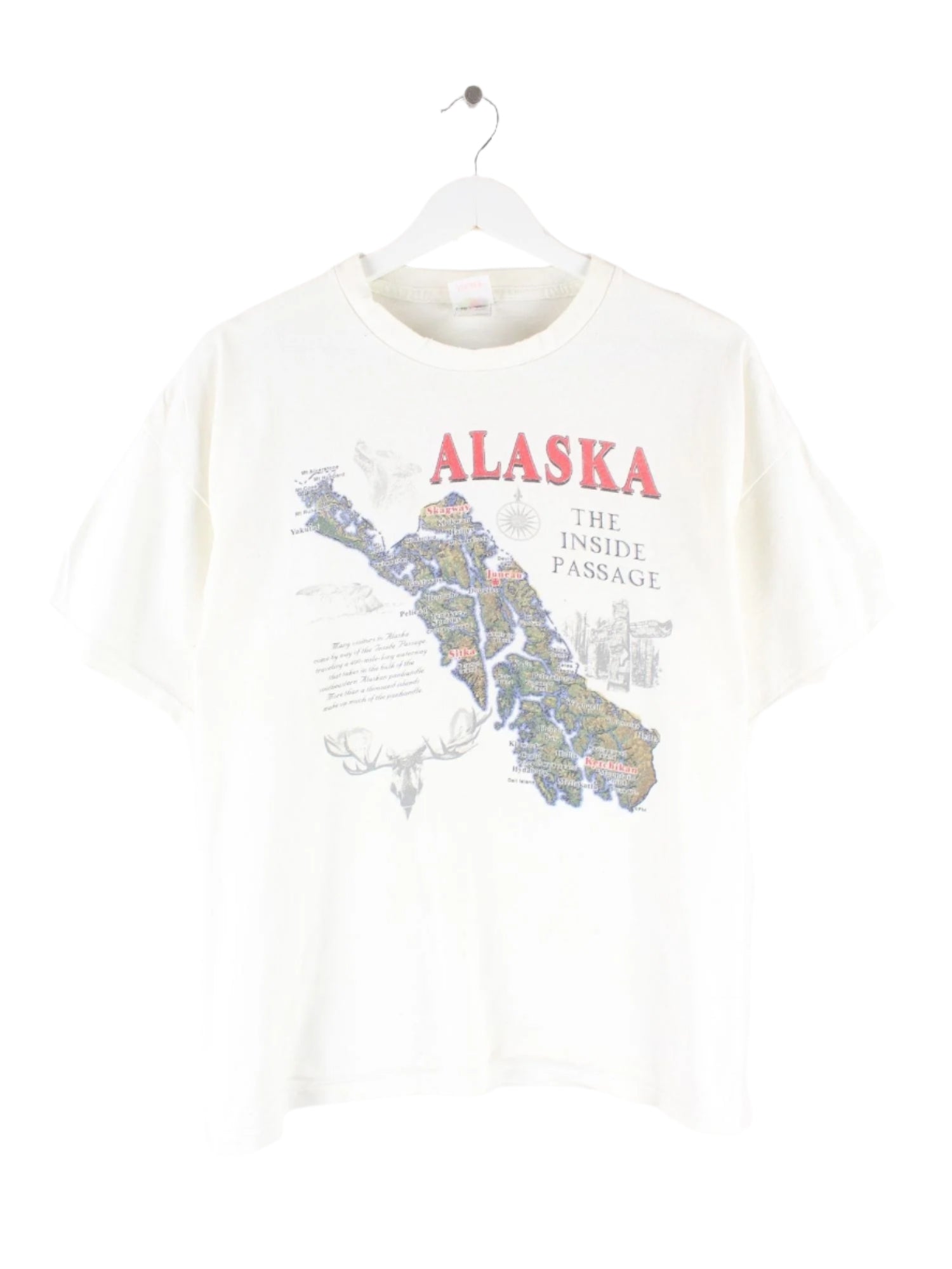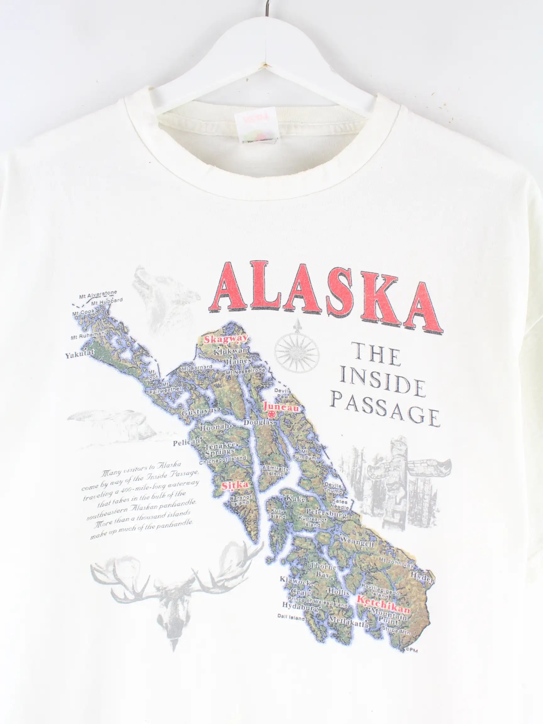 Fruit of the Loom 90s Vintage Alaska Prin T-Shirt Weiß XL