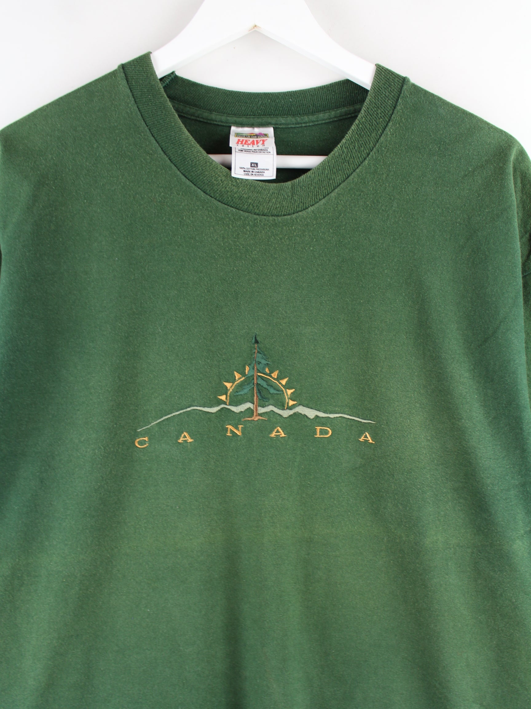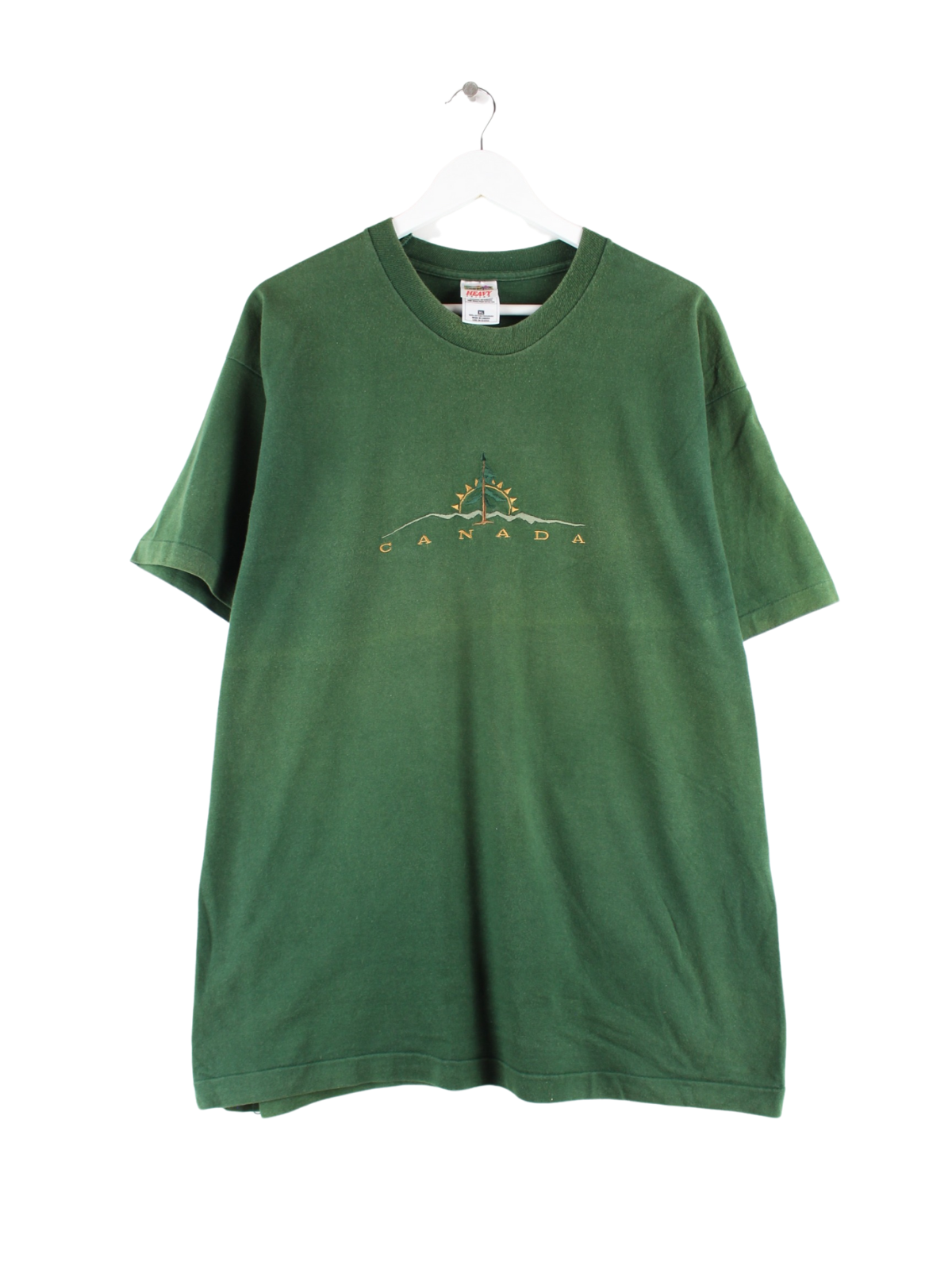 Fruit of the Loom 90s Vintage Canada Embroidered Single Stitched T-Shirt Grün XL
