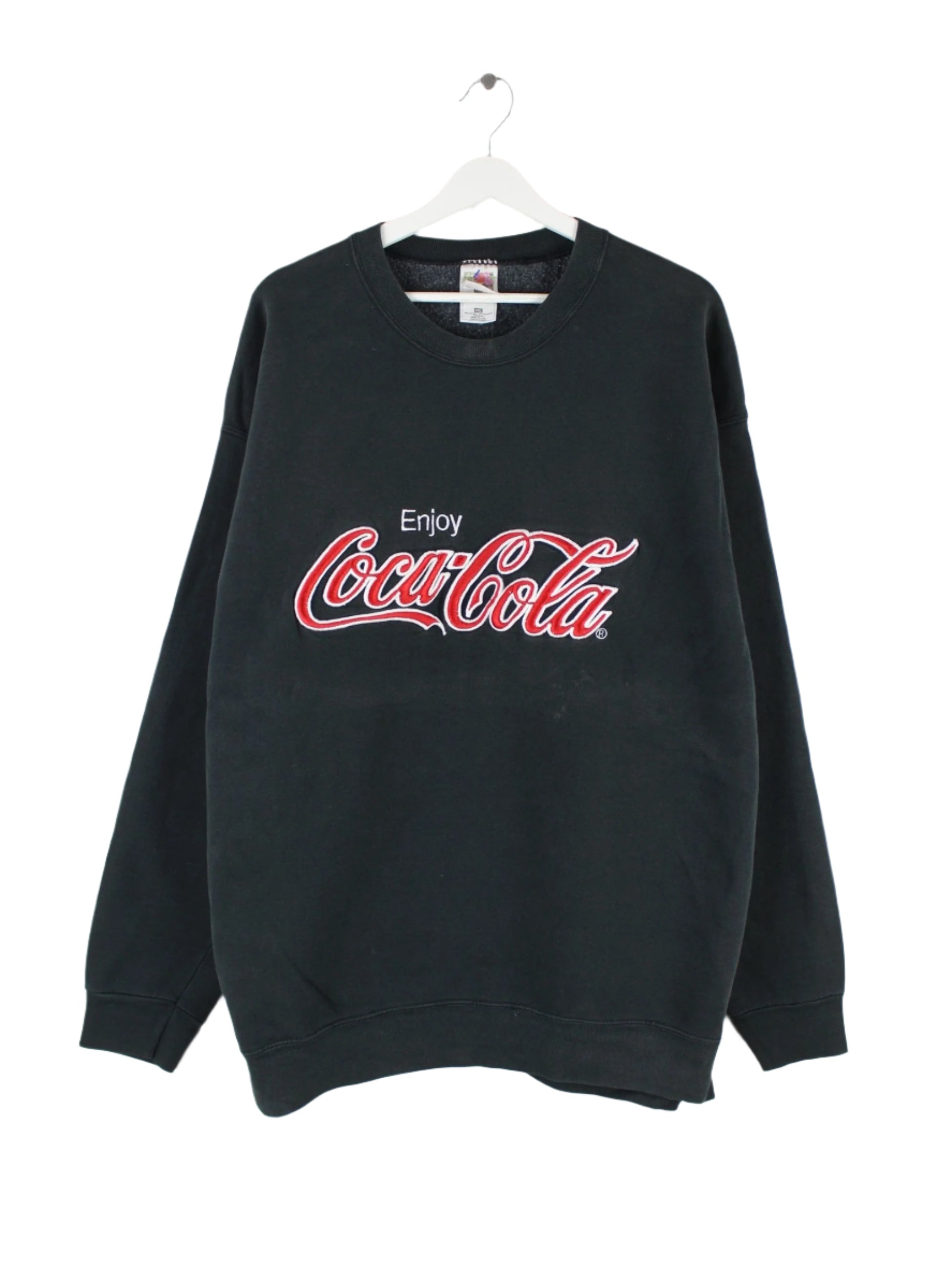 Fruit of the Loom 90s Vintage Coca Cola Embroidered Sweater Schwarz XXL