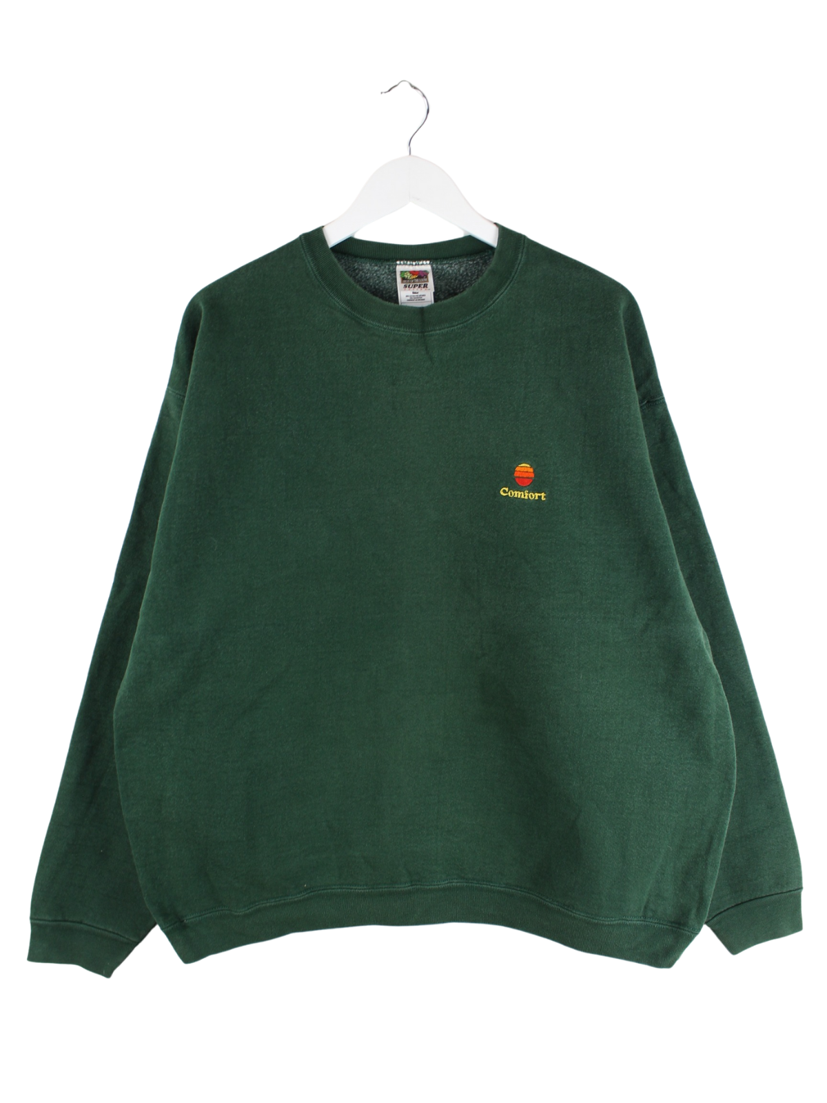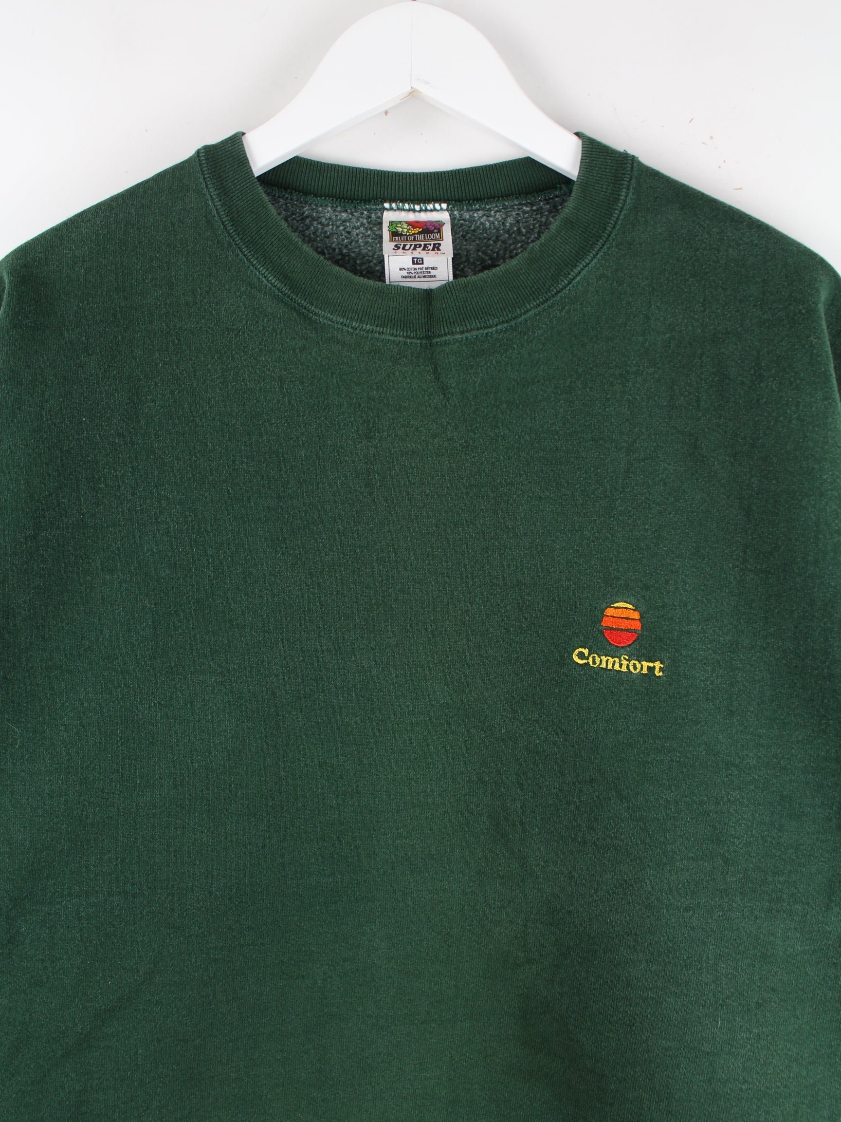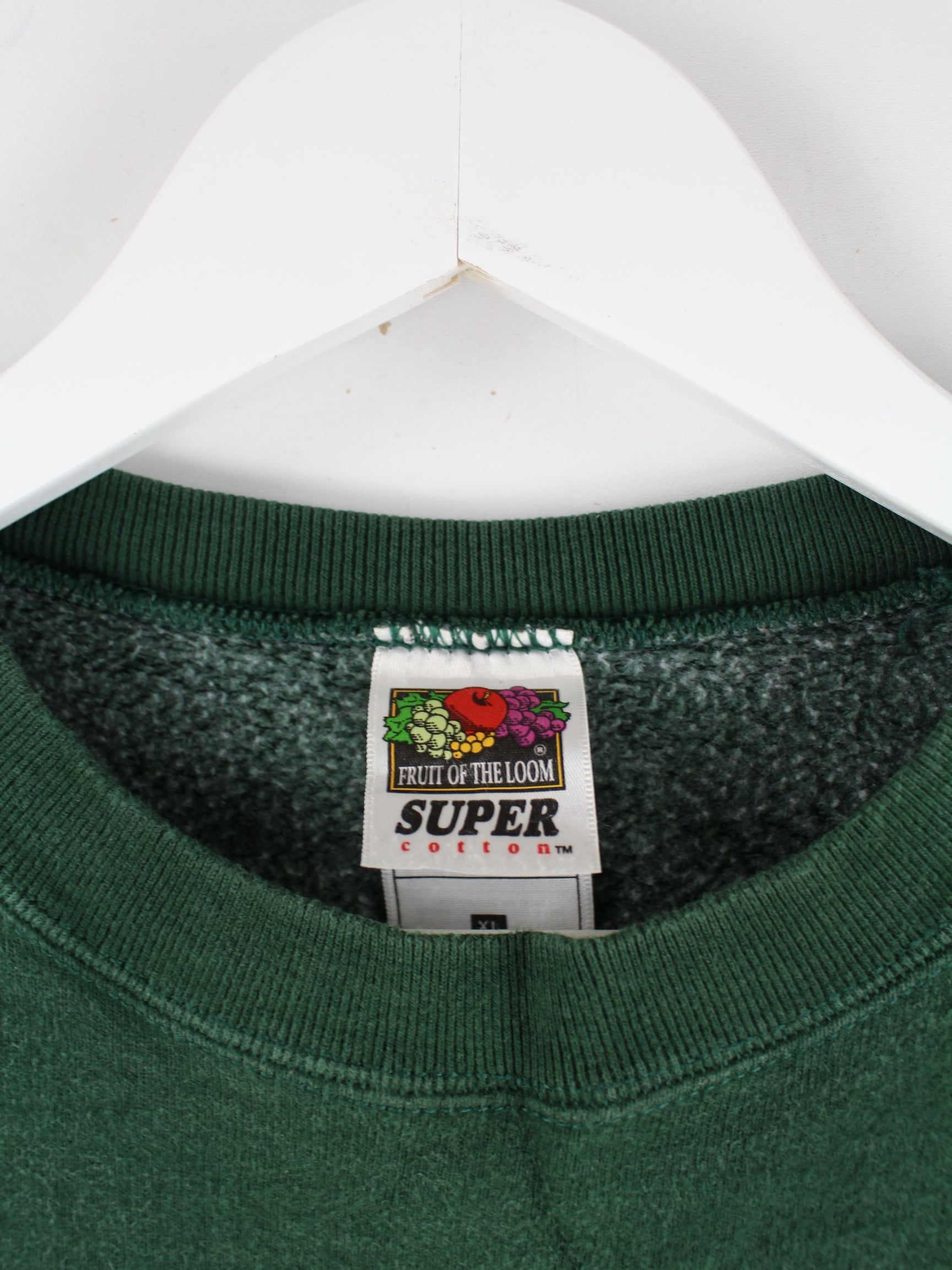 Grüner Sweater mit Stickereien vom Label Fruit of the Loom aus den 90'ern in Größe XL. Er ist aus einer Baumwollmischung gefertigt und in sehr gutem Zustand lieferbar.