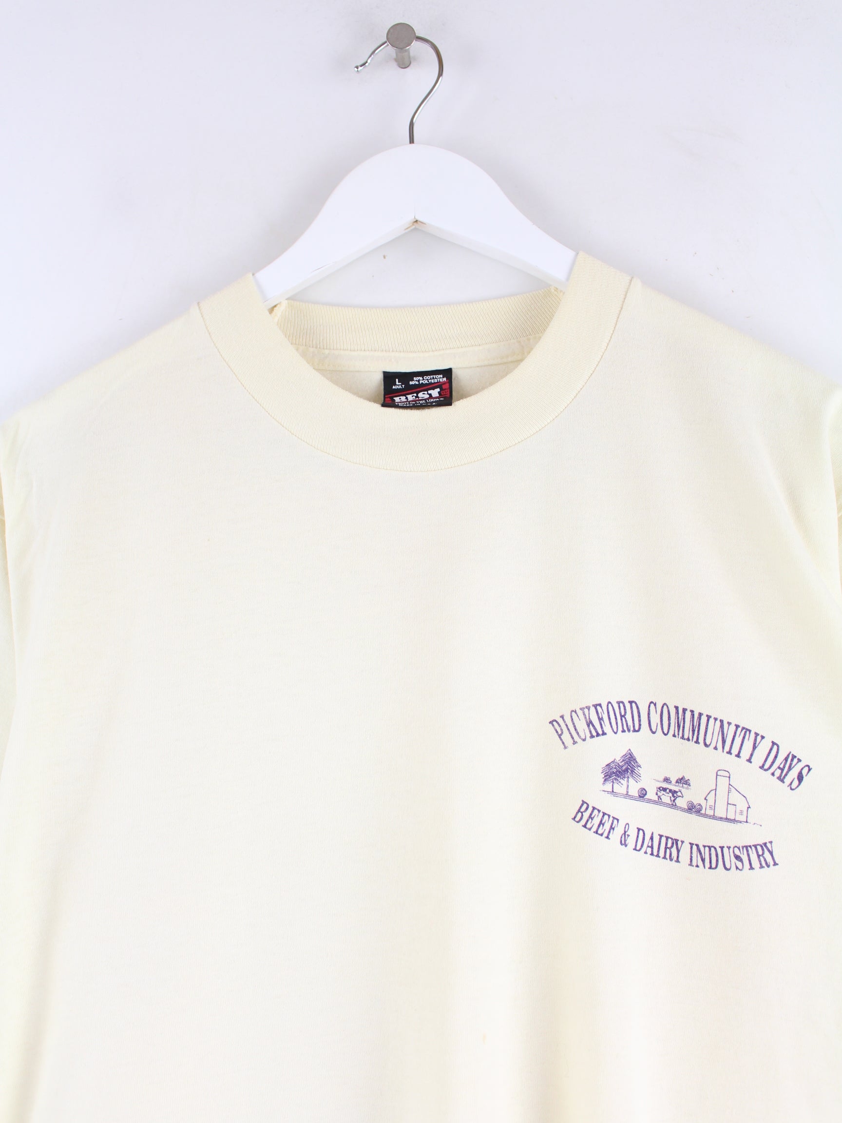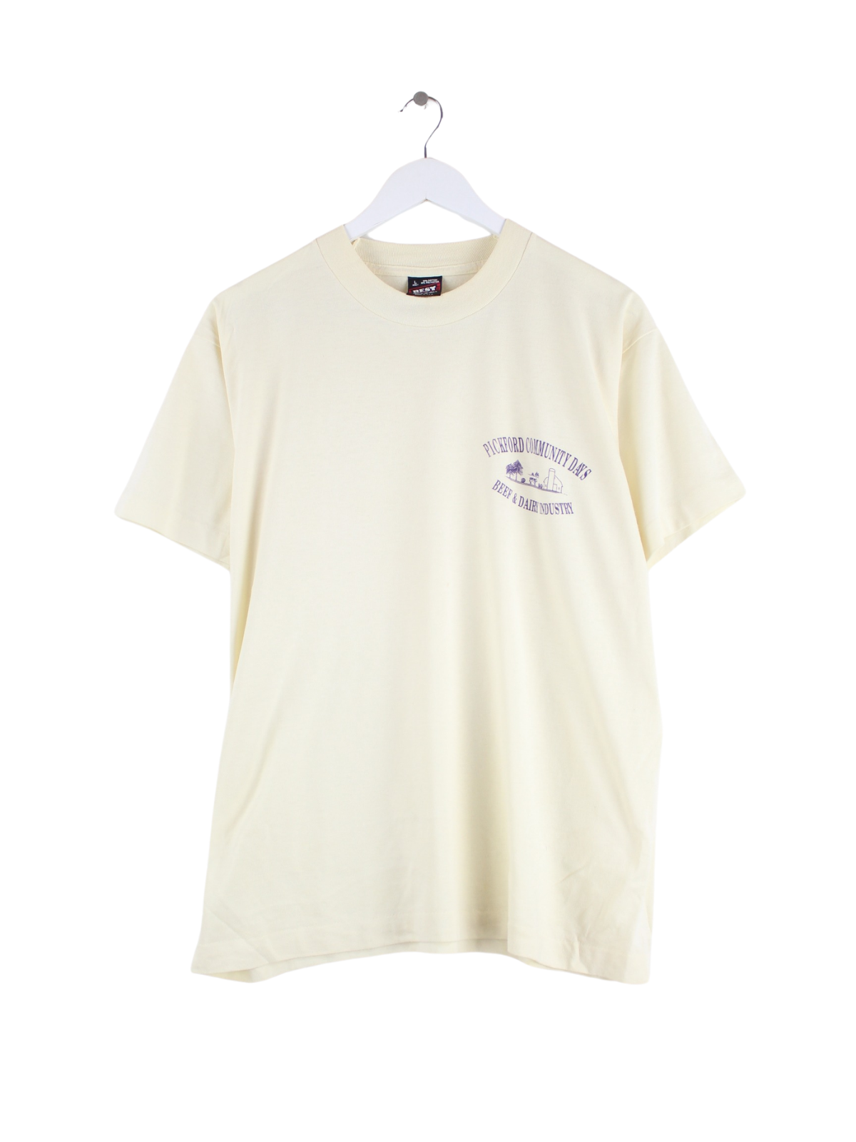 Fruit of the Loom 90s Vintage Farmer Print Single Stitch T-Shirt Gelb L