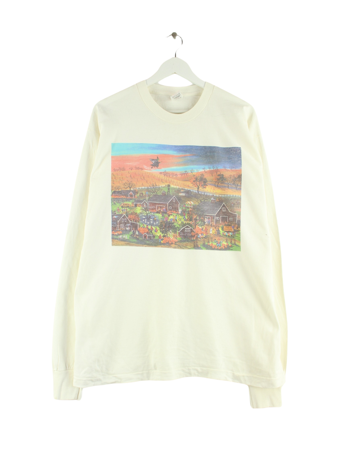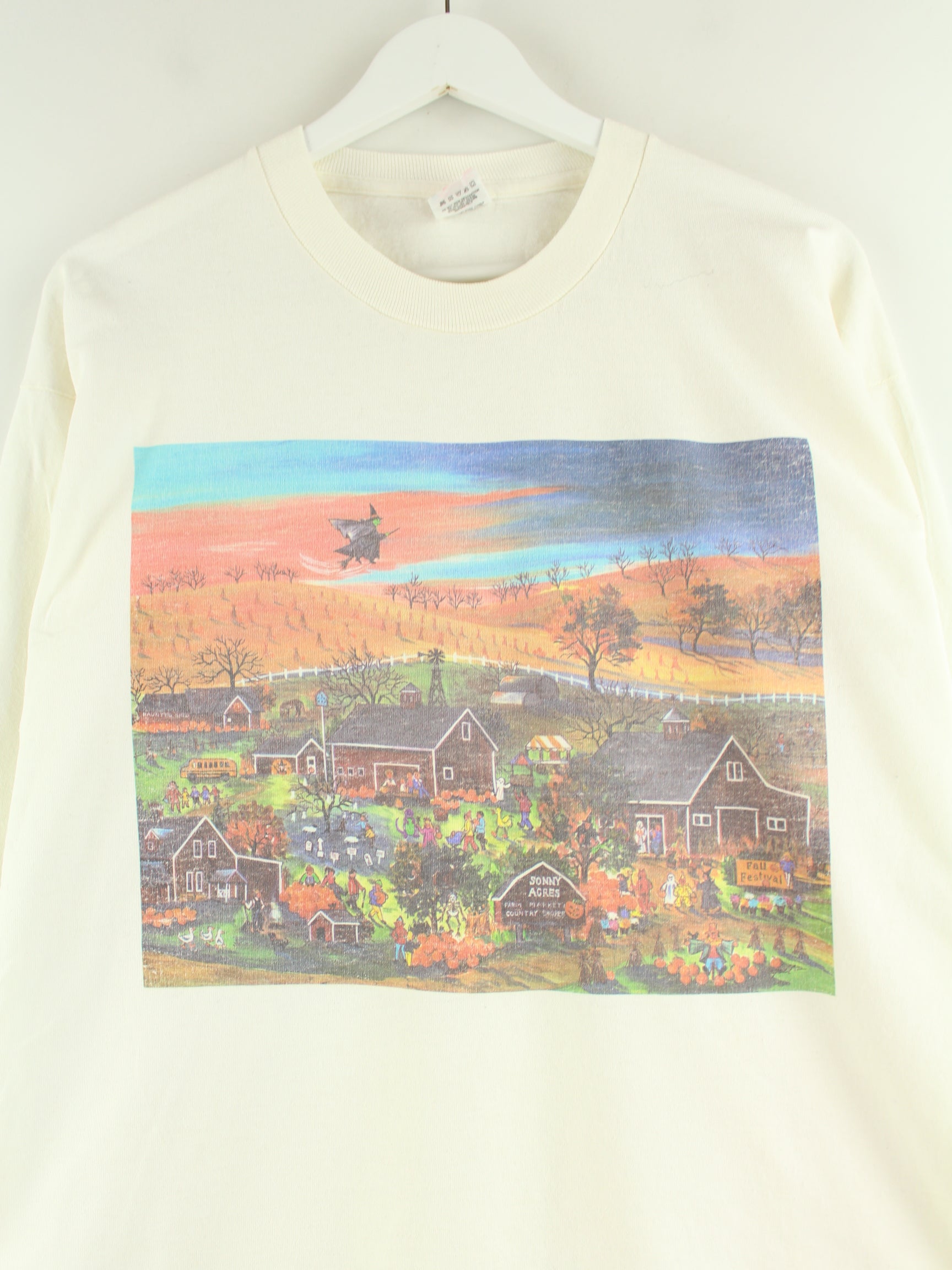 Fruit of the Loom 90s Vintage Halloween Print Single Stitch Sweatshirt Beige XL