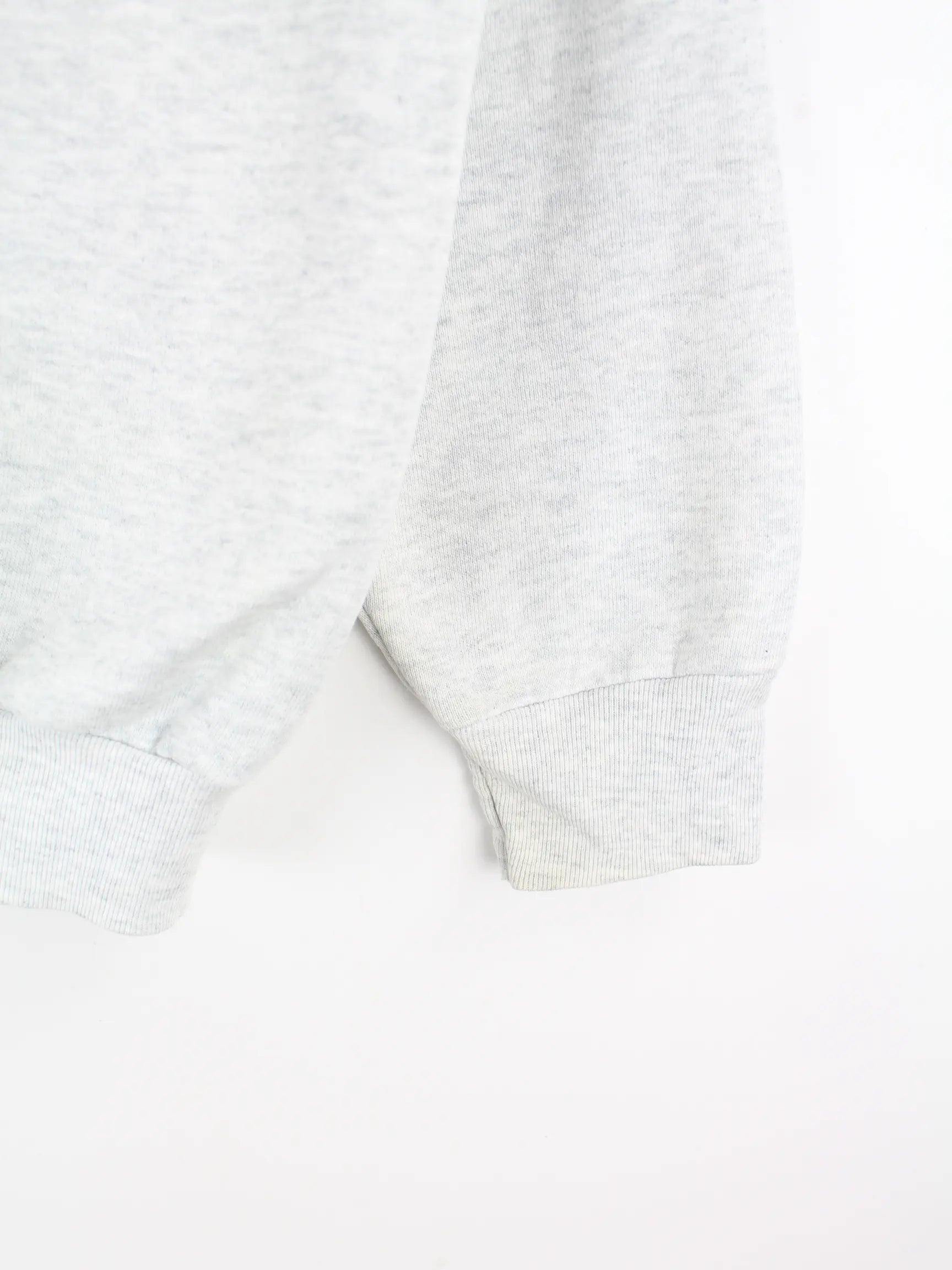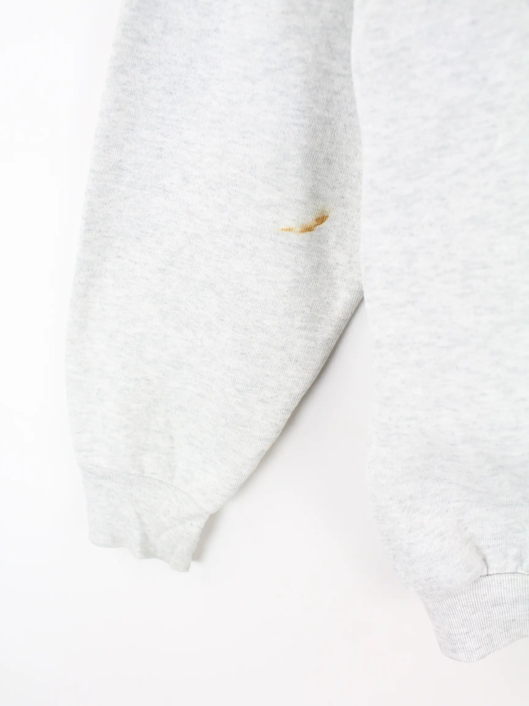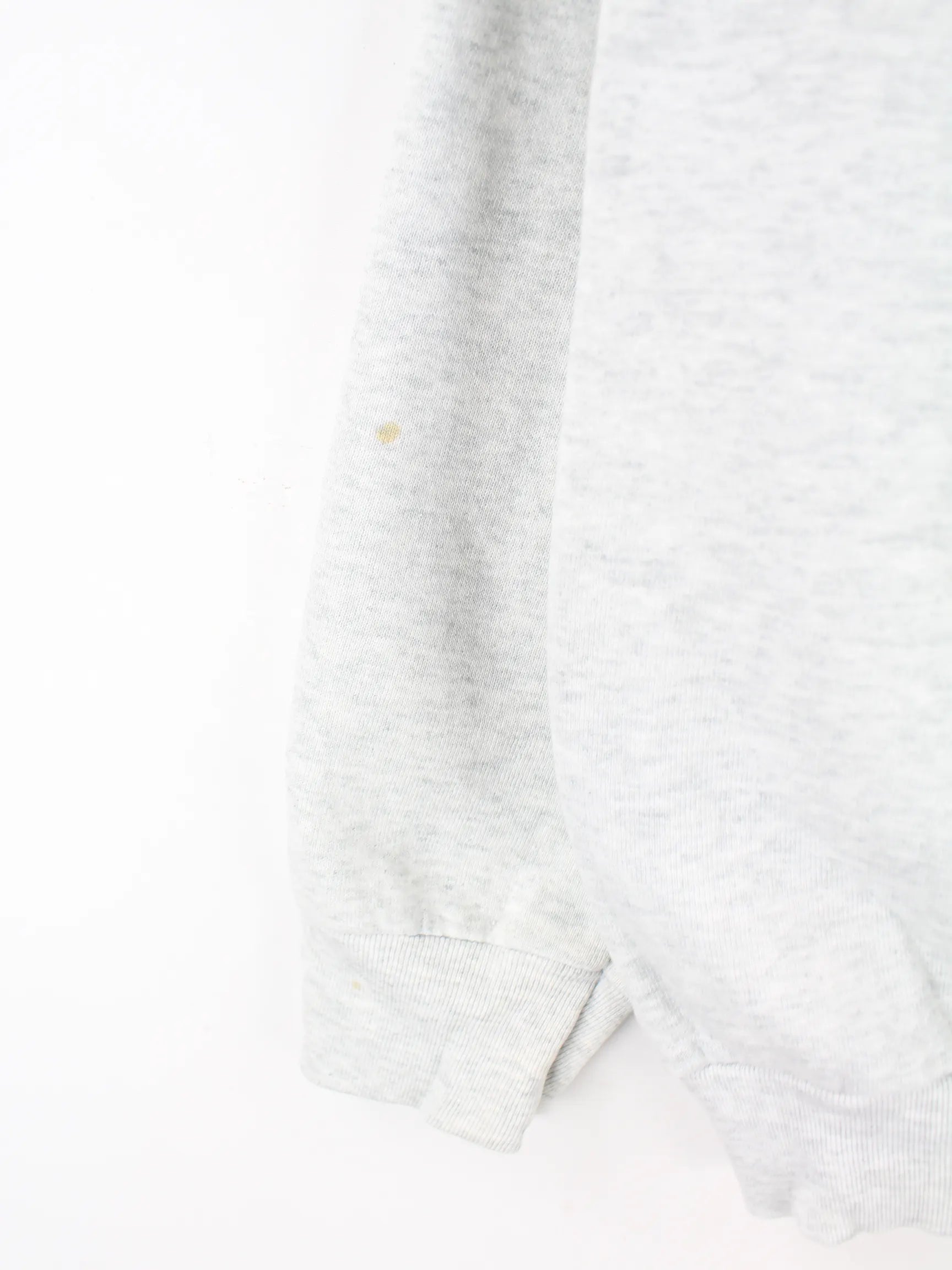 Grauer Sweater vom Brand Fruit of the Loom aus den 90'ern in Größe XL. Er ist aus einer Baumwollmischung hergestellt. Den Zustand würden wir als 'In Ordnung' bezeichnen (vergl. Bilder).Mit tollem Vintage Print.