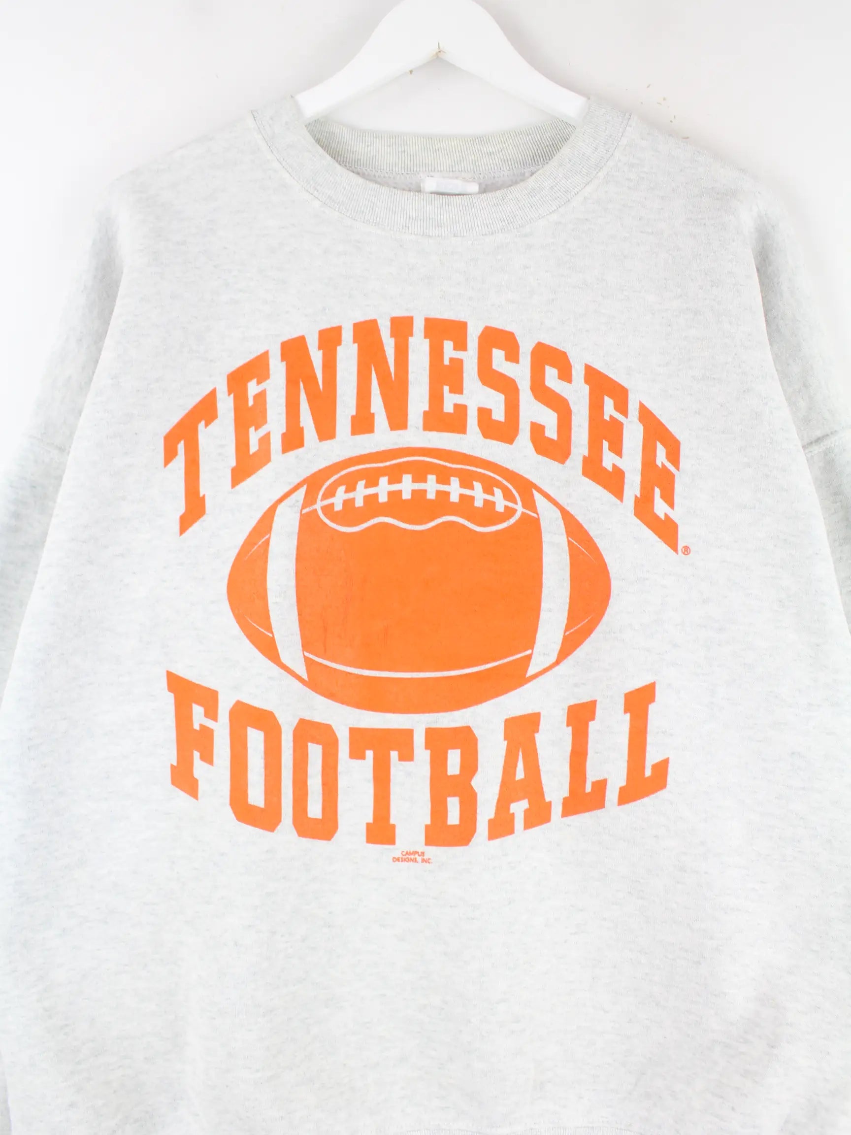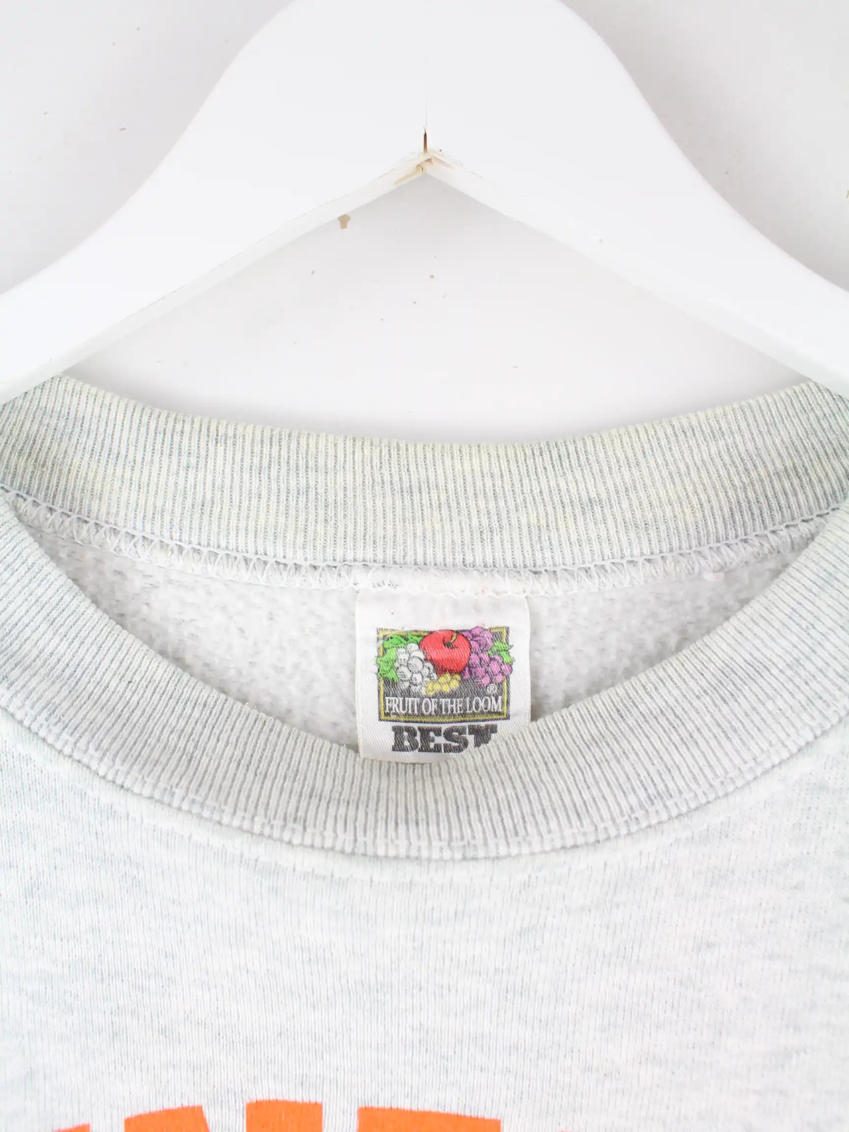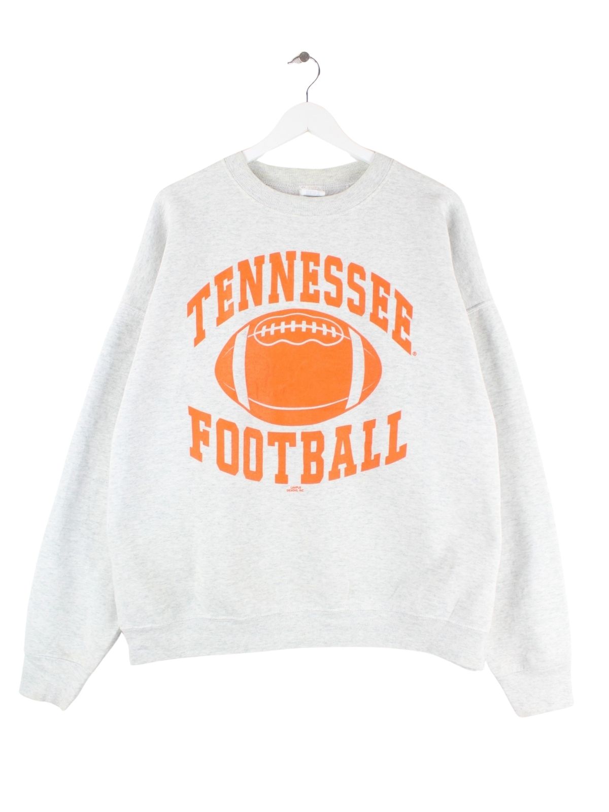 Grauer Sweater vom Brand Fruit of the Loom aus den 90'ern in Größe XXL. Er ist aus einer Baumwollmischung produziert. Den Zustand würden wir als 'In Ordnung' bezeichnen (vergl. Bilder).Mit tollem Tennessee Print.
