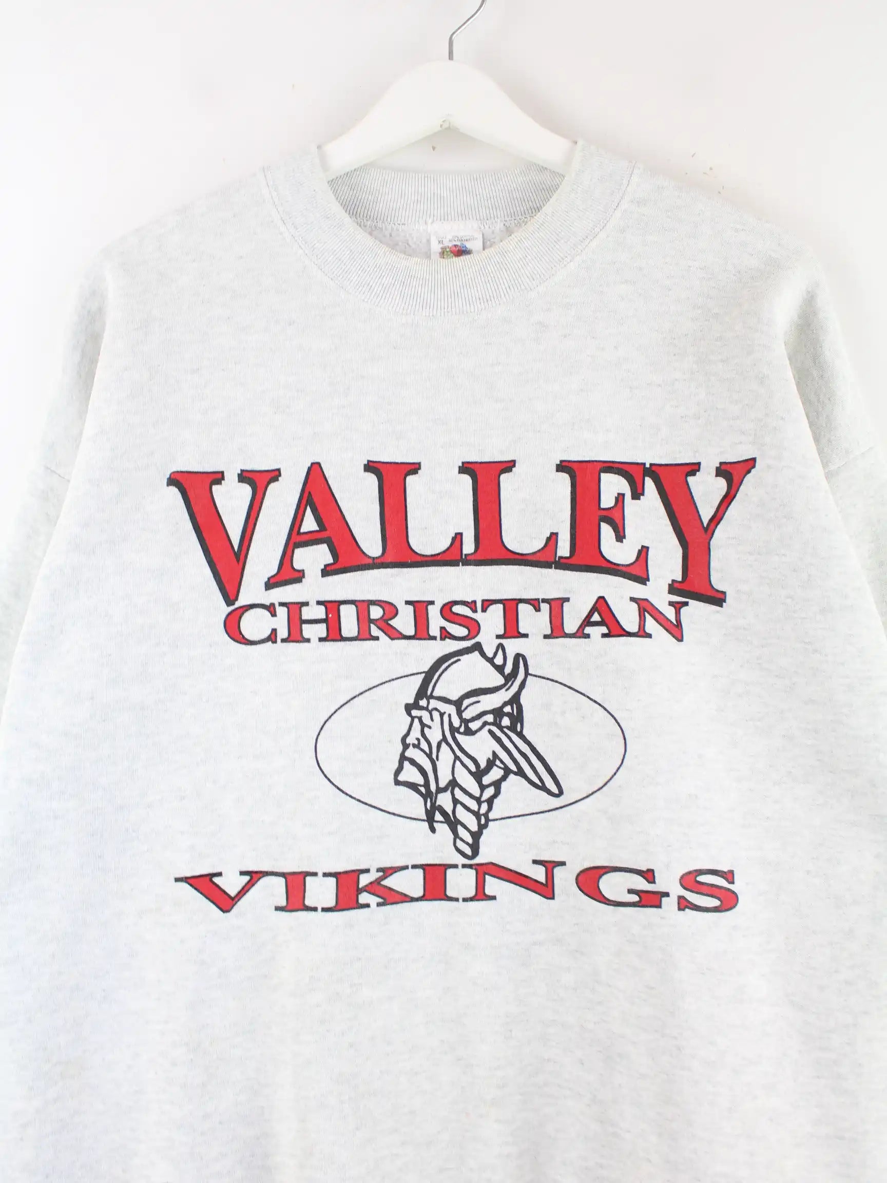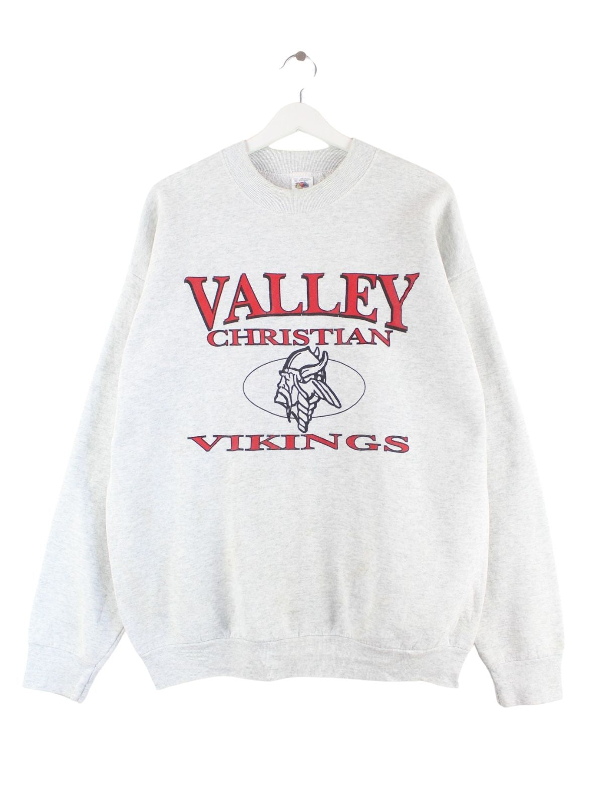 Fruit of the Loom 90s Vintage Valley Vikings Print Sweater Grau XL