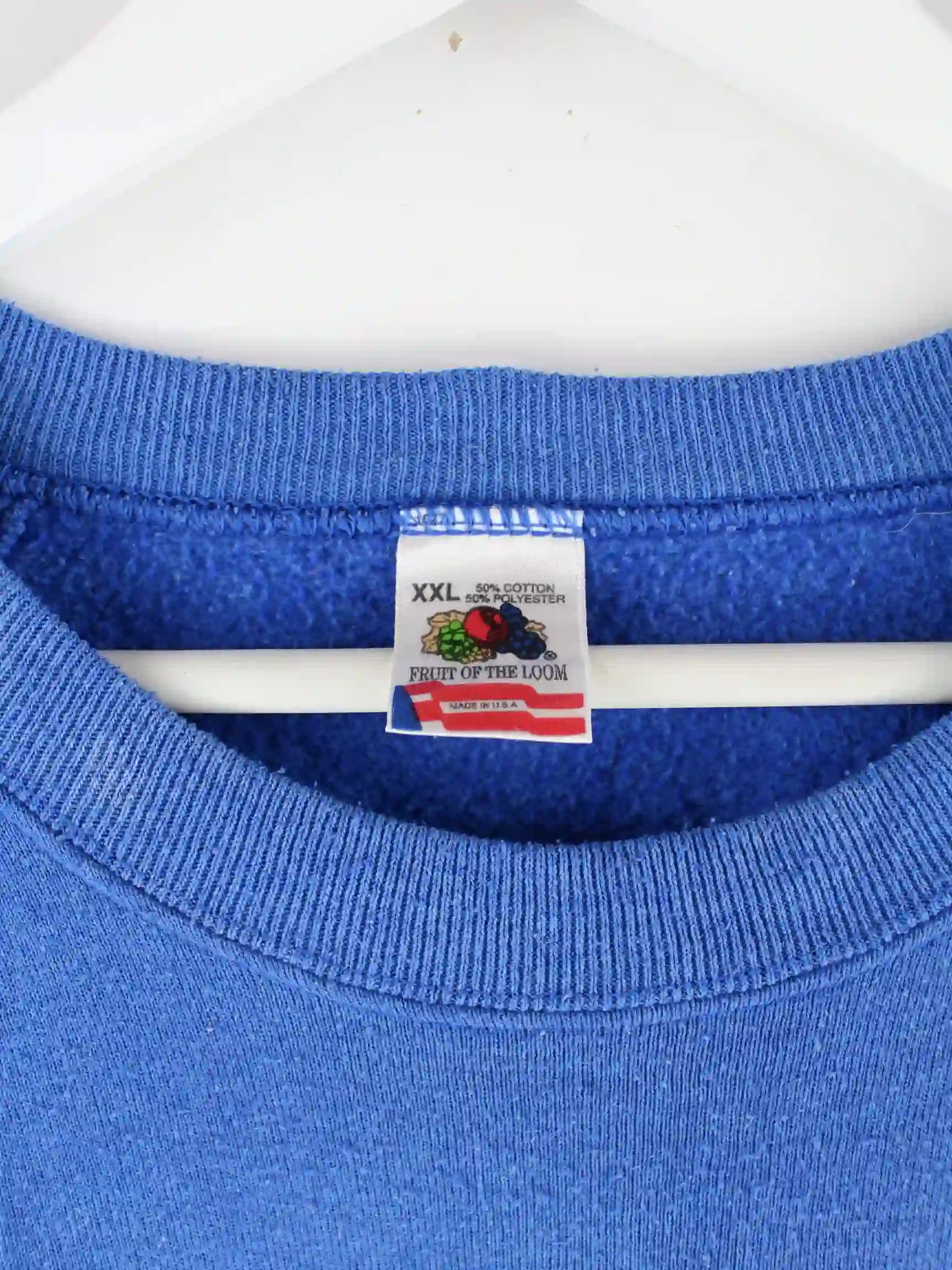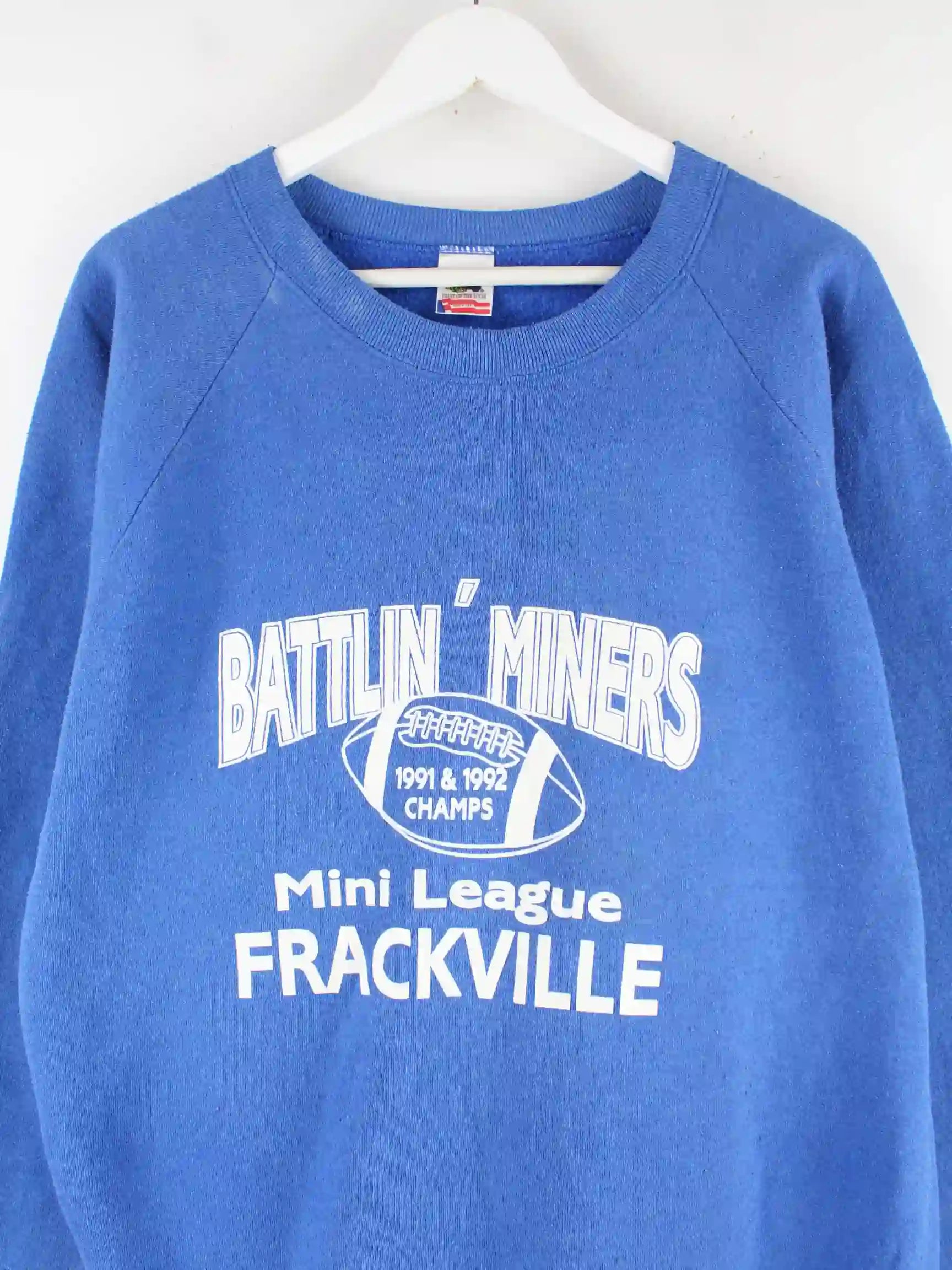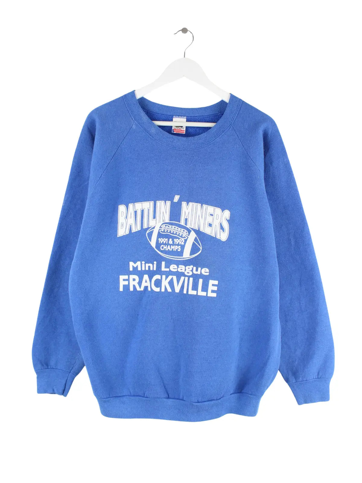 Sweater der Marke Fruit of the Loom in Größe XXL. Er ist aus einer Baumwollmischung angefertigt und in Blau im Angebot. Mit seltenem Football Print.