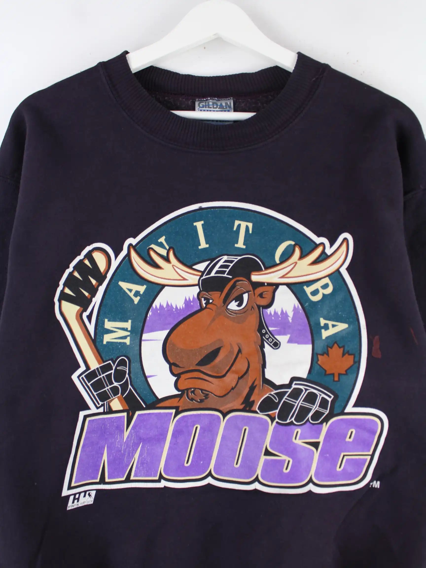 Gildan 90s Vintage Manitoba Moose Print Sweater Blau M