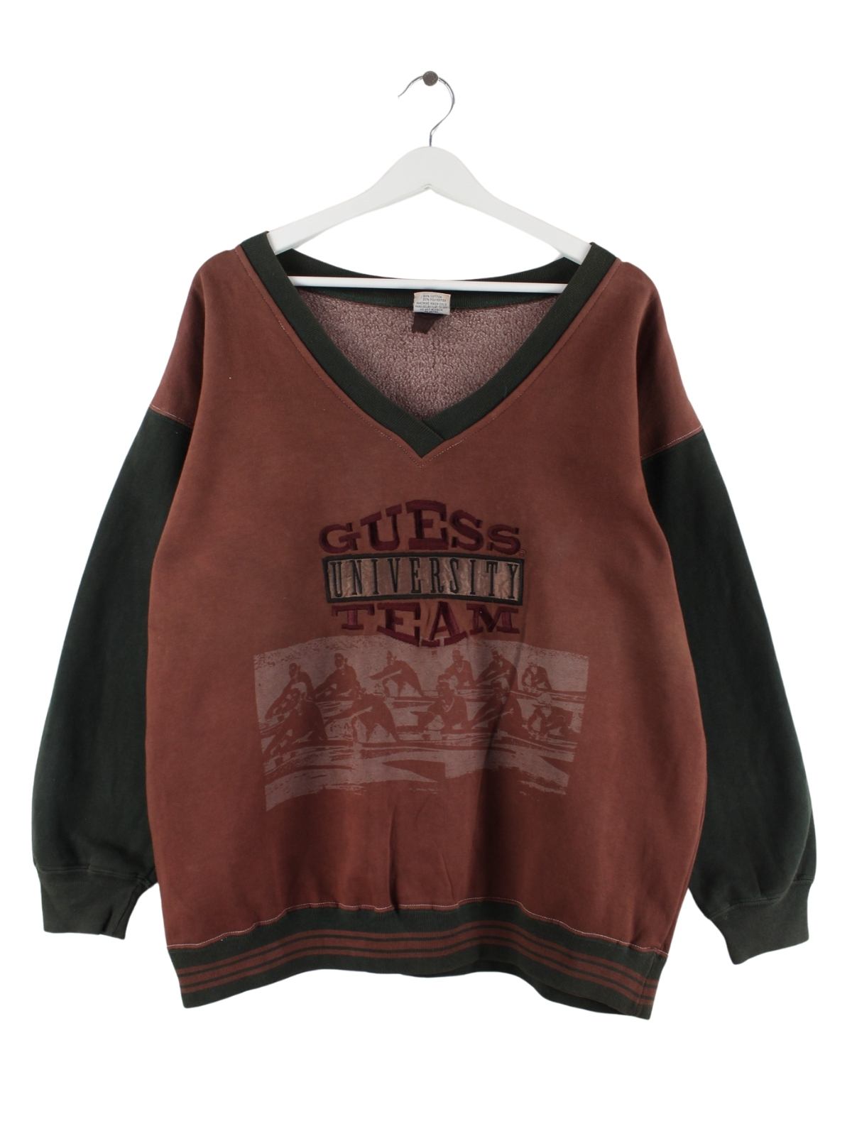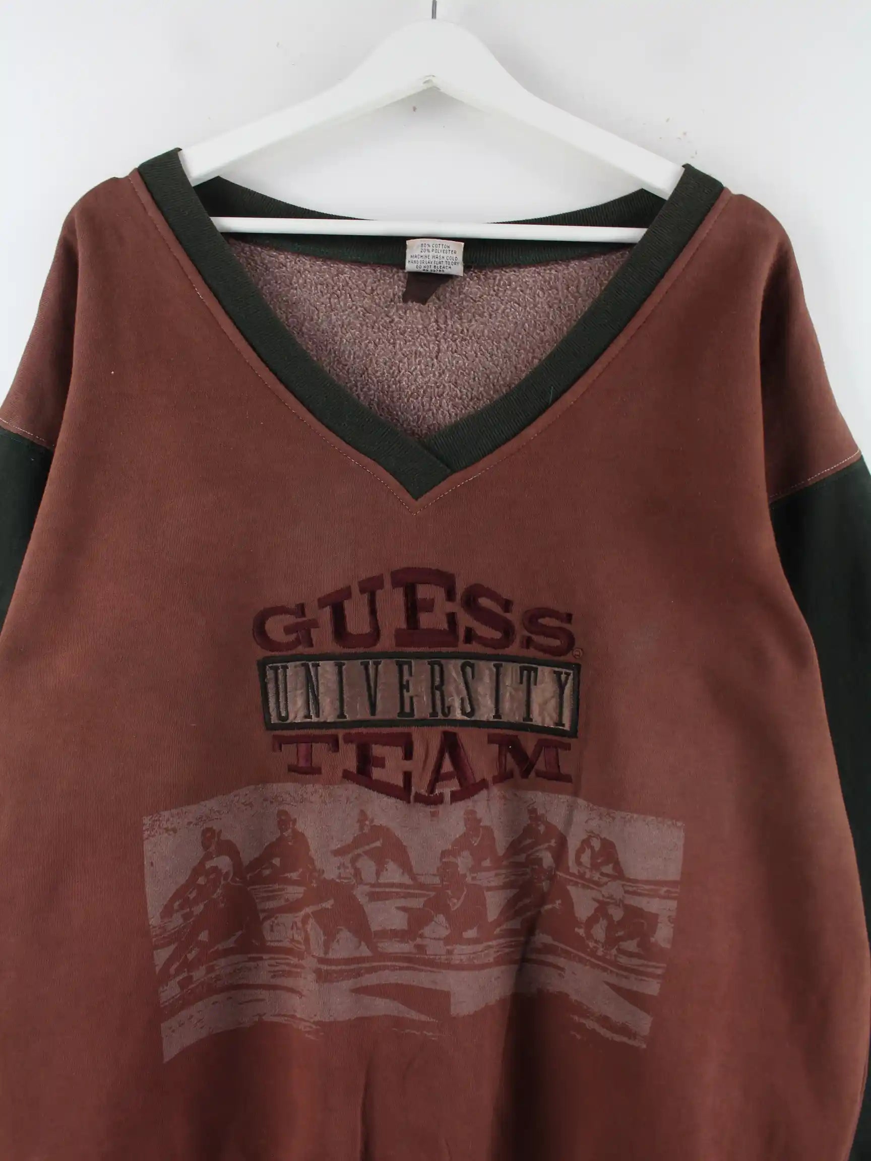 Guess 80s Vintage Embroidered V-Neck Sweater Braun M