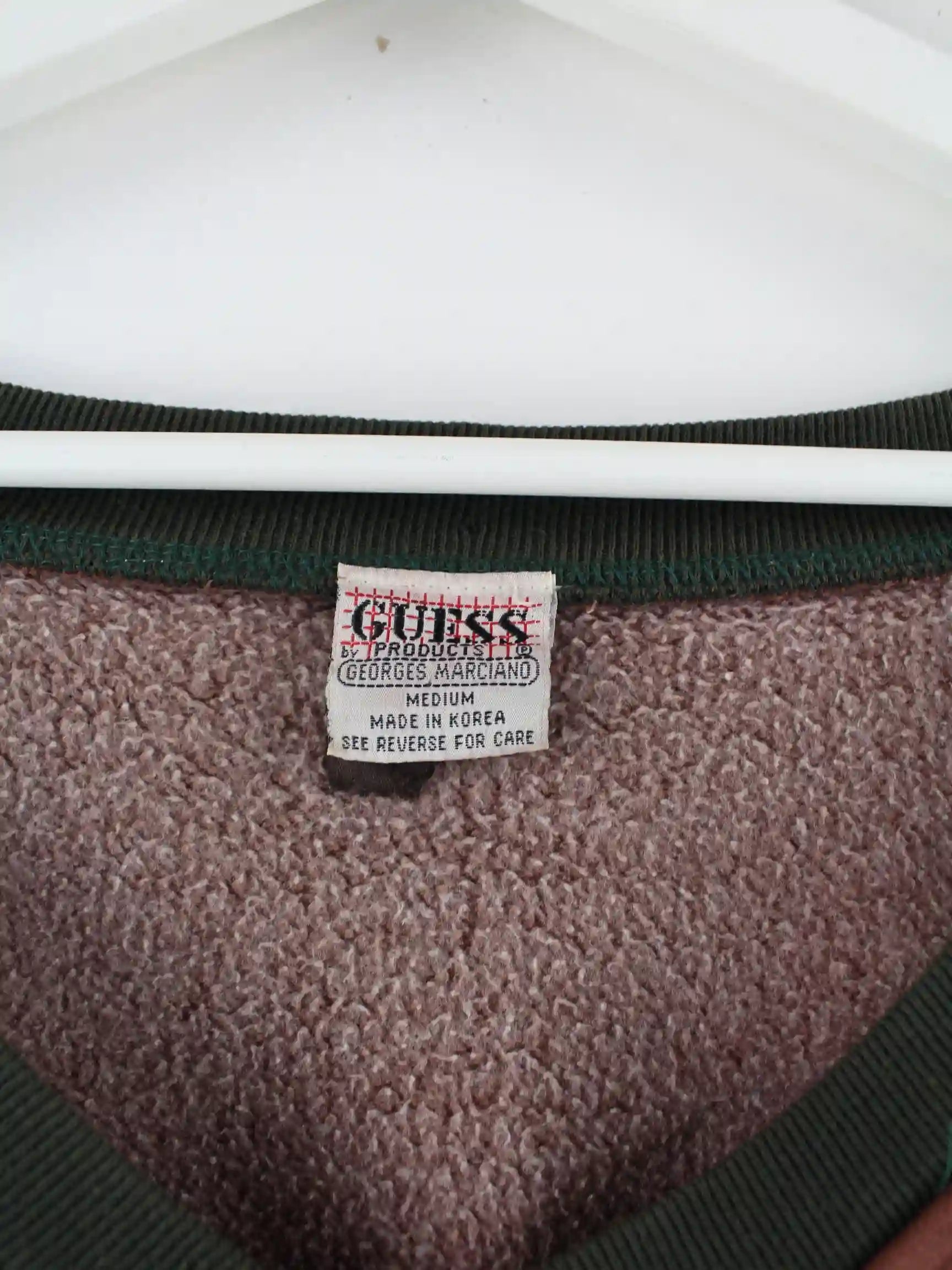 Brauner Sweater mit Stickereien der Brand Guess aus den 80'ern in Größe M. Er ist aus einer Baumwollmischung gefertigt und in gutem Zustand in Stock.