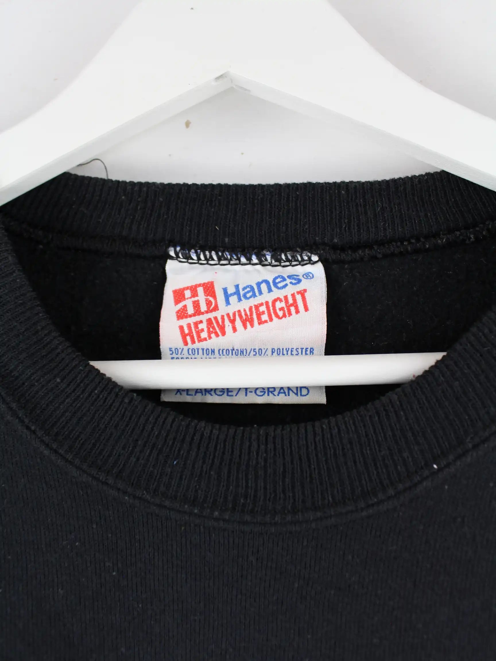 Schwarzer Sweater des Labels Hanes in Größe XL. Er ist aus einer Baumwollmischung gefertigt und in gutem Zustand im Bestand.