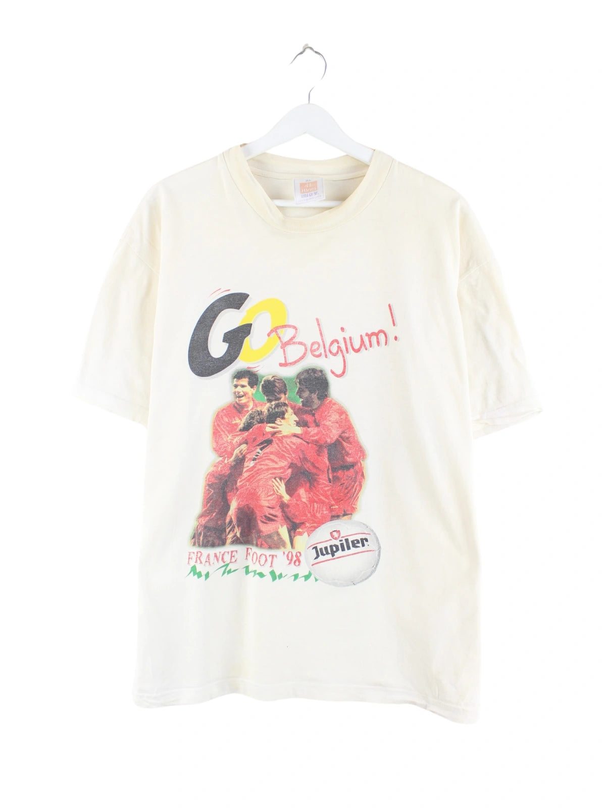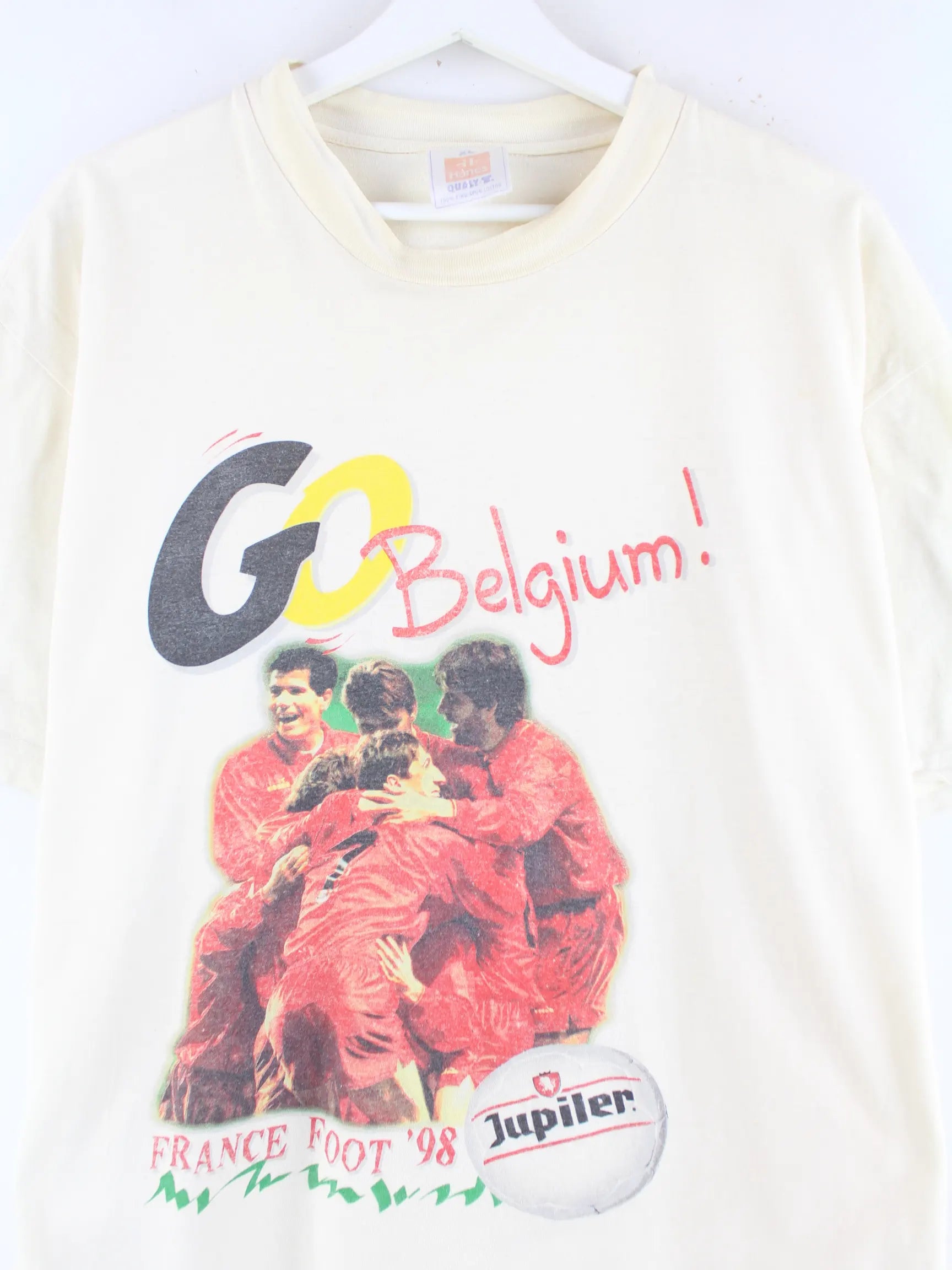 T-Shirt von Hanes in Größe XL. Es ist aus Baumwolle und in Beige bei uns vorrätig. Mit tollem Belgium Print.