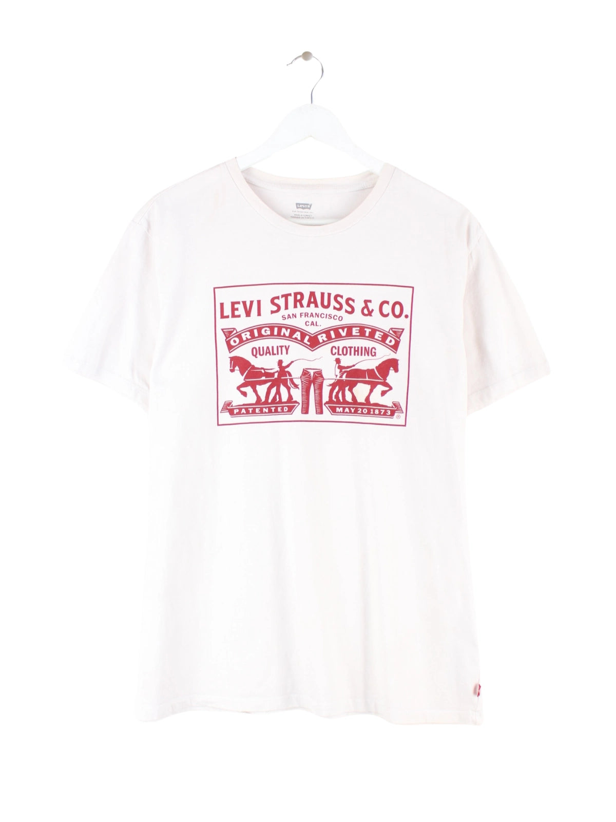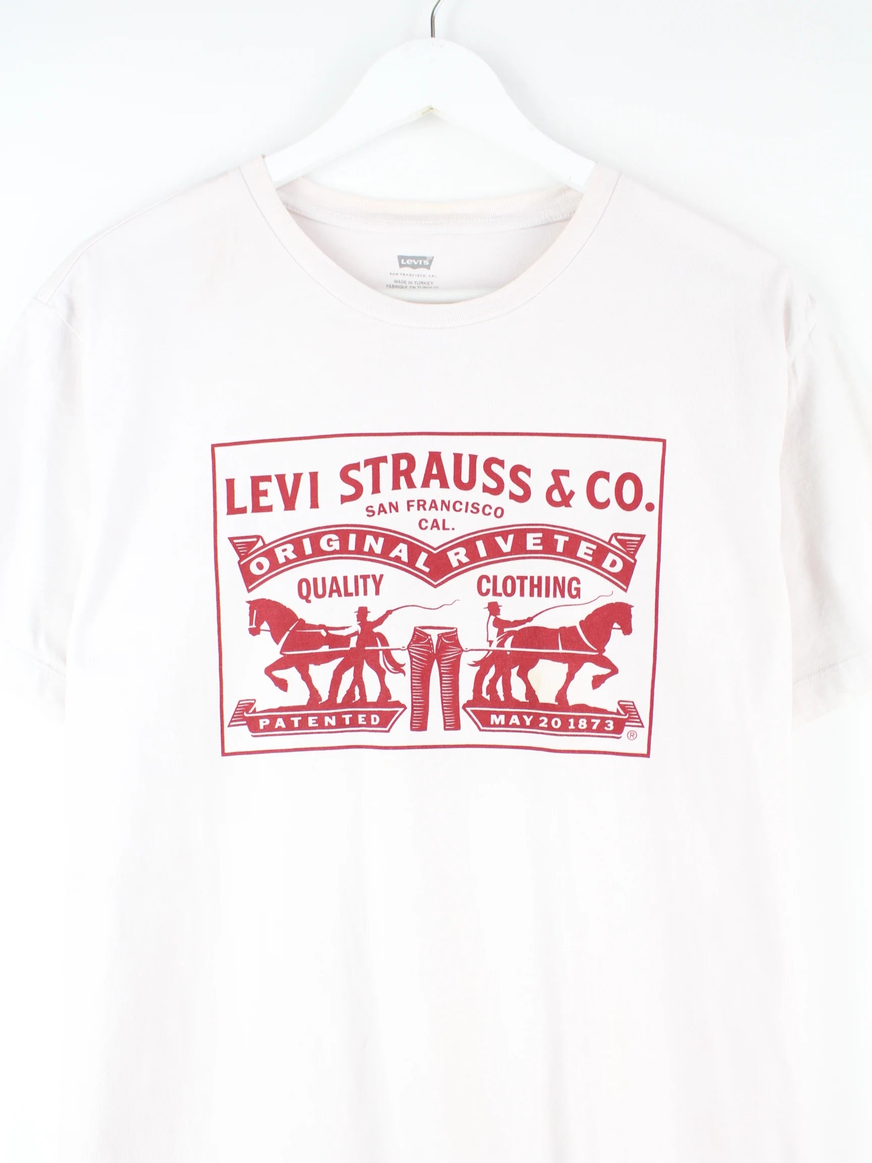Weißes T-Shirt aus dem Hause Levi's in Größe XL. Es ist aus Baumwolle angefertigt und in gutem Zustand im Angebot. Mit schickem Print.