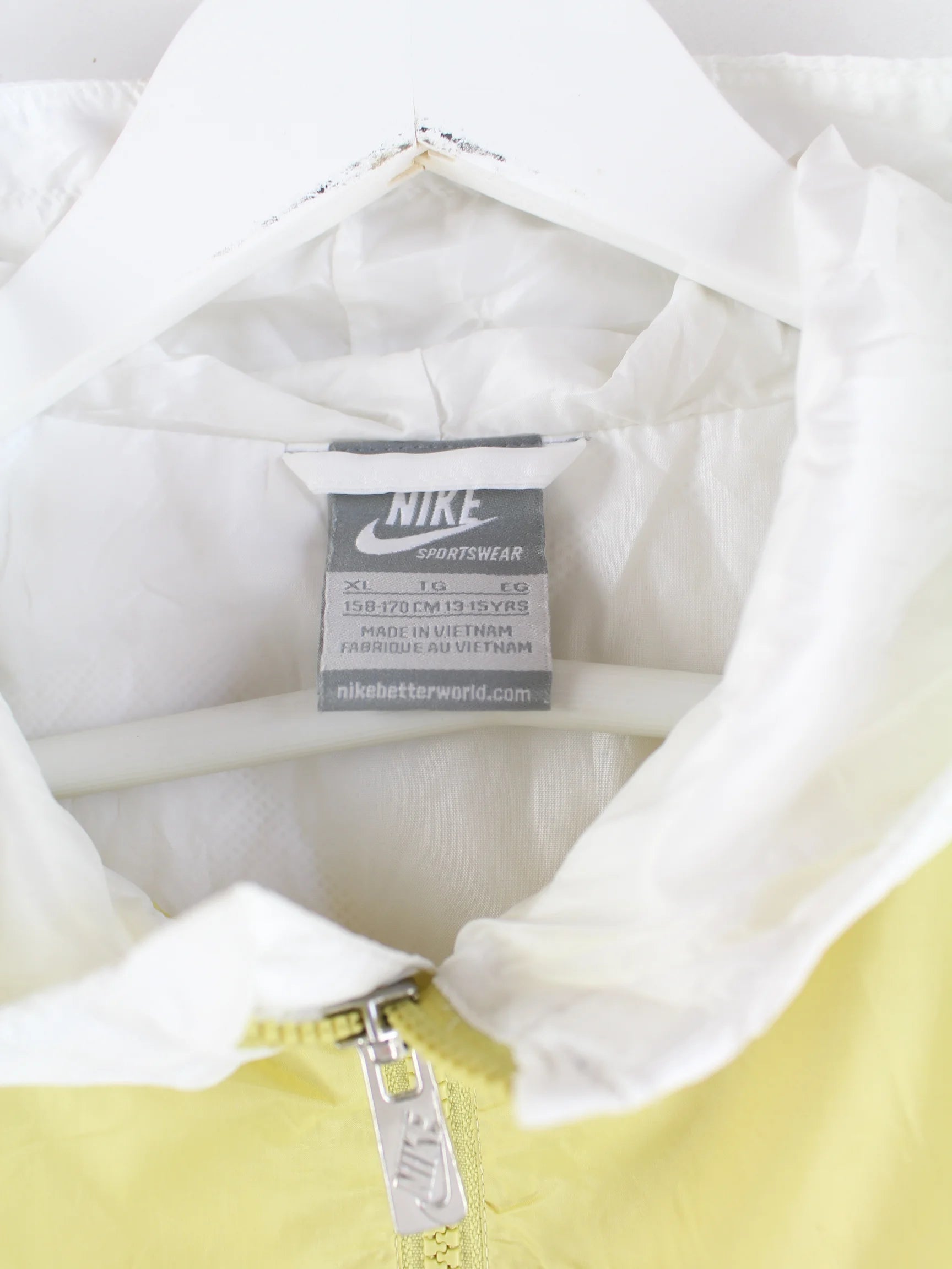 Weiße Leichte Jacke aus dem Hause Nike in Größe XL. Sie ist aus Synthetik angefertigt. Den Zustand würden wir als 'In Ordnung' bezeichnen (vergl. Bilder).