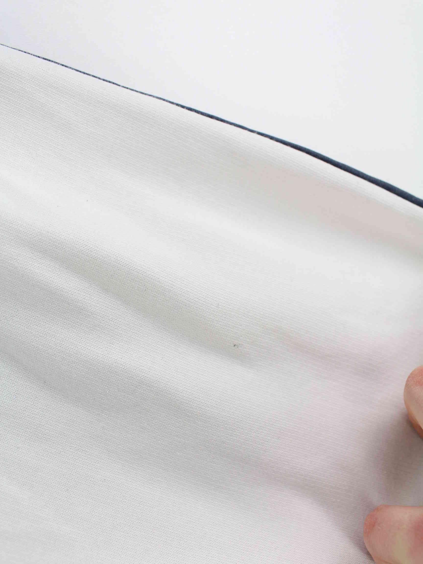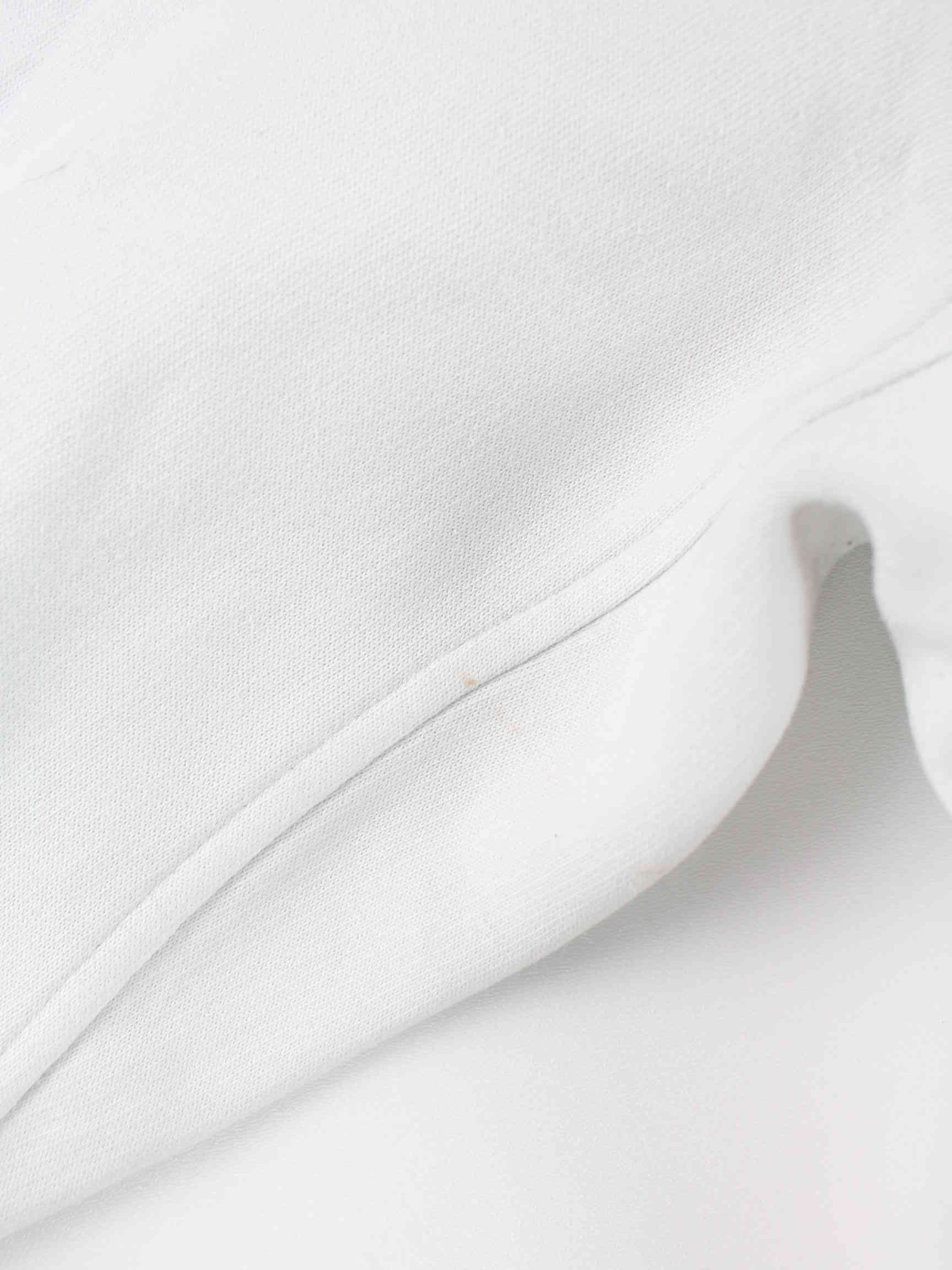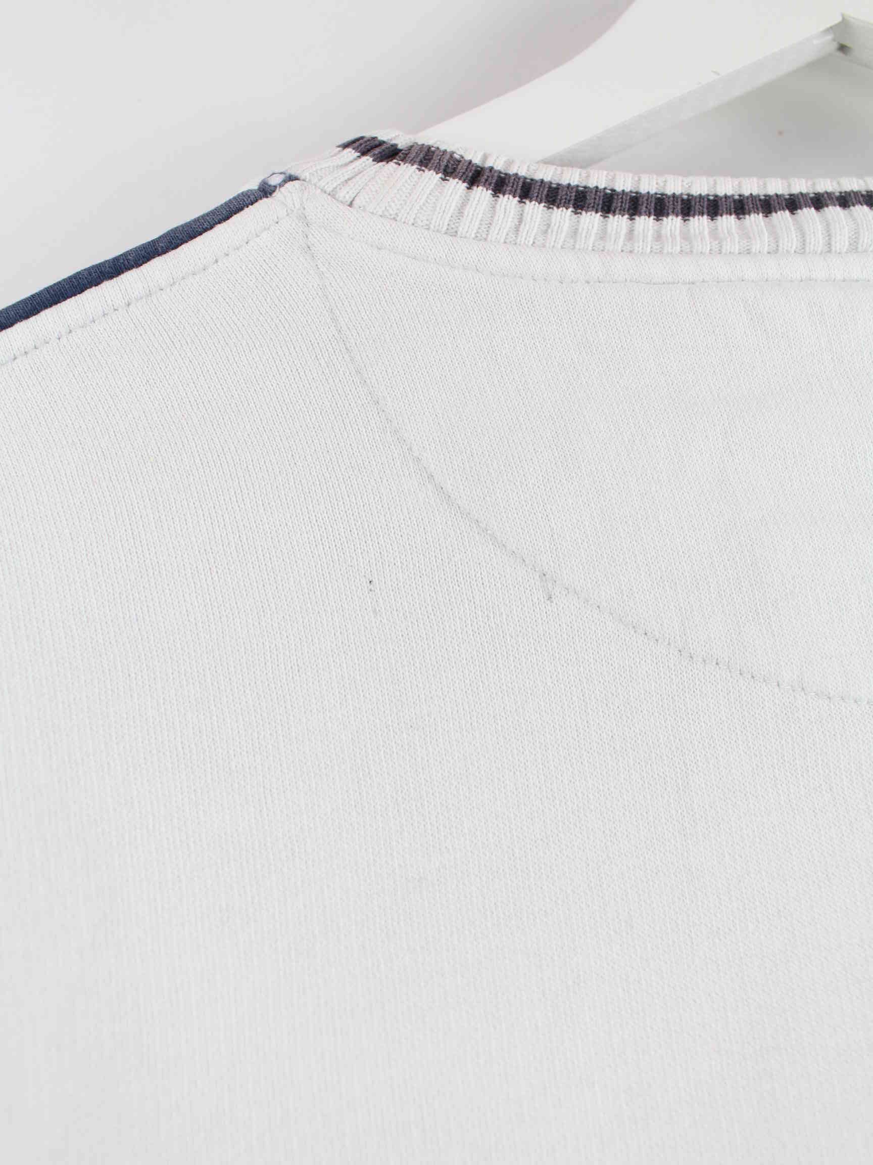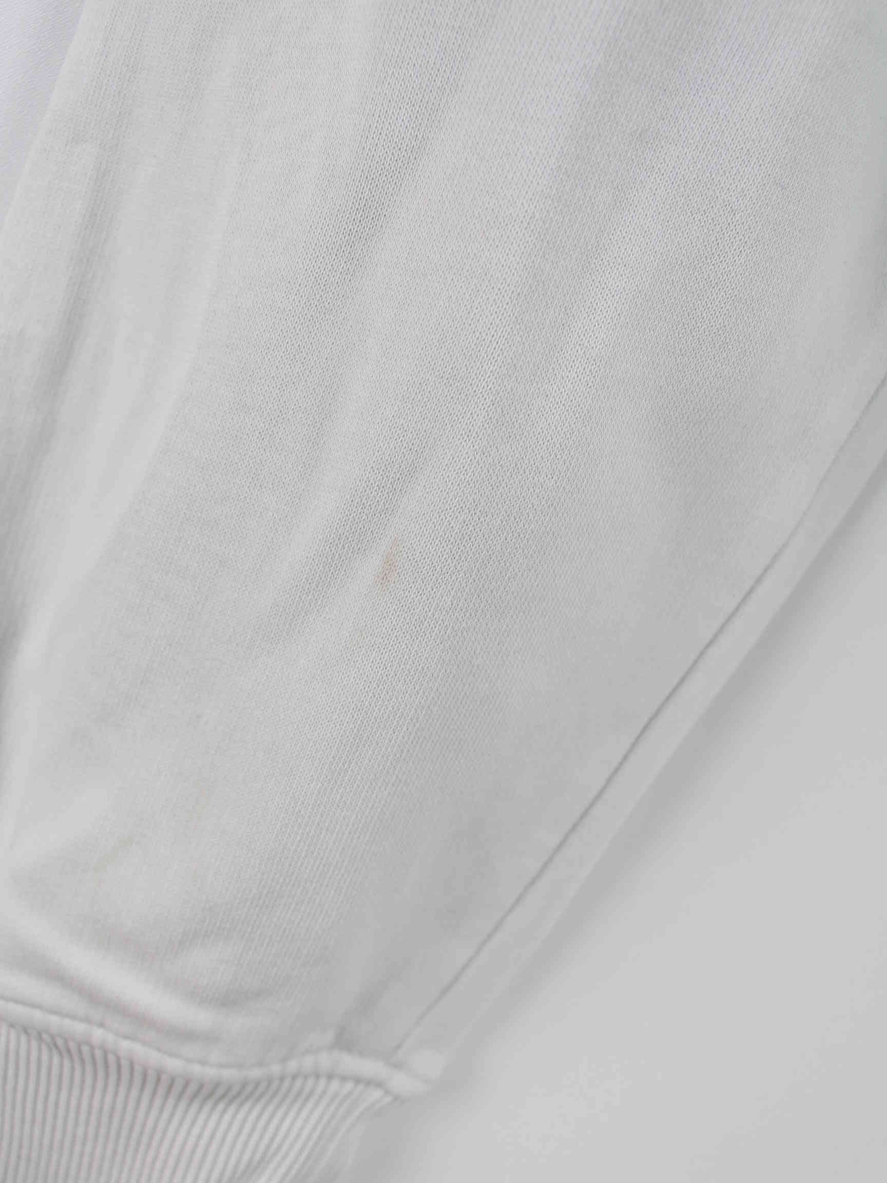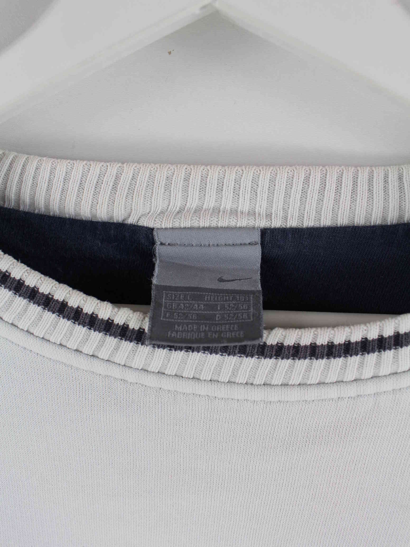 Sweater aus dem Hause Nike in Größe L aus Anfang der 2000'er. Er ist aus einer Baumwollmischung produziert und in Weiß im Angebot.