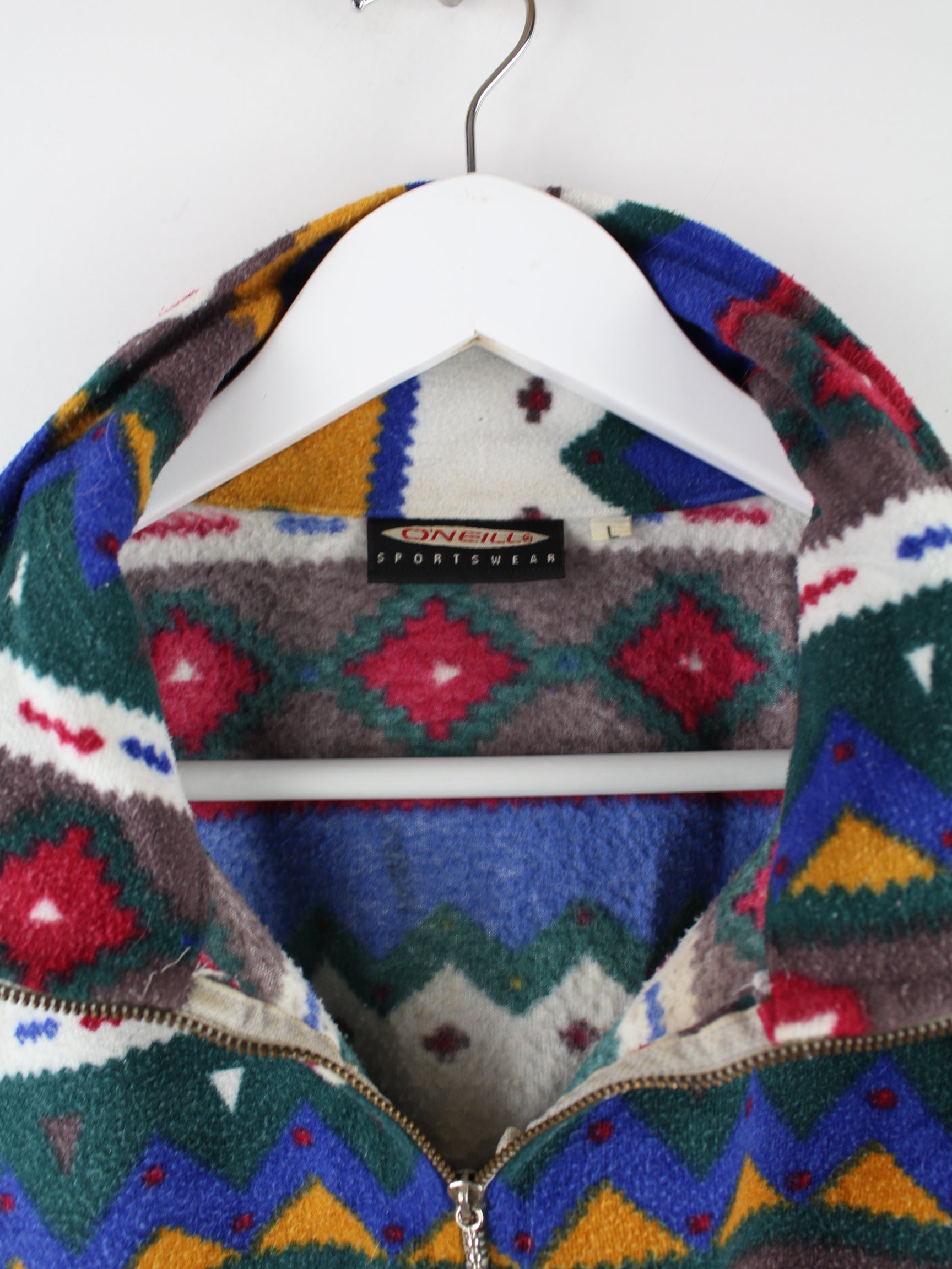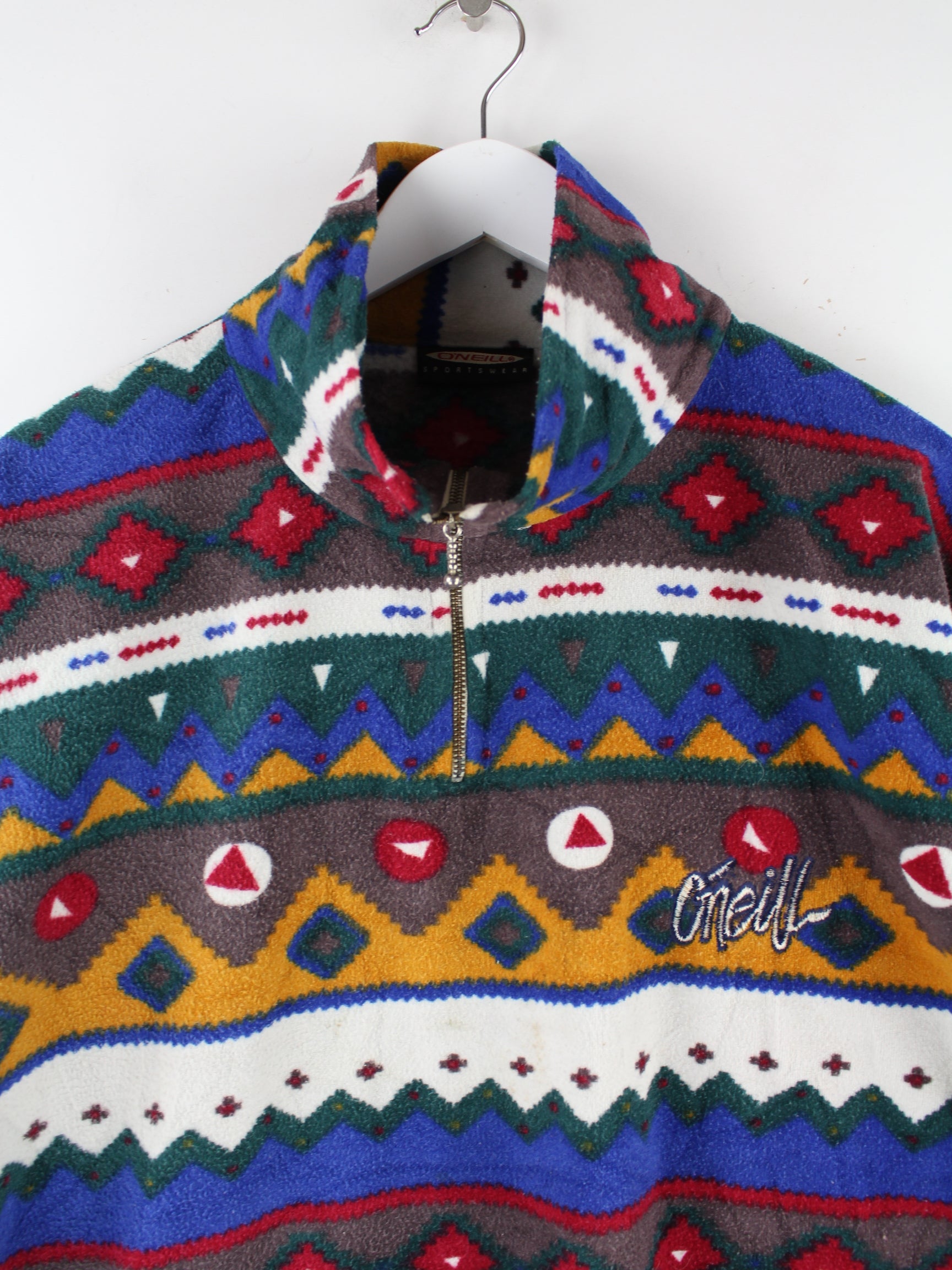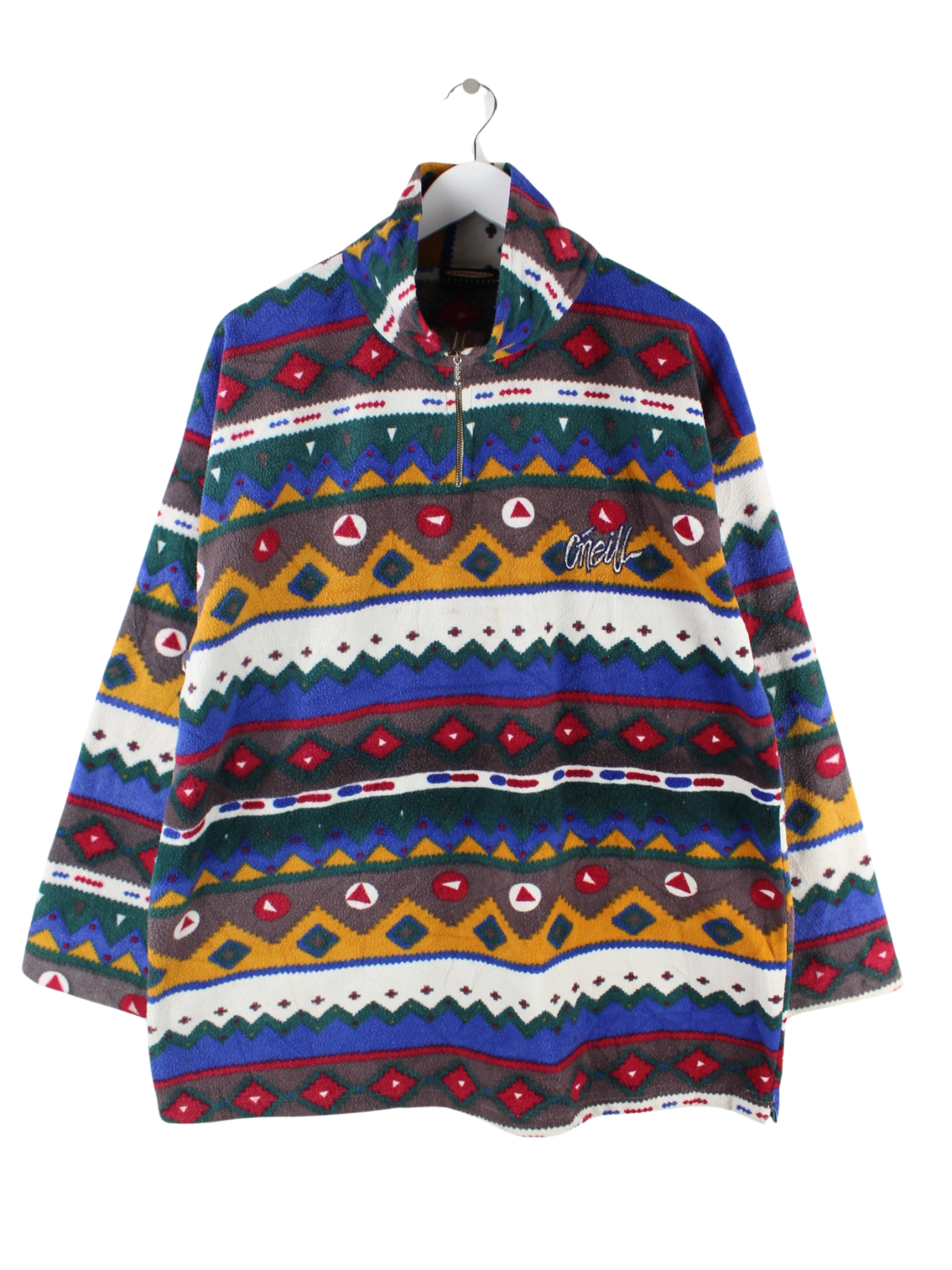 Mehrfarbiger Sweater vom Brand O'Neill aus den 80'ern in Größe L. Er ist aus kuscheligem Fleece . Den Zustand würden wir als 'In Ordnung' bezeichnen (vergl. Bilder).