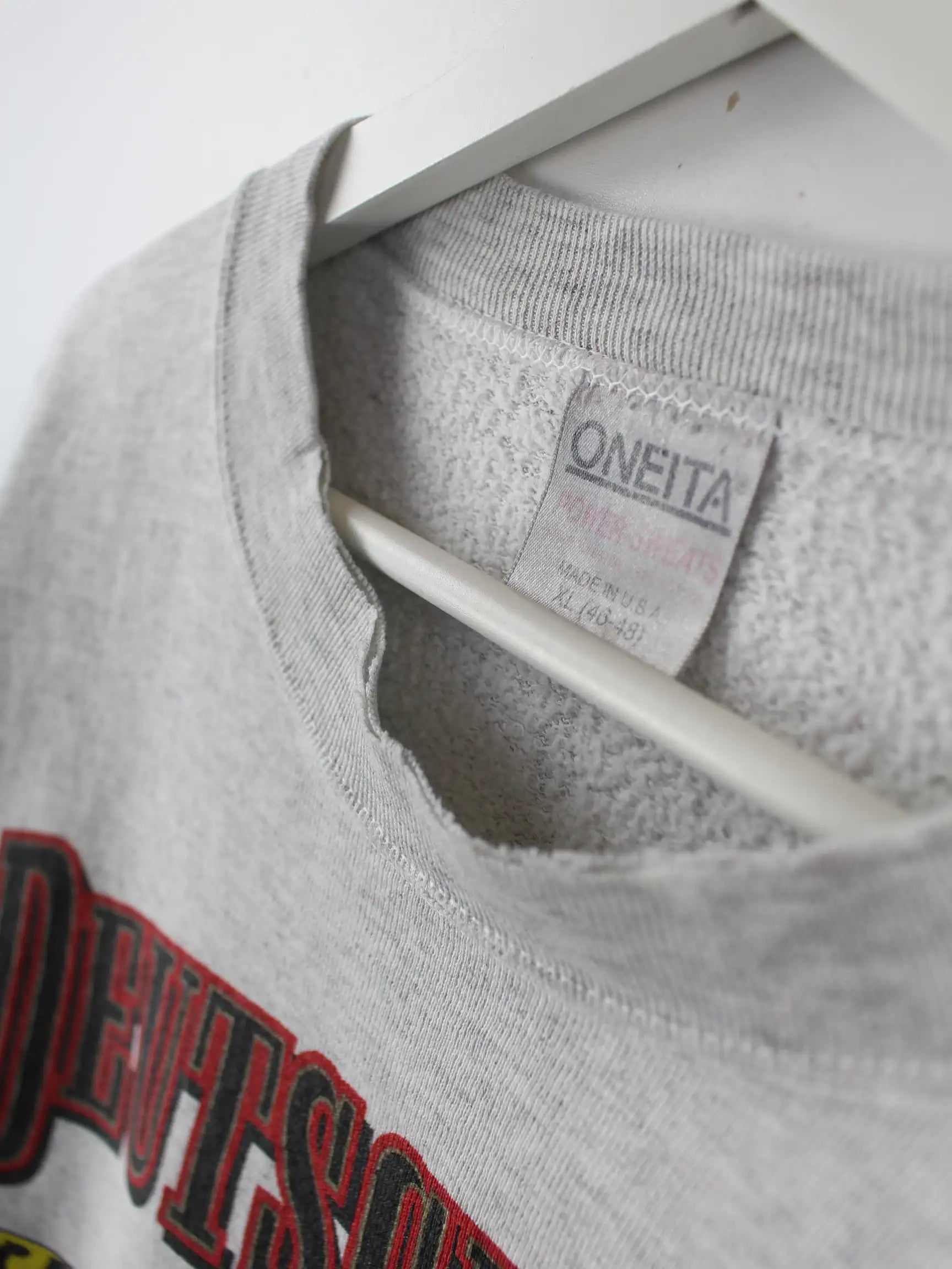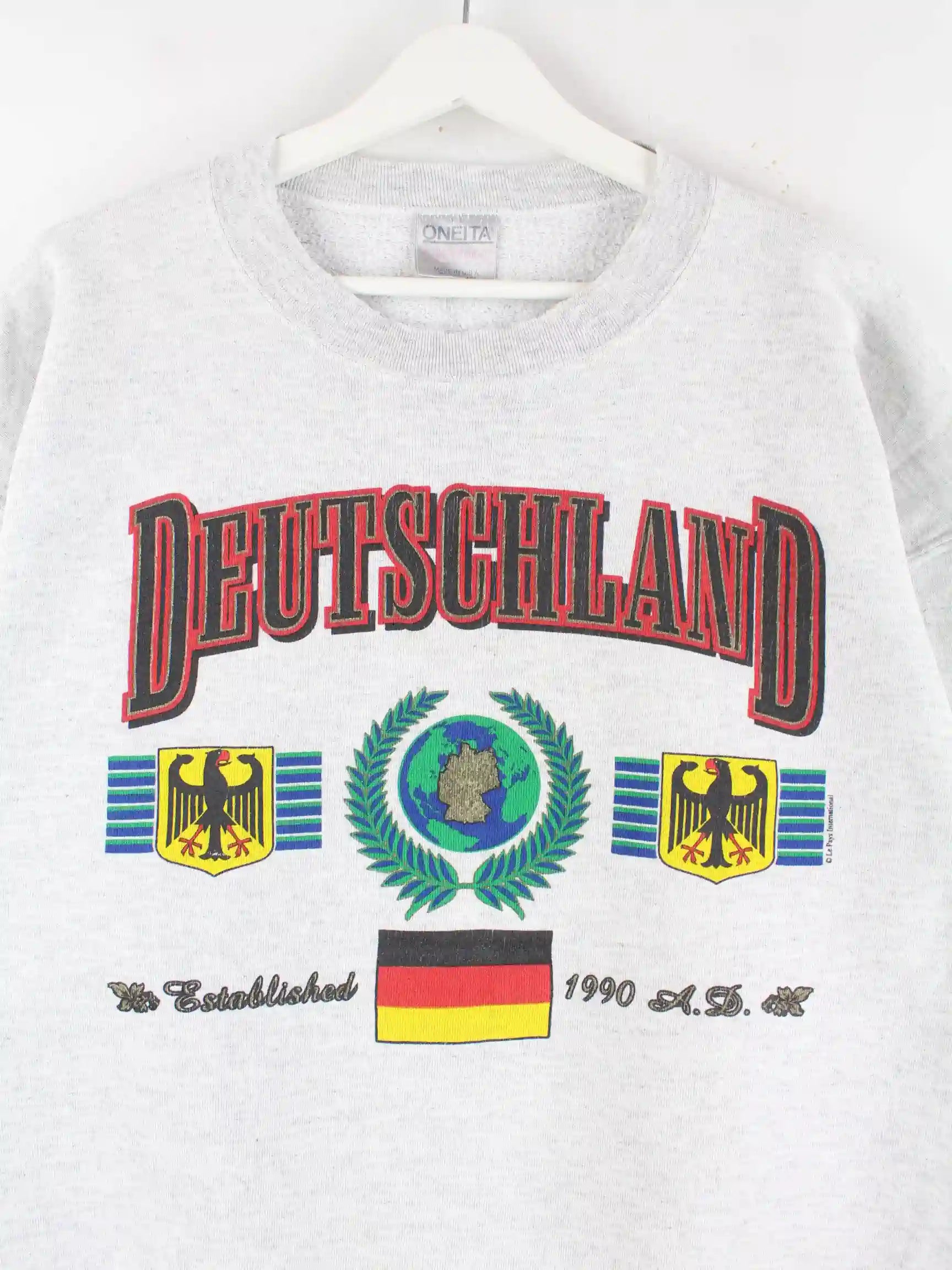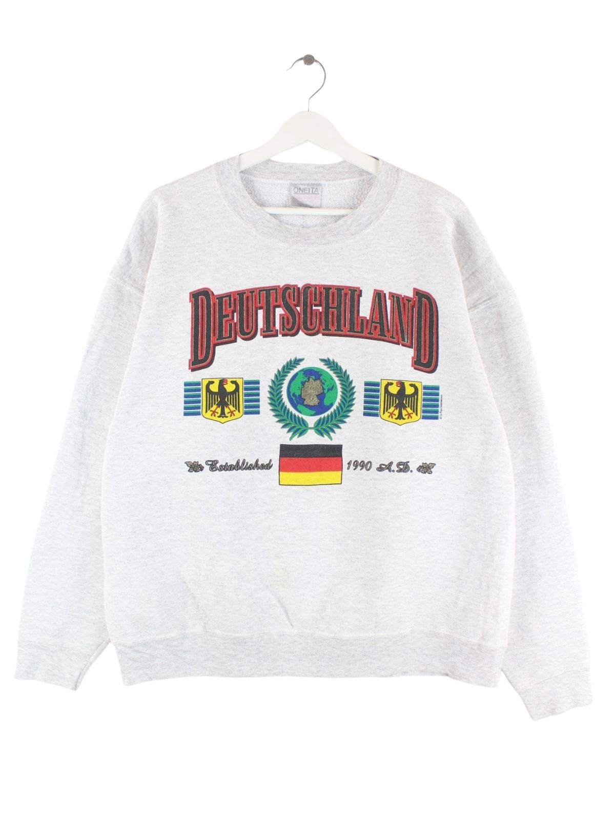 Oneita 1990 Vintage Deutschland Print Sweater Grau XL