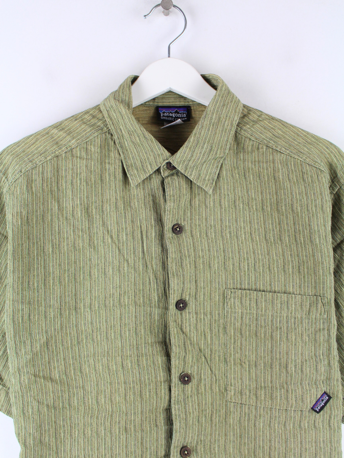 Grünes Freizeit Hemd der Brand Patagonia aus den 90'ern in Größe S. Es ist aus Baumwolle gemacht und in sehr gutem Zustand auf Lager.