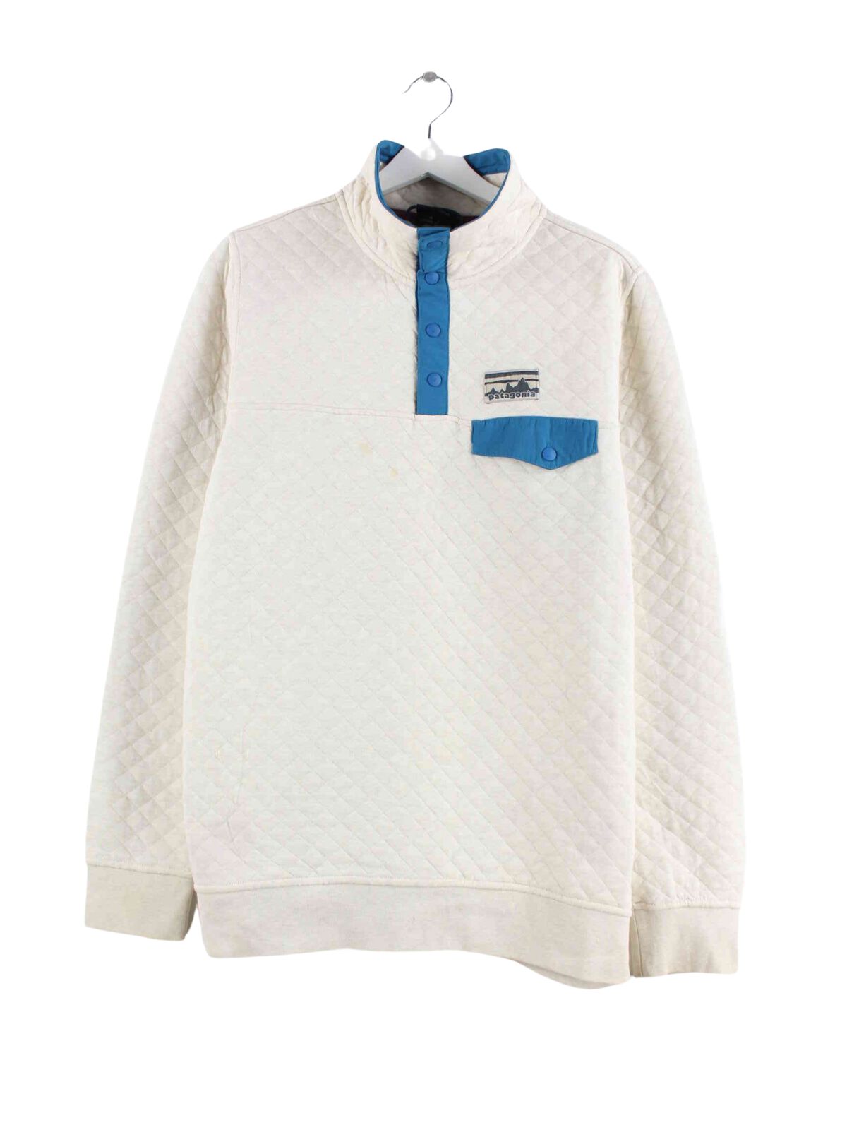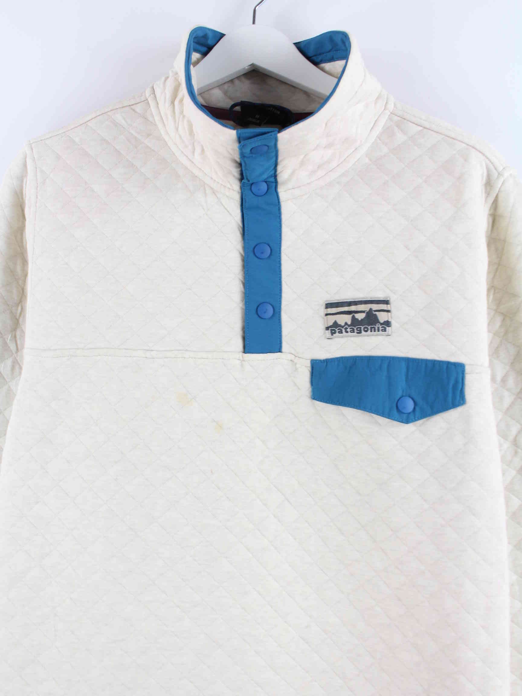Sweater der Marke Patagonia in Größe M. Er ist aus einer Baumwollmischung angefertigt und in Beige vorrätig.