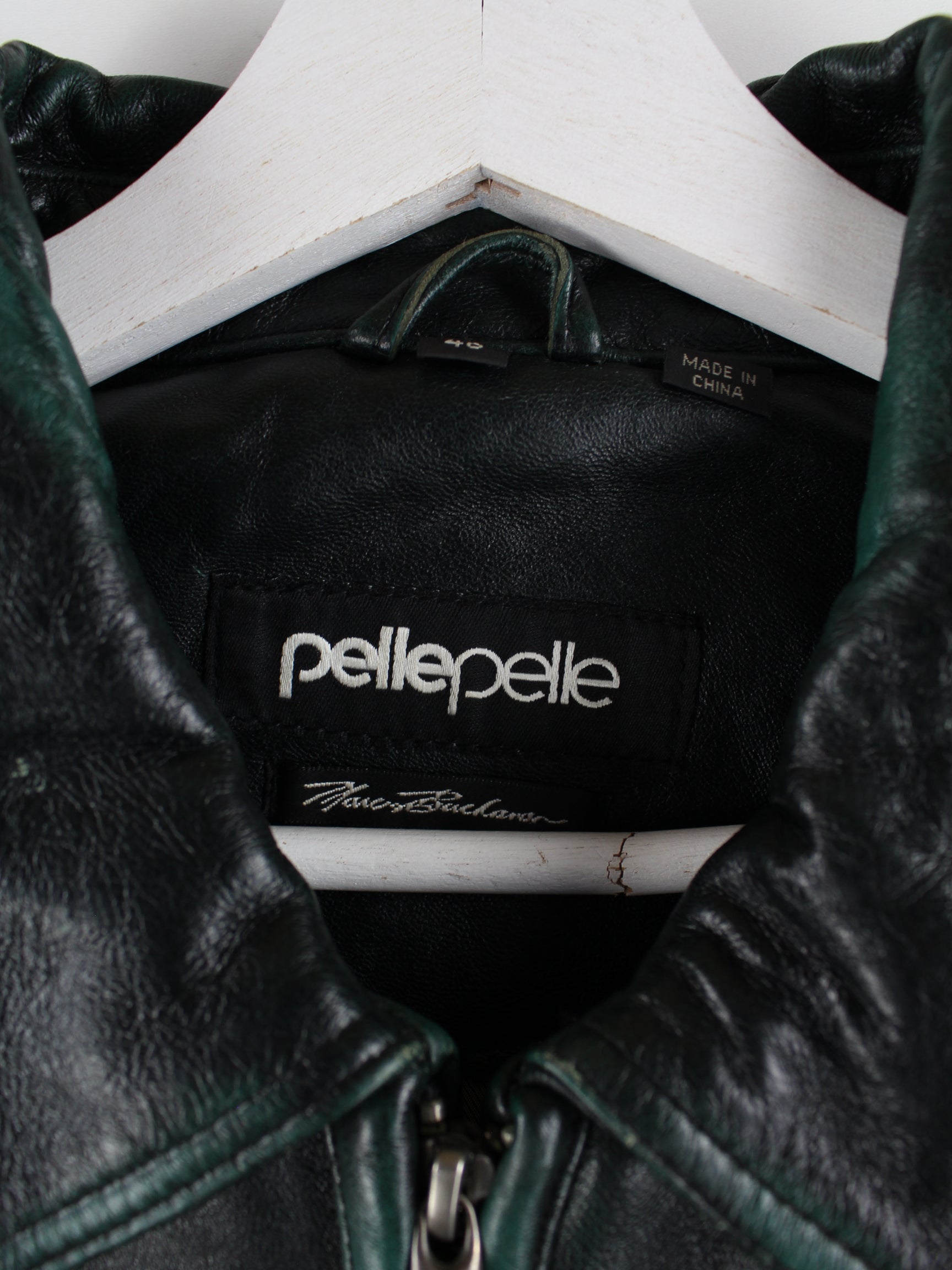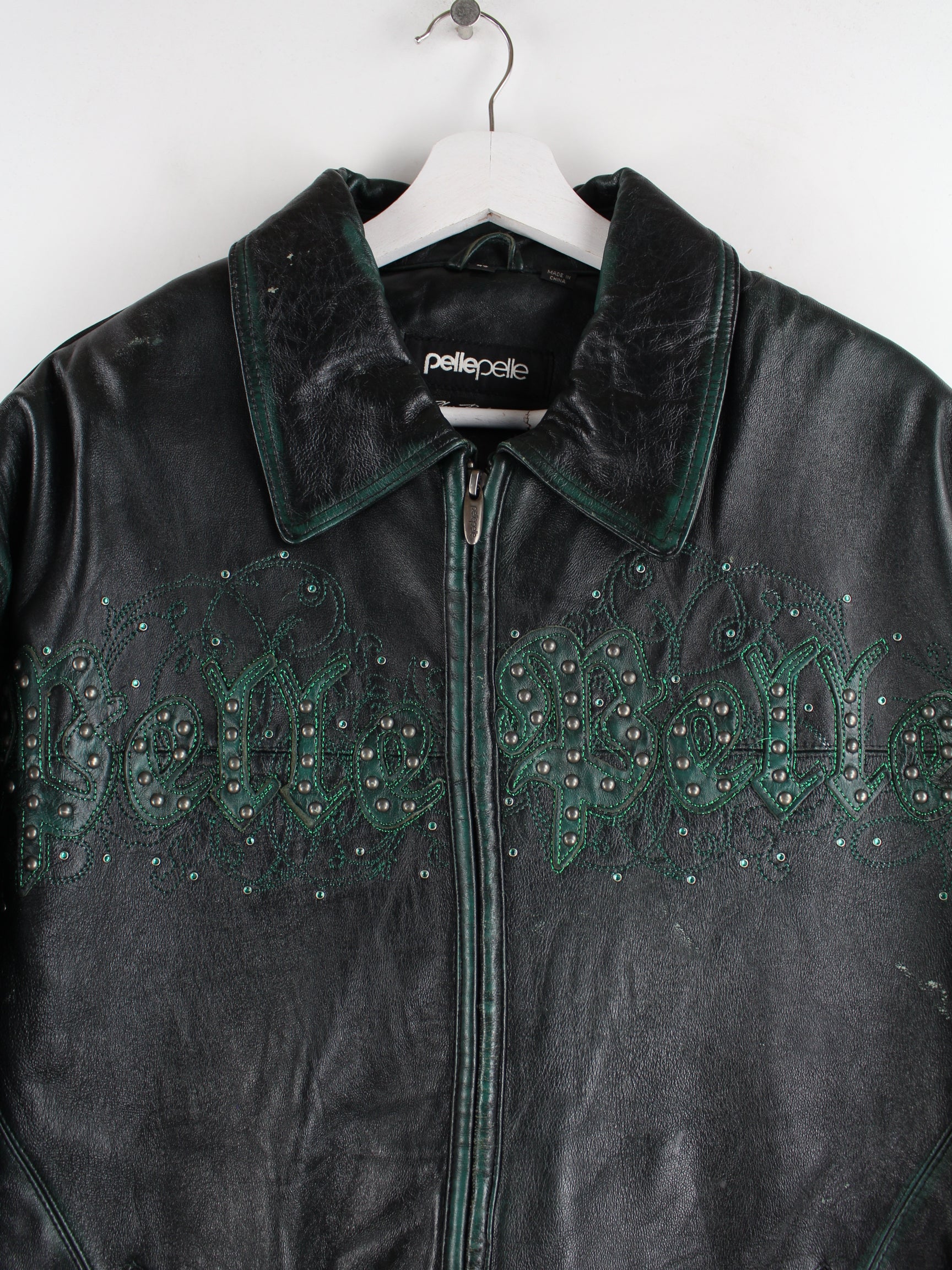 Grüne Jacke des Labels Pelle Pelle aus den 90'ern in Größe XXL. Sie ist aus Leder angefertigt. Den Zustand würden wir als 'In Ordnung' bezeichnen (vergl. Bilder).