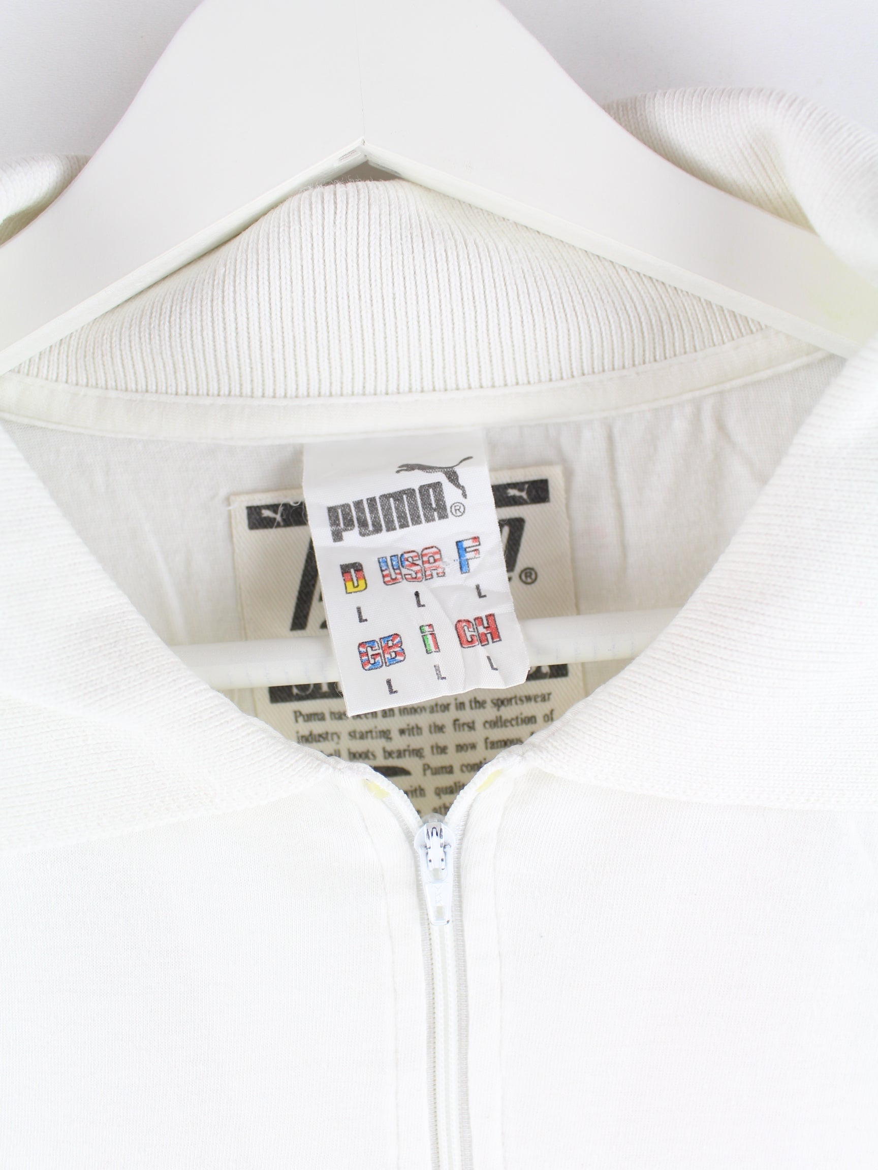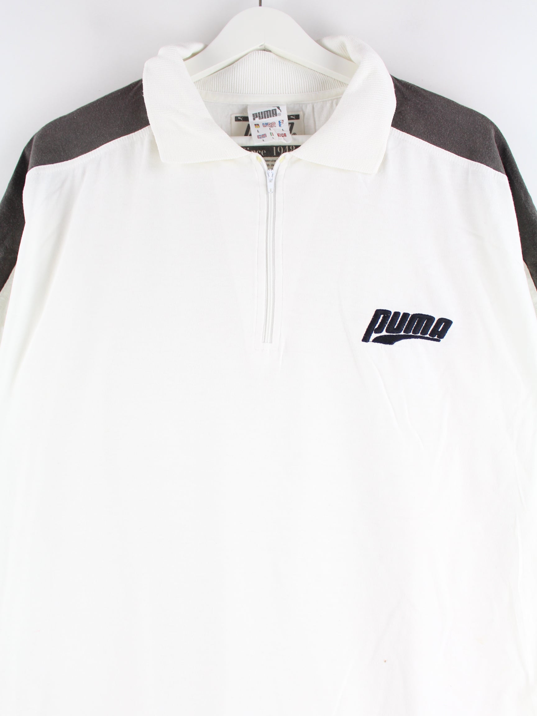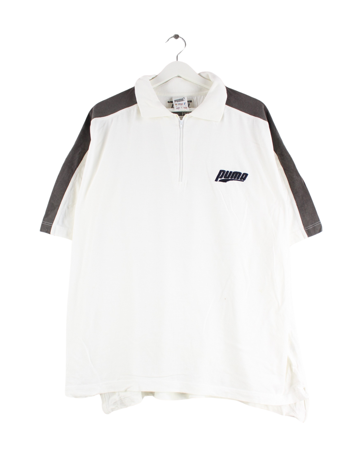 Poloshirt der Brand Puma mit gesticktem Logo in Größe L aus den 90'ern. Es ist aus Baumwolle und in Weiß zu haben.