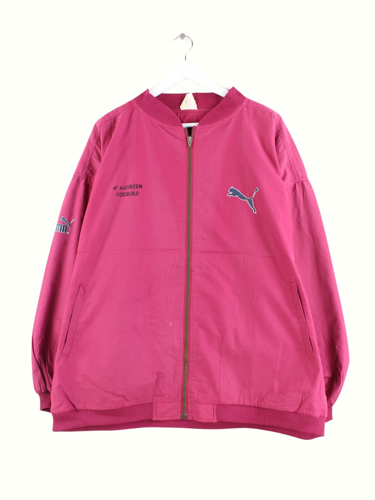 Trainingsjacke der Marke Puma mit gesticktem Logo in Größe XL aus den 90'ern. Sie ist aus Synthetik und in Rot lieferbar.