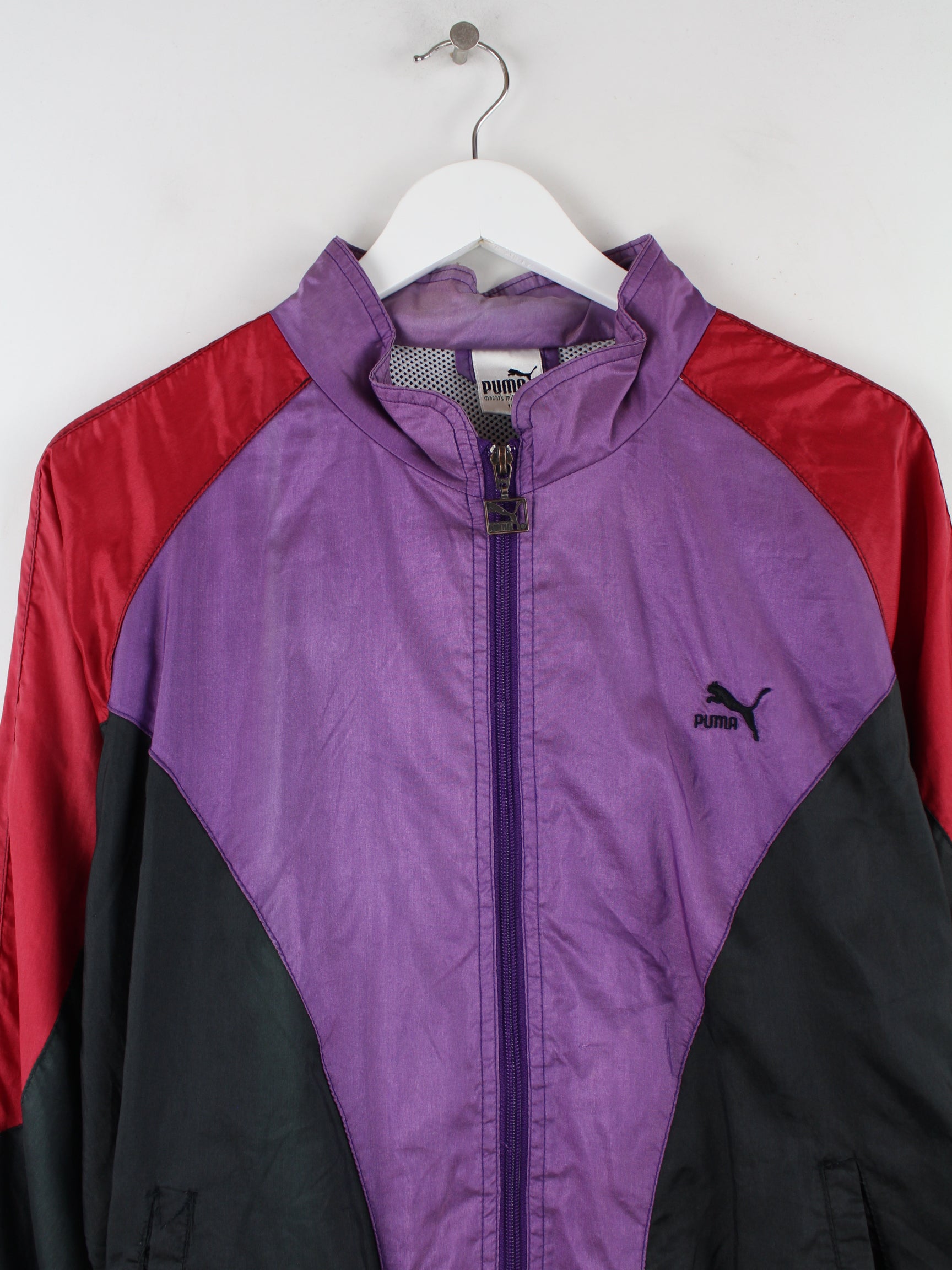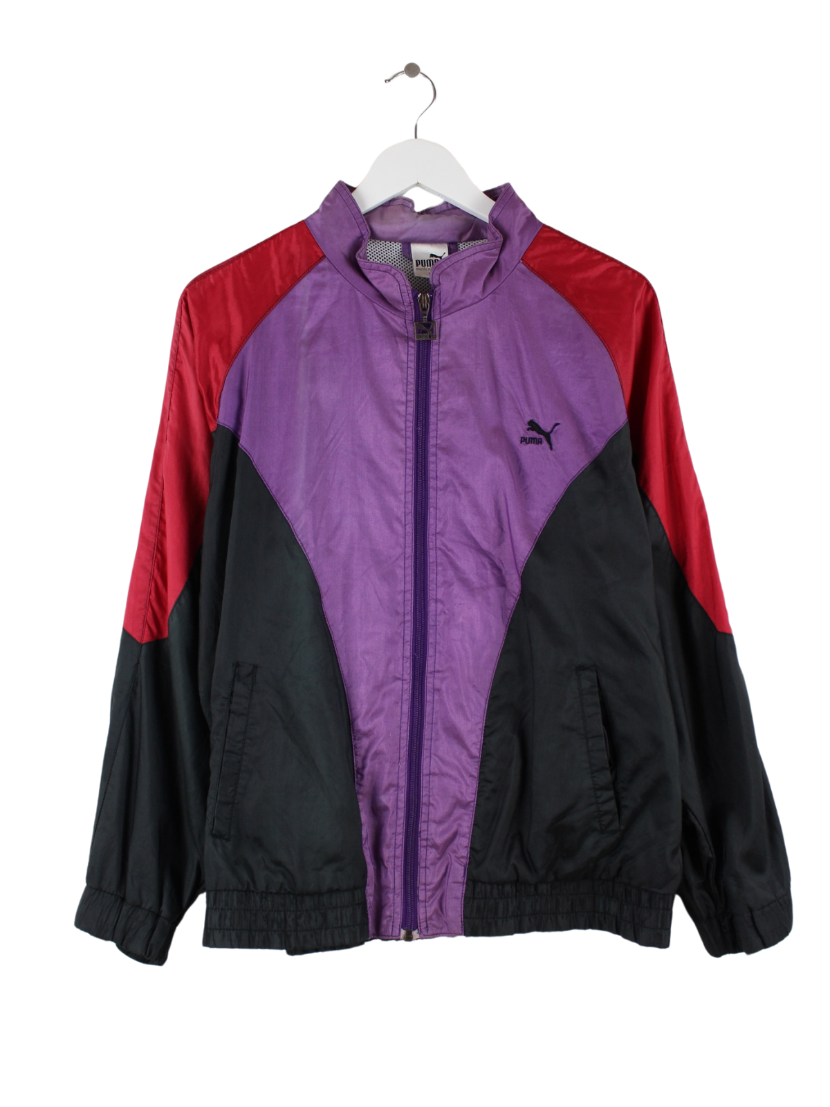 Trainingsjacke des Labels Puma in Größe S aus den 80'ern. Sie ist aus Synthetik gefertigt und in Lila auf Lager.