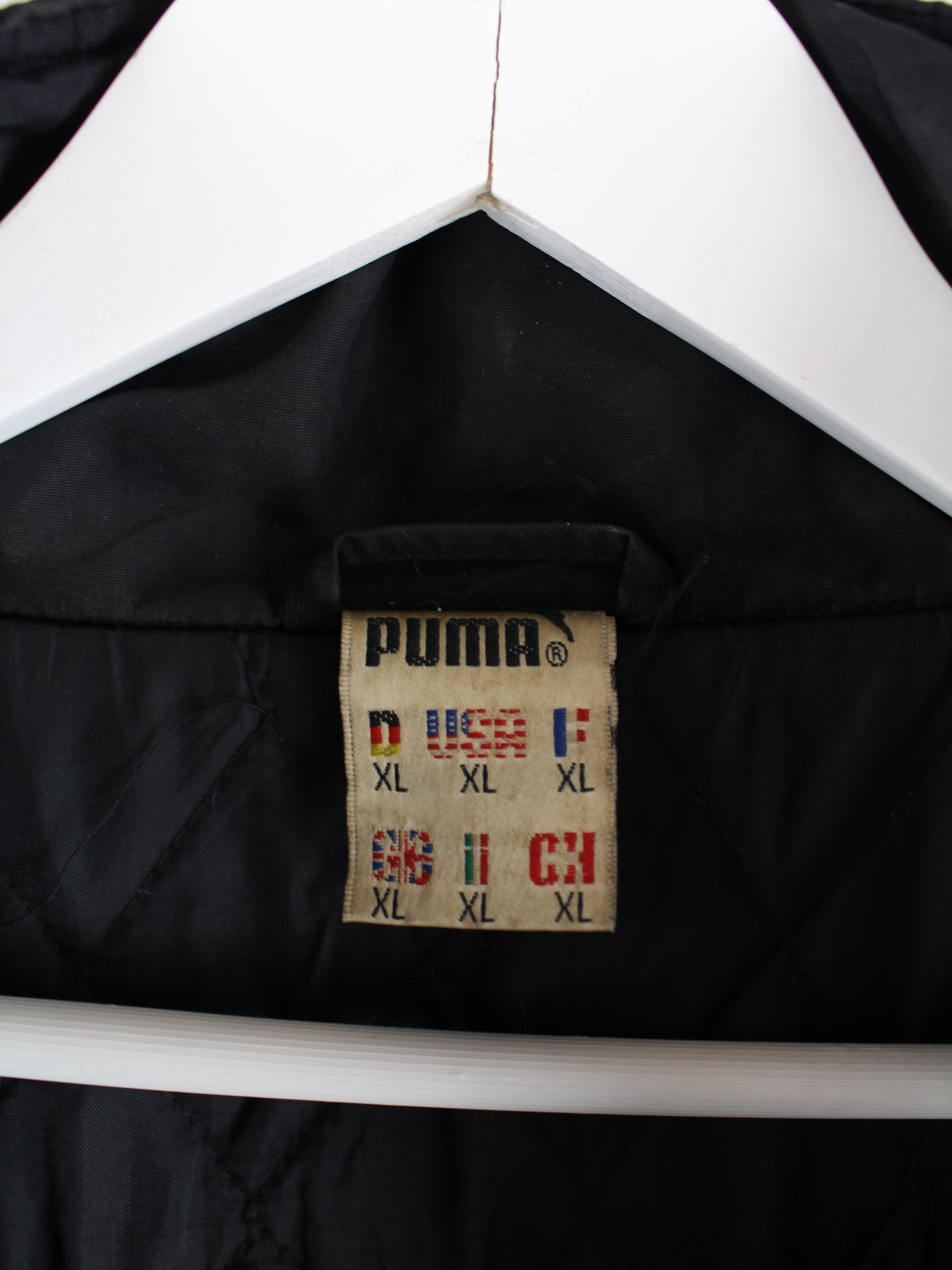 Jacke des Labels Puma mit Stickereien in Größe XL aus den 80'ern. Sie ist aus Synthetik gefertigt und in Schwarz im Angebot.
