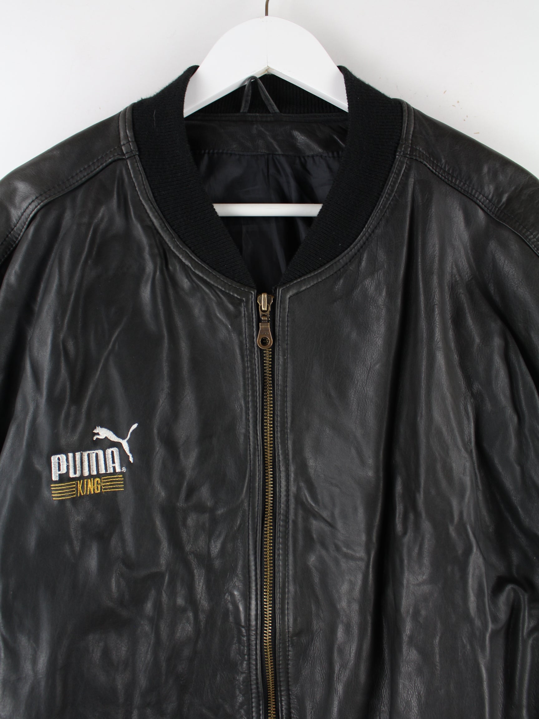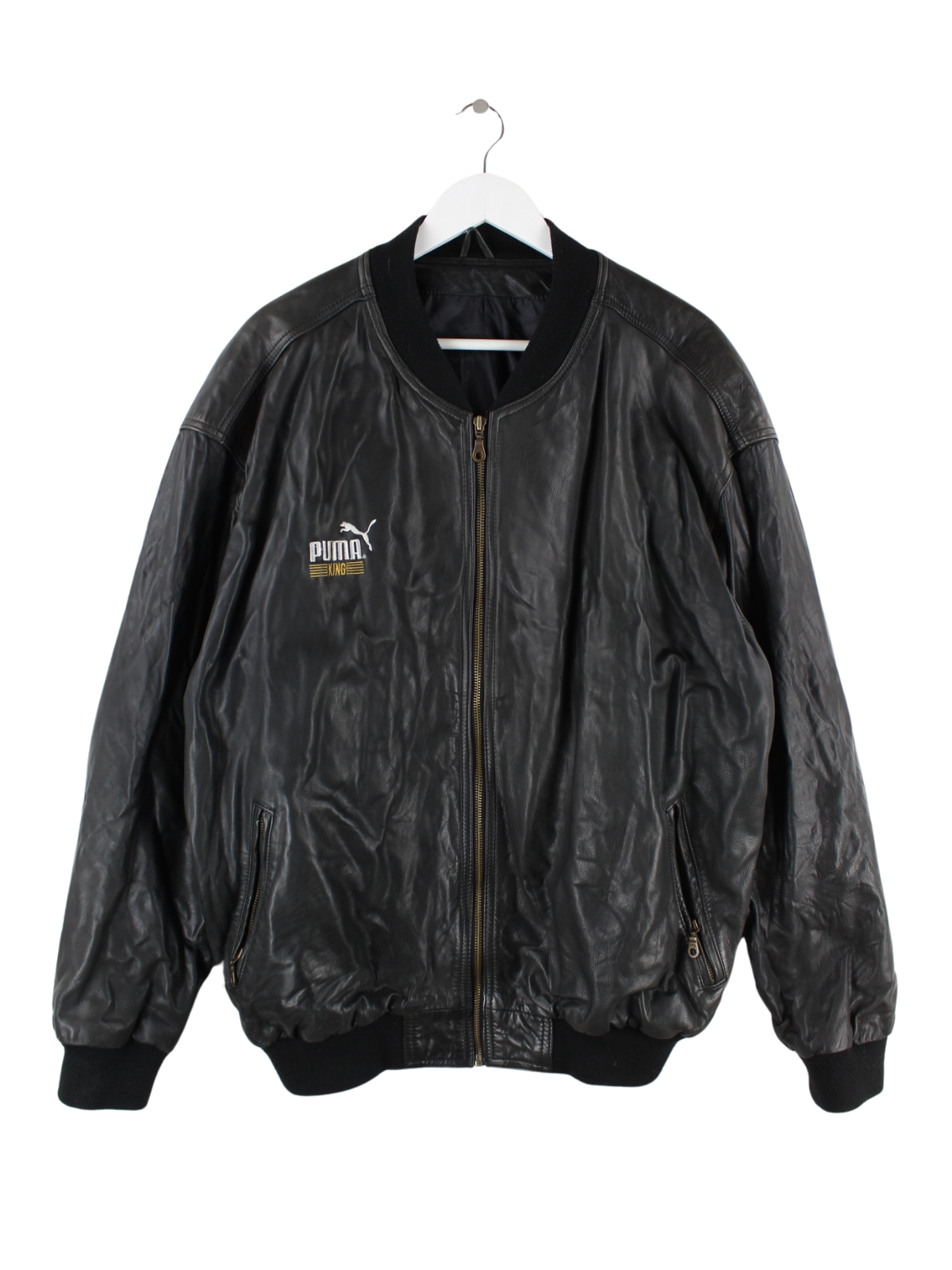 Jacke der Brand Puma in Größe XXL aus den 90'ern. Sie ist aus Leder angefertigt und in Schwarz in Stock.