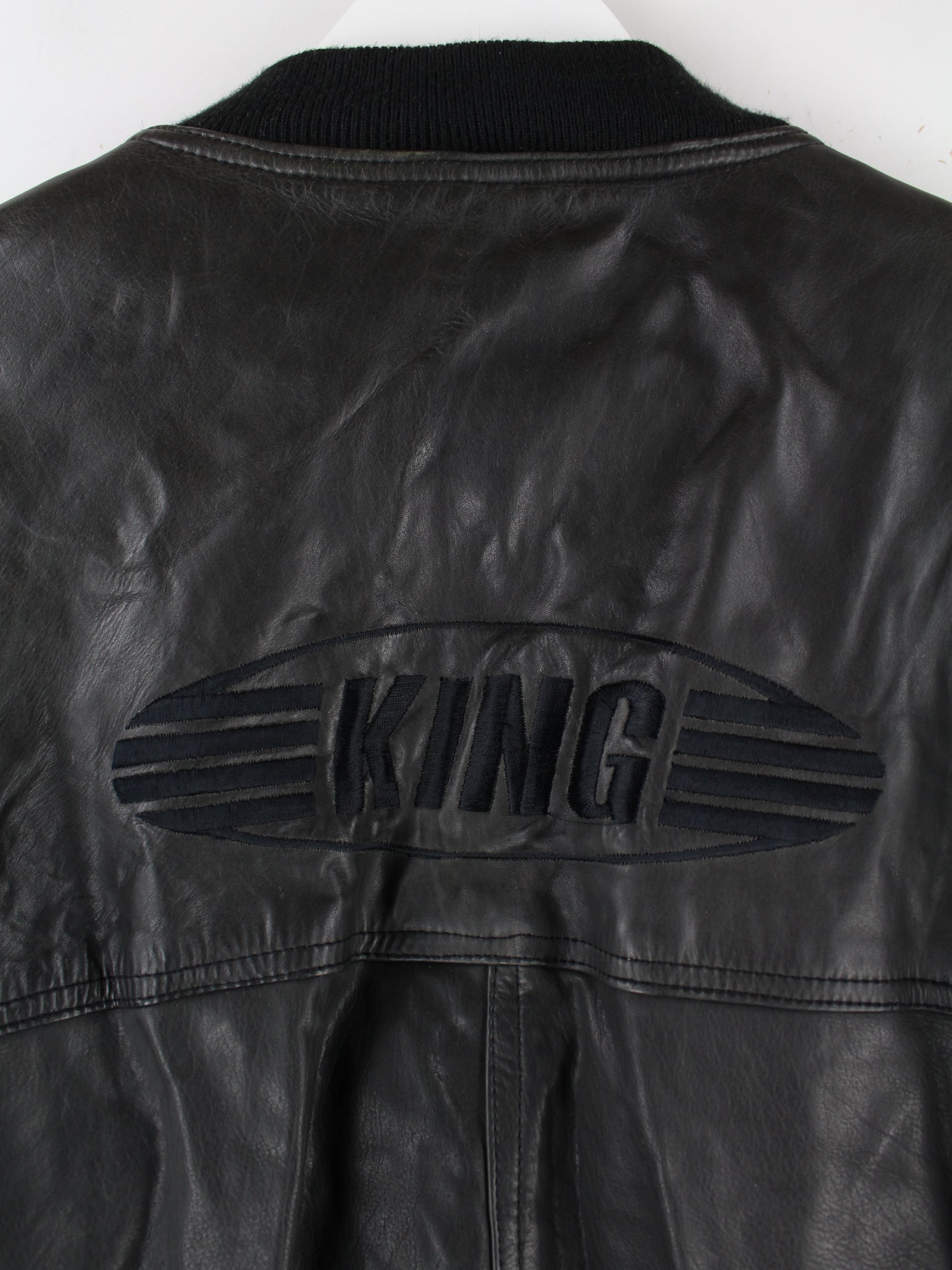 Puma King 90s Vintage Bomber Leder Jacke Schwarz XXL