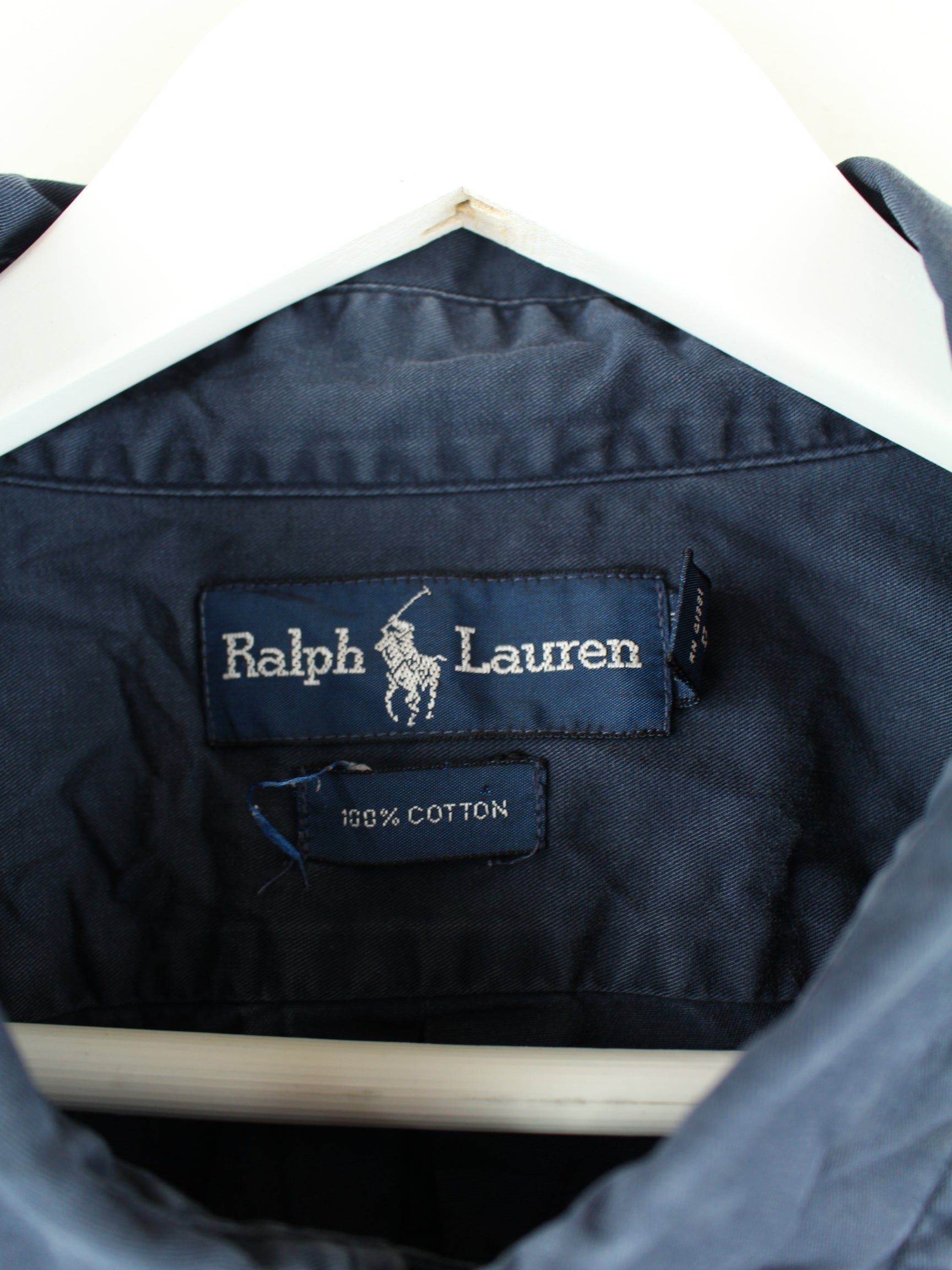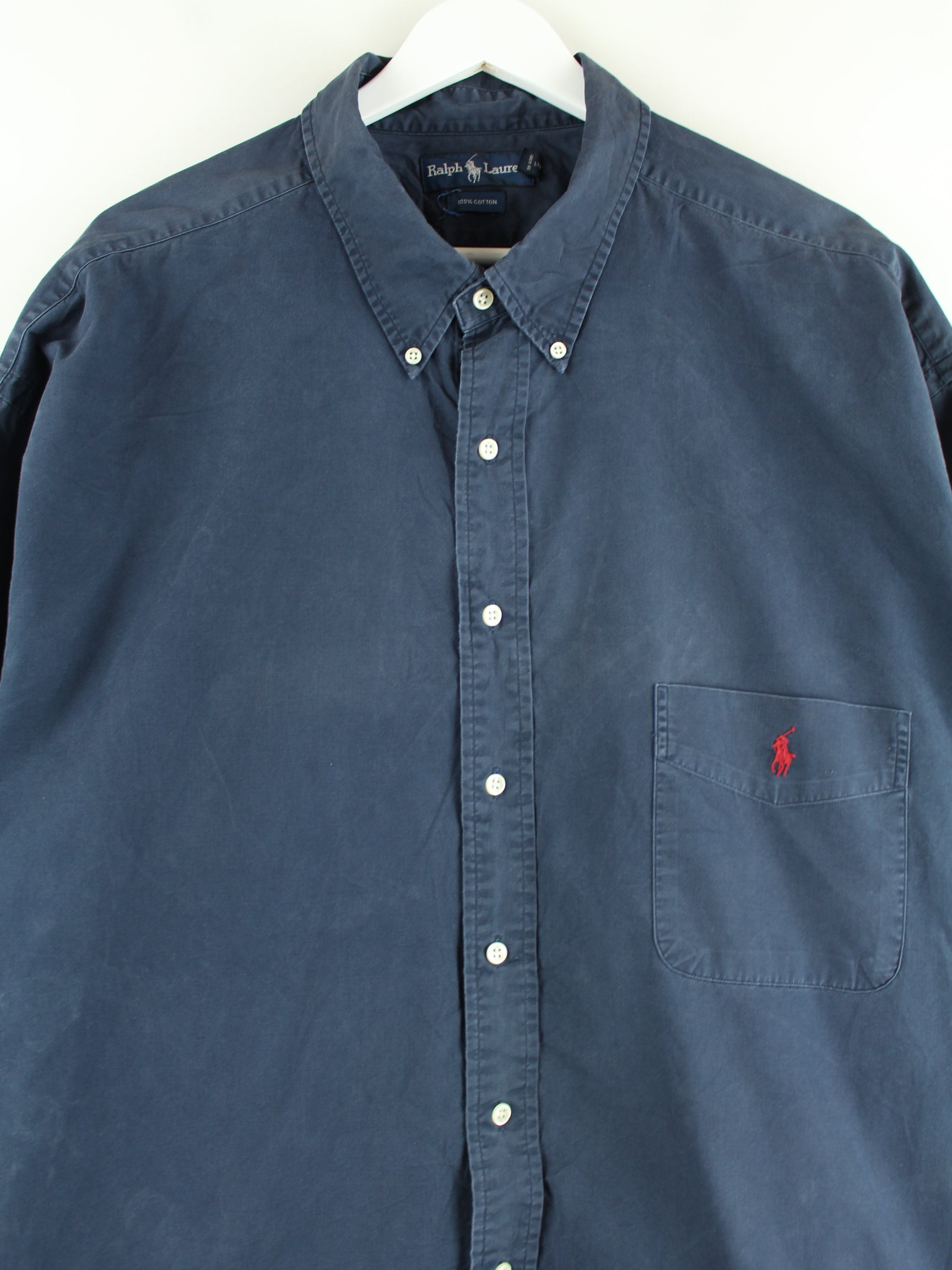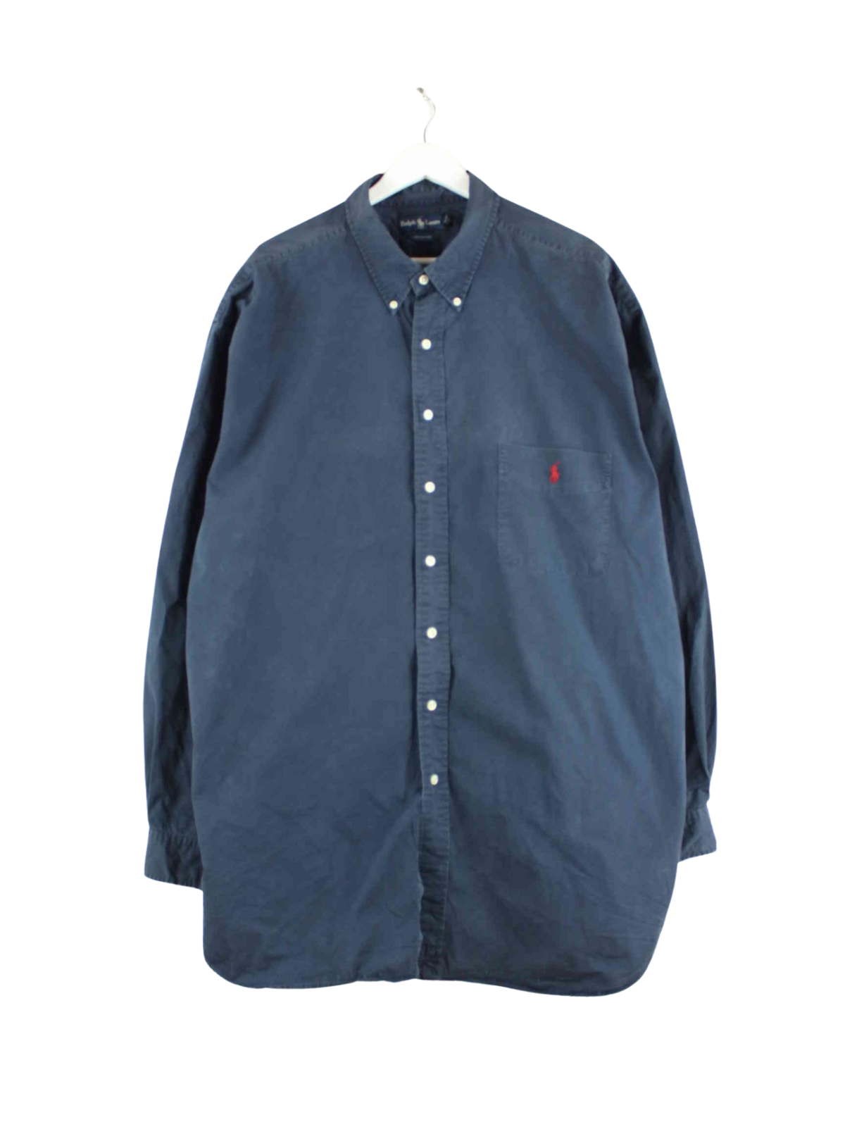 Blaues Hemd der Marke Ralph Lauren aus den 90'ern in Größe 3XL. Es ist aus Baumwolle hergestellt. Den Zustand würden wir als 'In Ordnung' bezeichnen (vergl. Bilder).