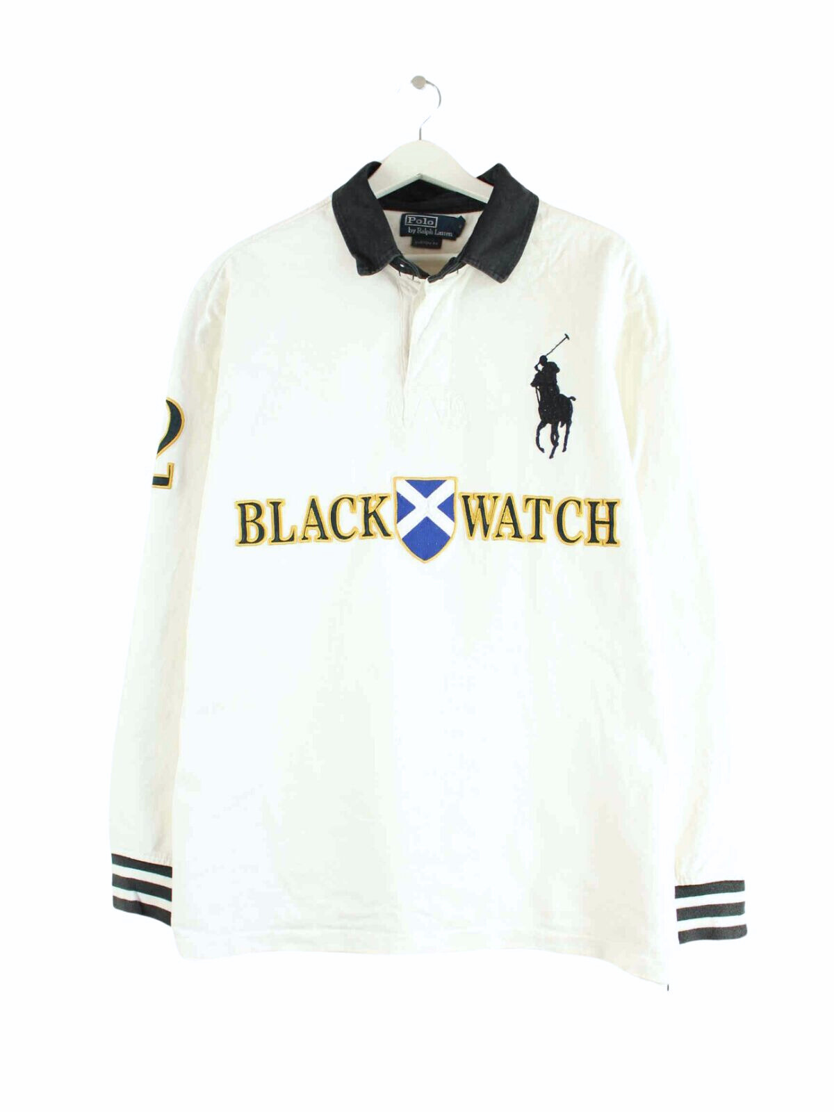 Ralph Lauren 90s Vintage Black Watch Embroidered Langarm Polo Weiß L